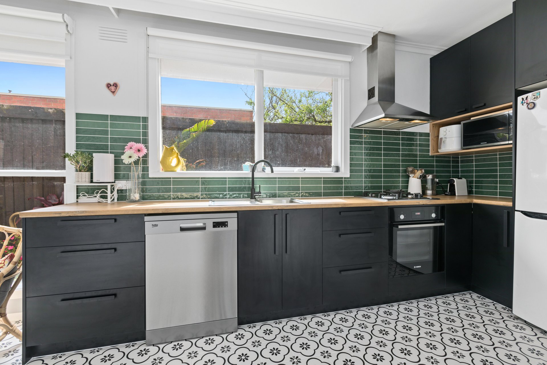 Filled with abundant light and enhanced by sophisticated fixtures and finishes, the easy-care abode includes a welcoming lounge, separate dining area and sunny meals/kitchen area where exquisite tiles, chic ebony cabinetry, stainless steel appliances and timber benchtops combine to create a sleek & stylish culinary setting.