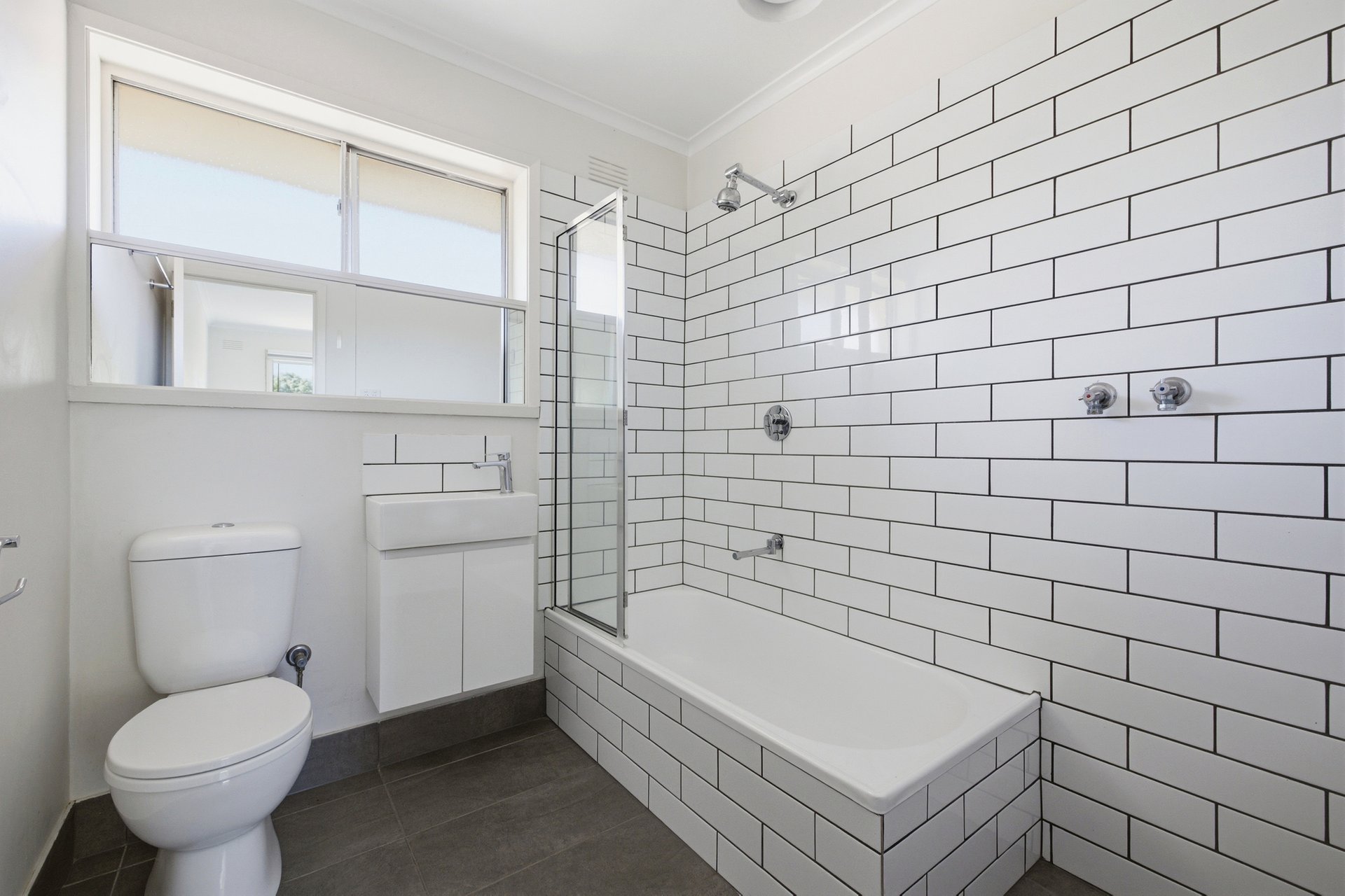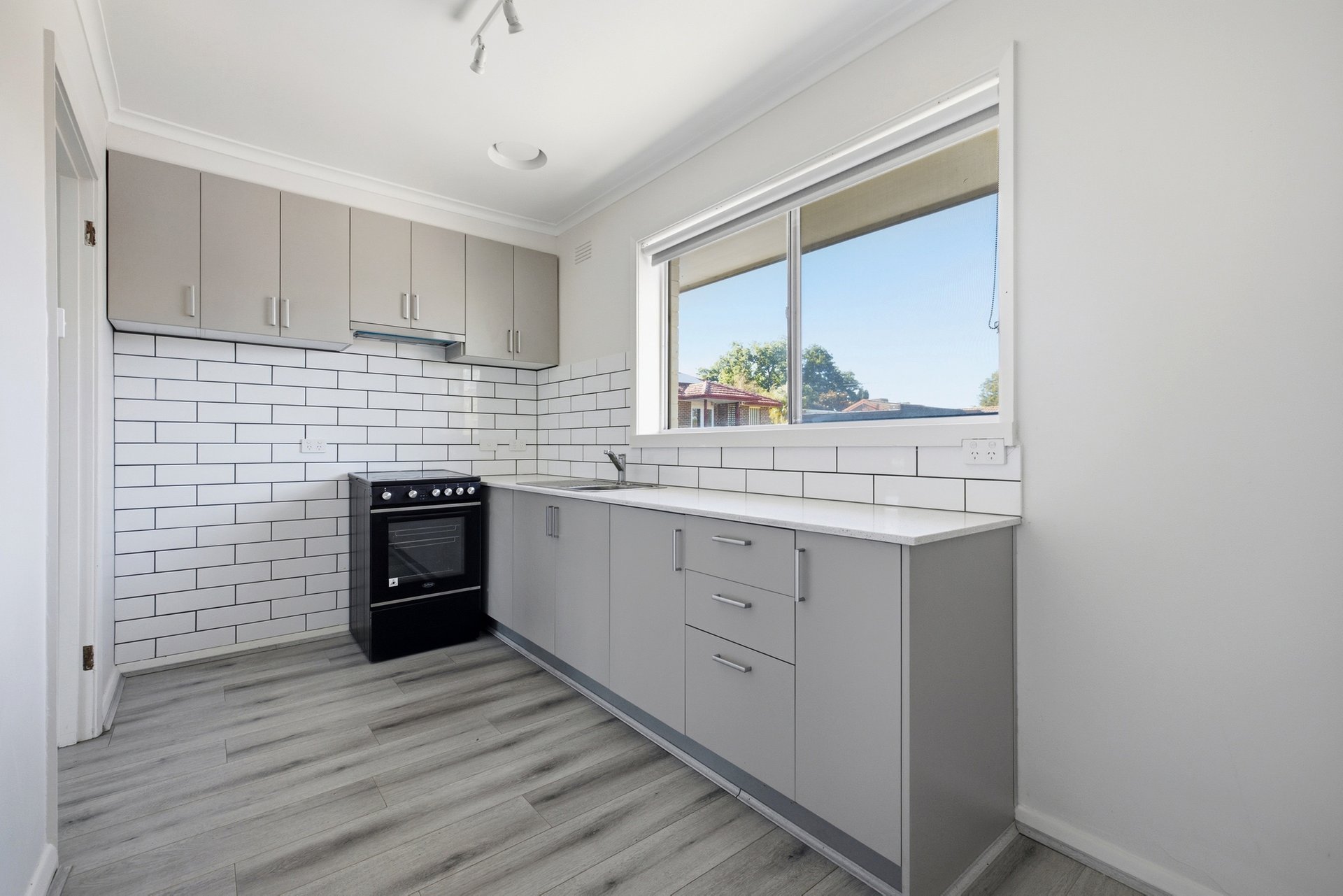 Chic subway tiles also star in the combined bathroom/laundry – along with a WC and shower over the bath – while also offered are split system heating/cooling and a carport parking space.