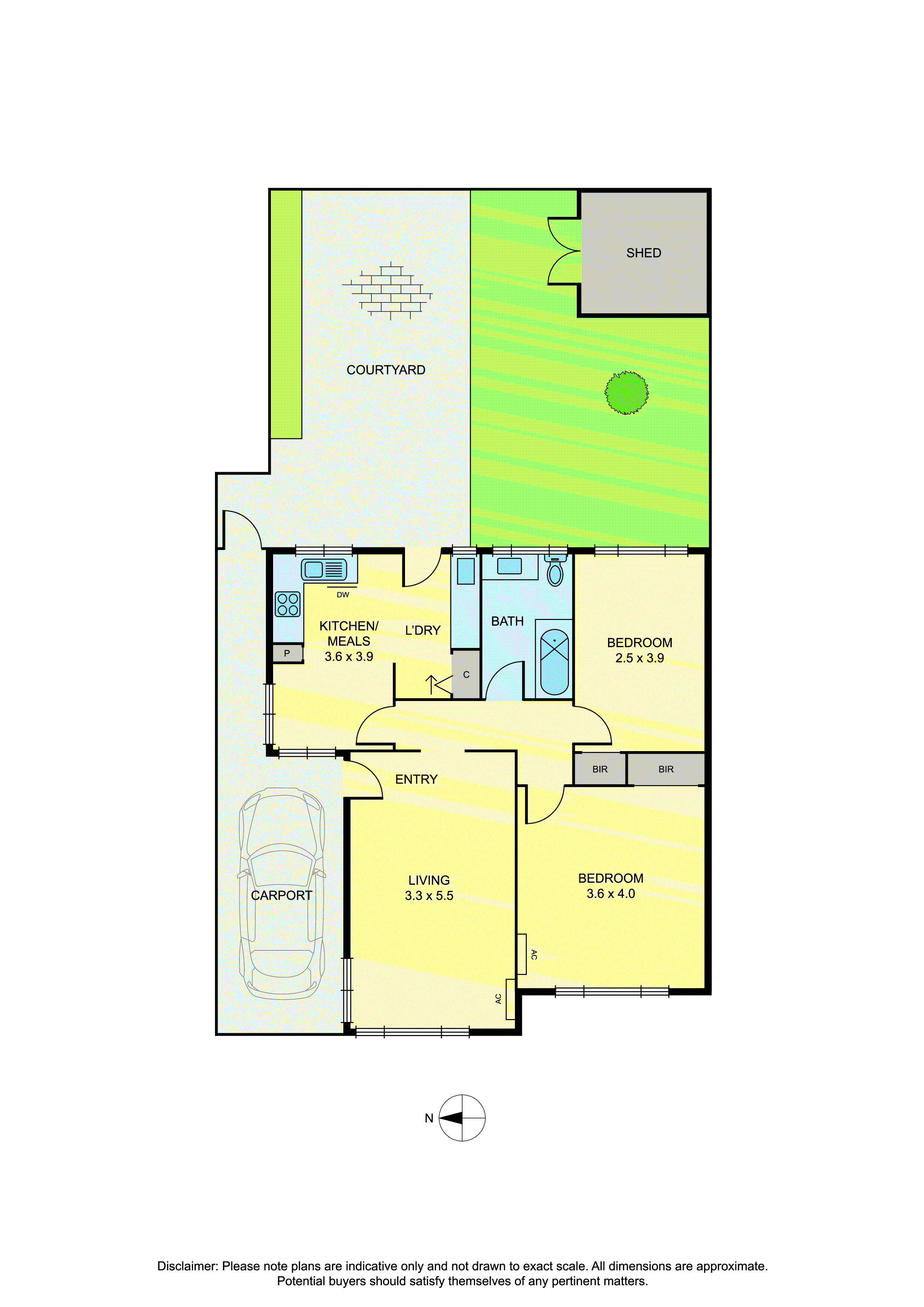 Both bedrooms are generously sized and include built-in robes, serviced by a central updated bathroom. Additional features include, two split-system heating/cooling units, modernized laundry, outdoor awning, storage shed and undercover carport.