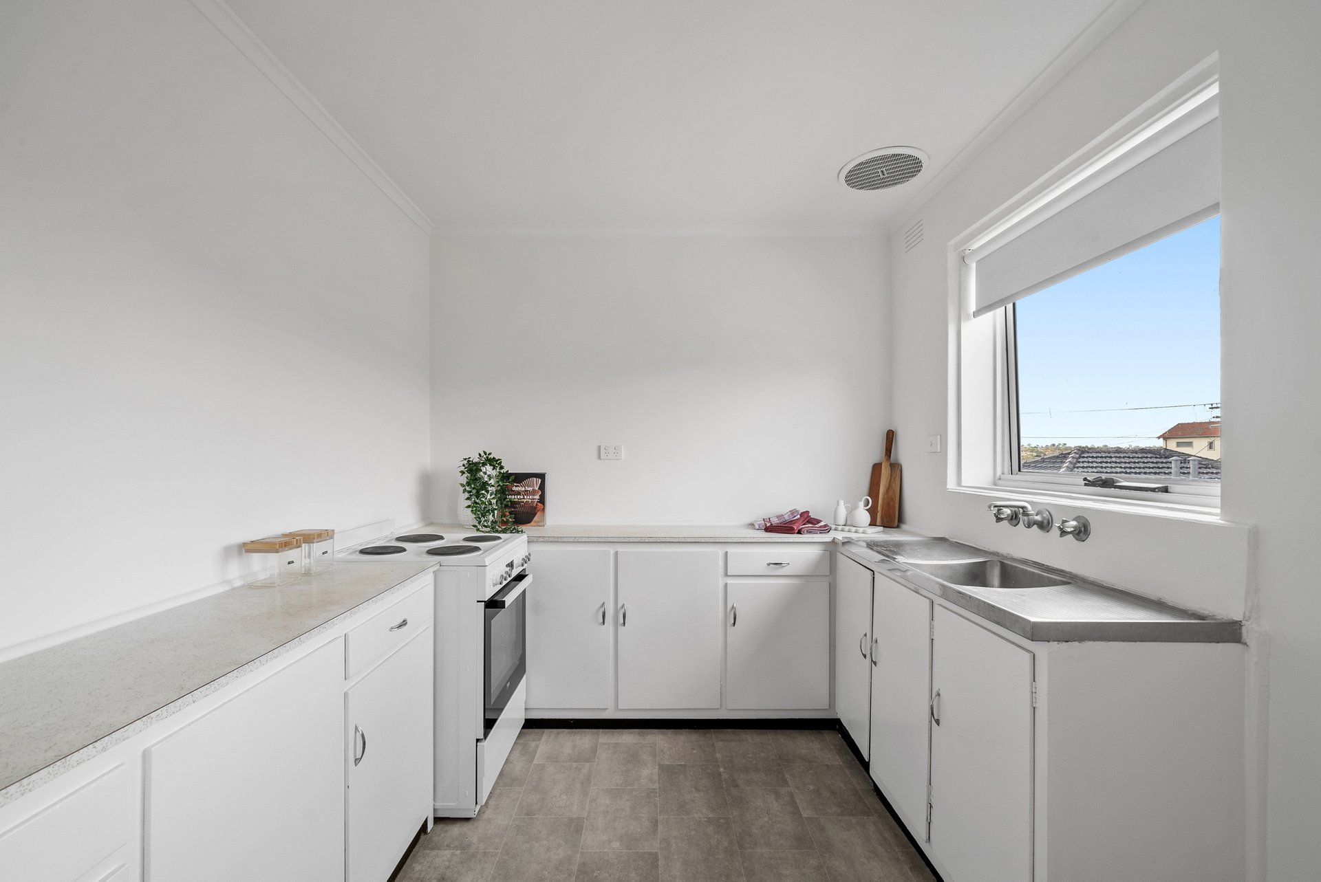 The generously sized bedroom includes ample cupboard space and a pleasant outlook, forming a calm and private retreat. The bathroom has been cosmetically updated and features a bath and shower combination, delivering everyday comfort in a tidy, well-presented space.
