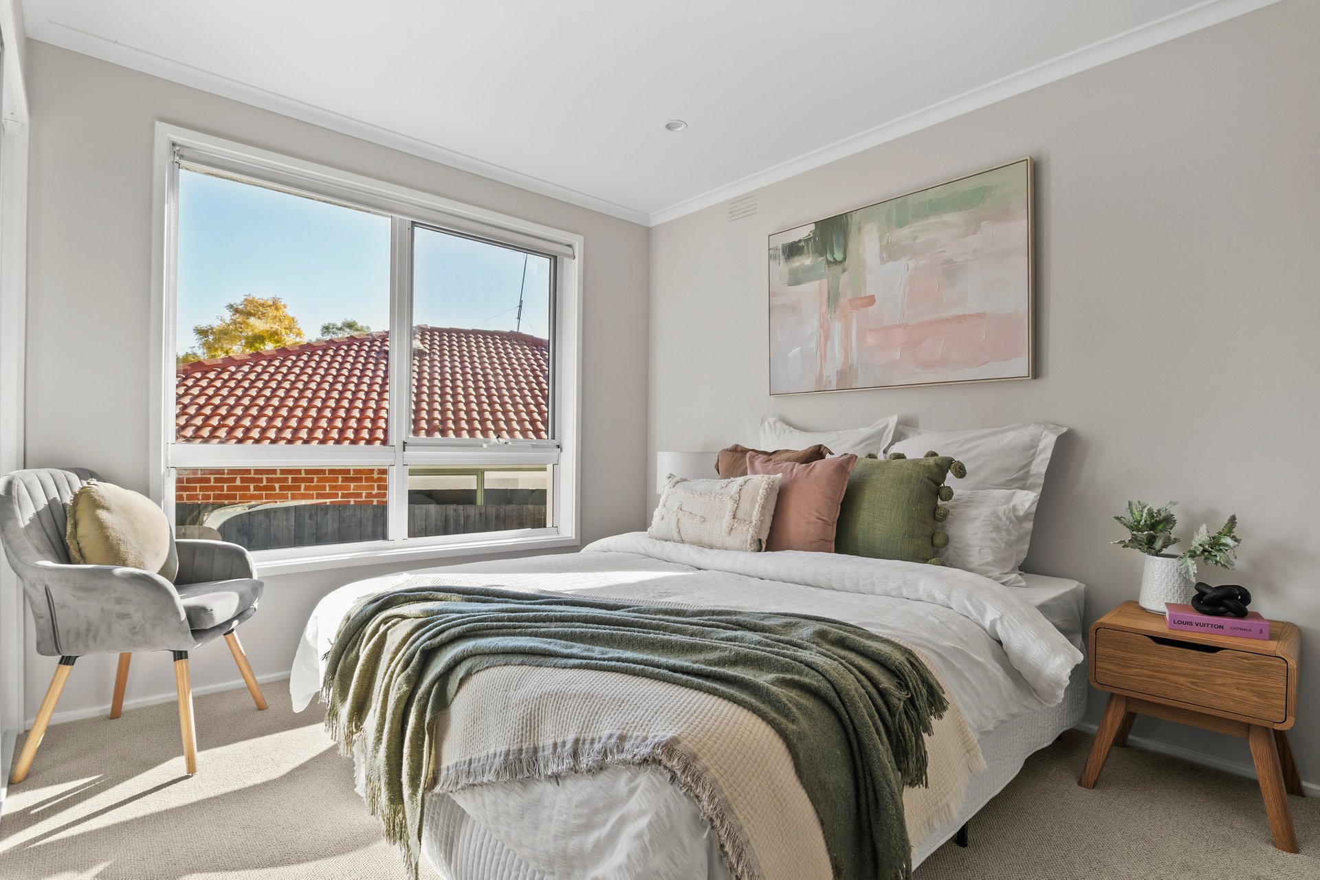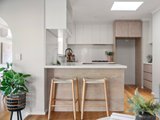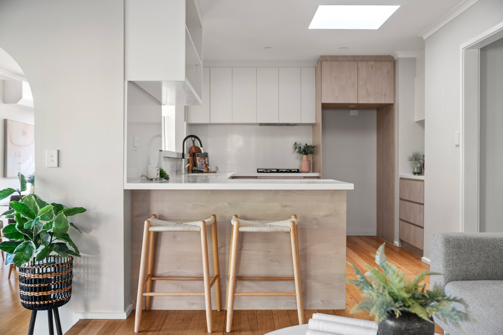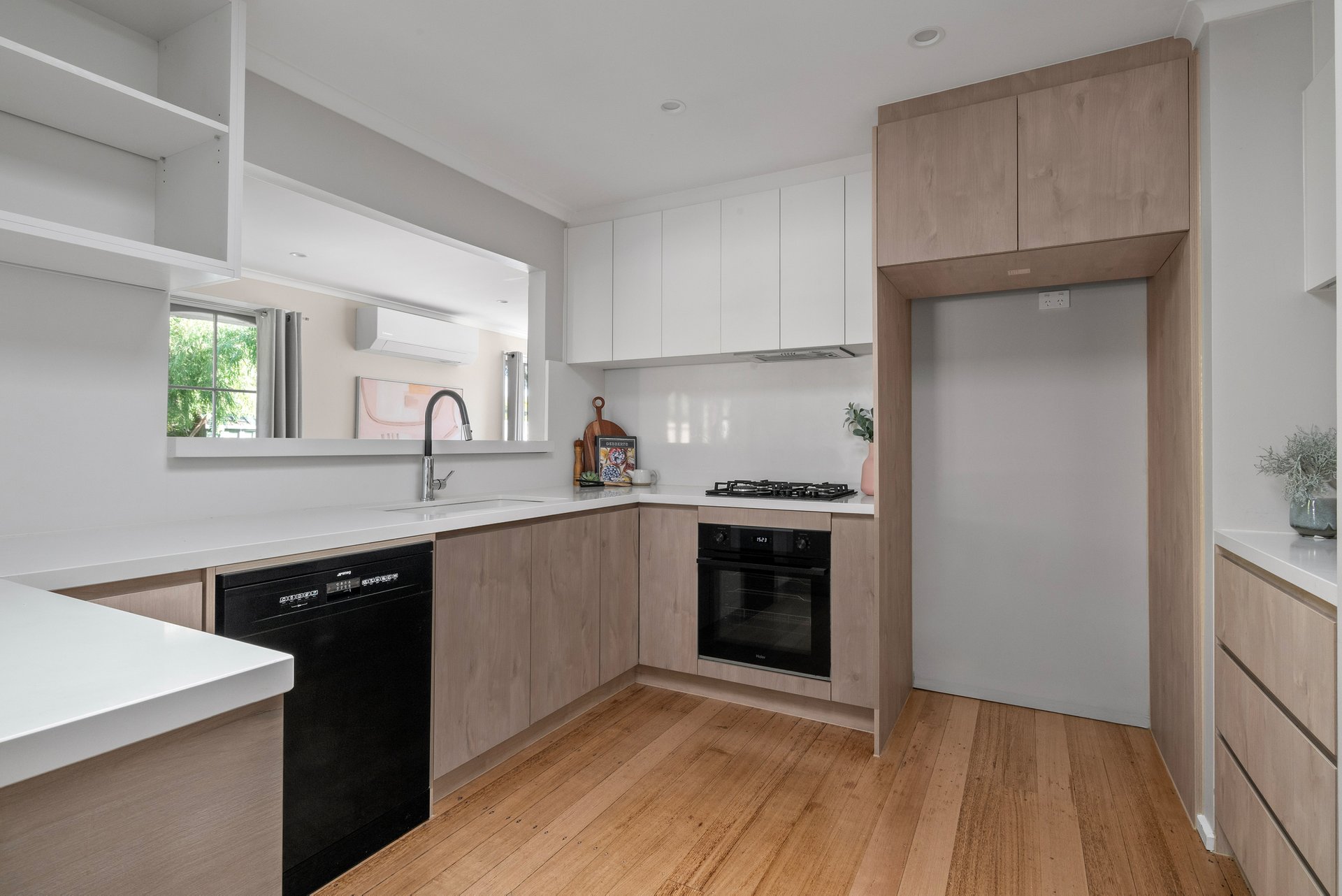 Beyond new fencing and an automatic gated driveway, established trees and fresh plantings frame the home, its rendered facade balanced by classic colonial windows. Inside, a series of modern updates have enhanced its practically-designed floorplan, introduced by a sitting area and a chic skylight-illuminated kitchen, flaunting sleek appliances, soft-closing cabinetry plus stone splashbacks and benches. A servery window overlooks a light-filled living and dining room, flanked by a private master suite that features generous built-in storage and a fully tiled ensuite with a twin-head shower, mirrored wall cabinet and a toilet with a concealed cistern. Two more bedrooms, each with built-in wardrobes, share a bathroom that matches the style of the ensuite, as well as a separate toilet, also with a concealed cistern.