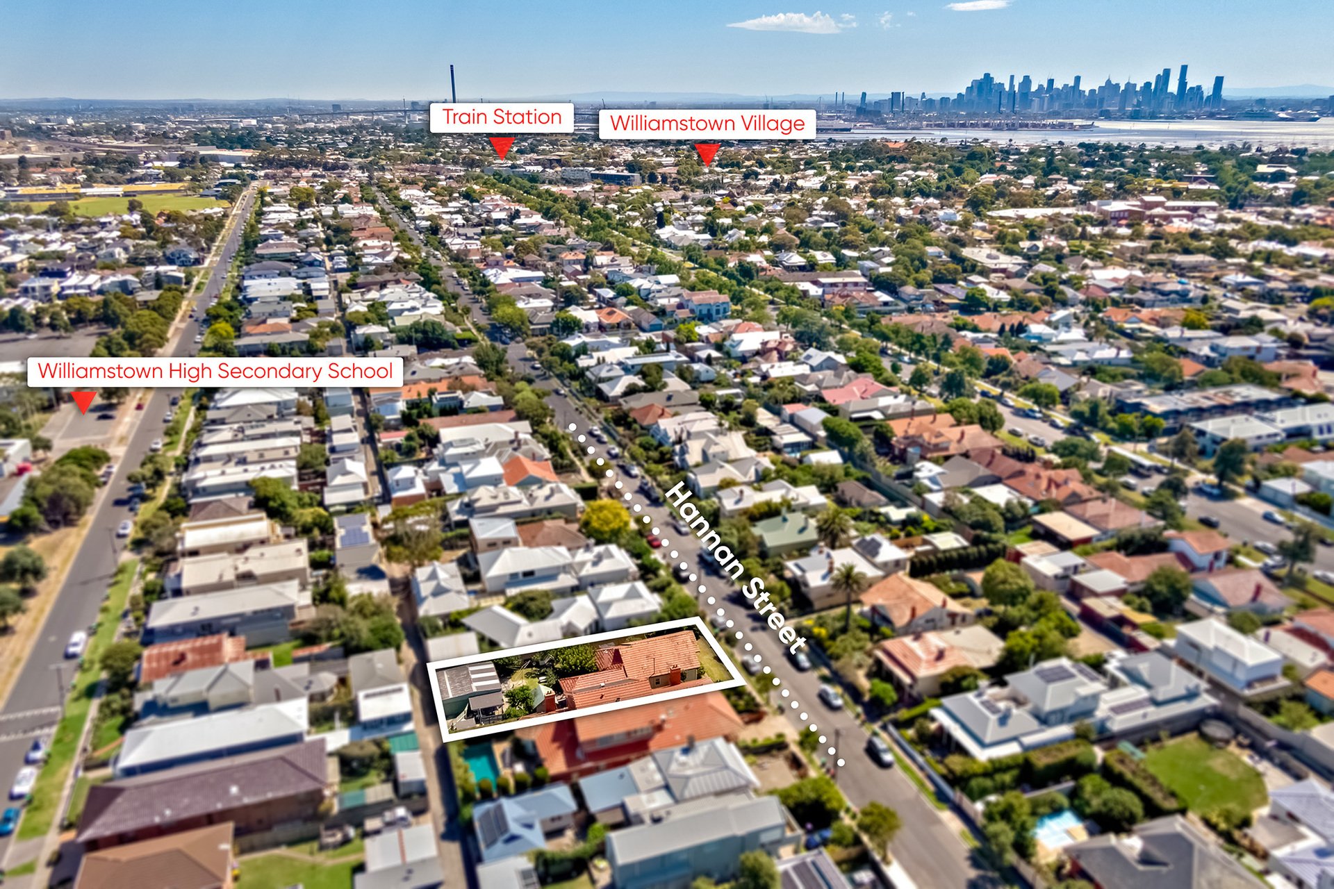 A once in a lifetime opportunity, it's been some 65 years since this family home was last on the market and over the intervening years its tightly held location at the Paris end of Hannan Street, two minutes' walk from the beach, has become ever more desirable. Now, this property adds huge potential to a great 650m2 approx. allotment in the sought after Williamstown High School zone. The fact the bay can be seen from the front footpath enhances the opportunity to make the utmost of an elevated setting by renovating and adding a second level when ready, STCA, on a site framed by a wide 15.24m frontage and ROW access to a sealed laneway at the rear. Spaces that remain completely functional while ideas for the future take shape include generous living and dining areas, an older style kitchen featuring stainless steel appliances and a central bathroom with a retro 70s feel. The back garden's depth and garage add to the huge sense of scope conveyed by this classic property and its superlative south Williamstown location.