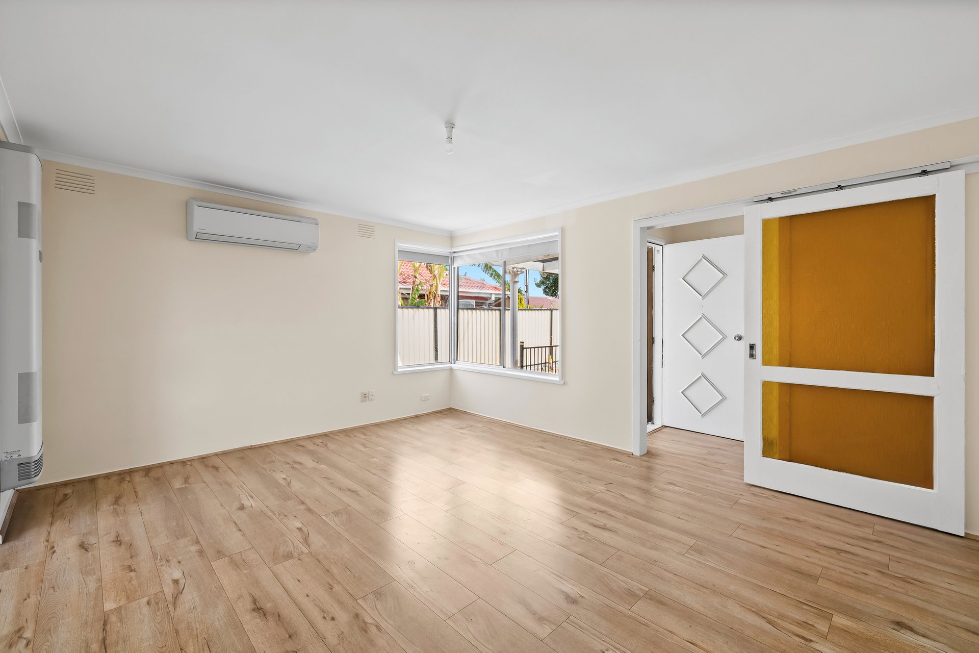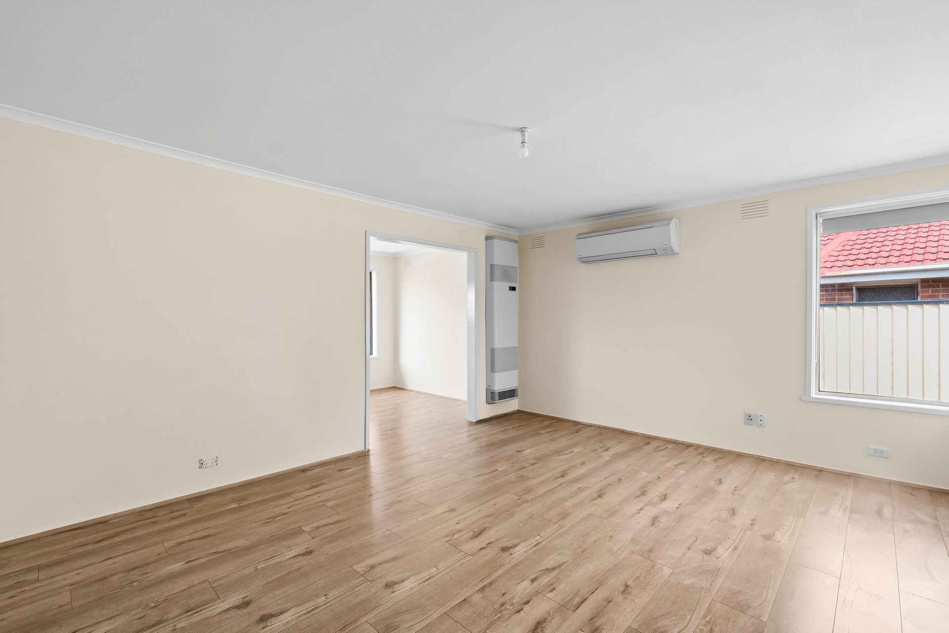 The living area sits at the heart of the home and is well equipped for year round comfort, featuring a Daikin split system and gas wall heater. Engineered timber flooring flows throughout the home, creating a warm and practical environment for everyday living.