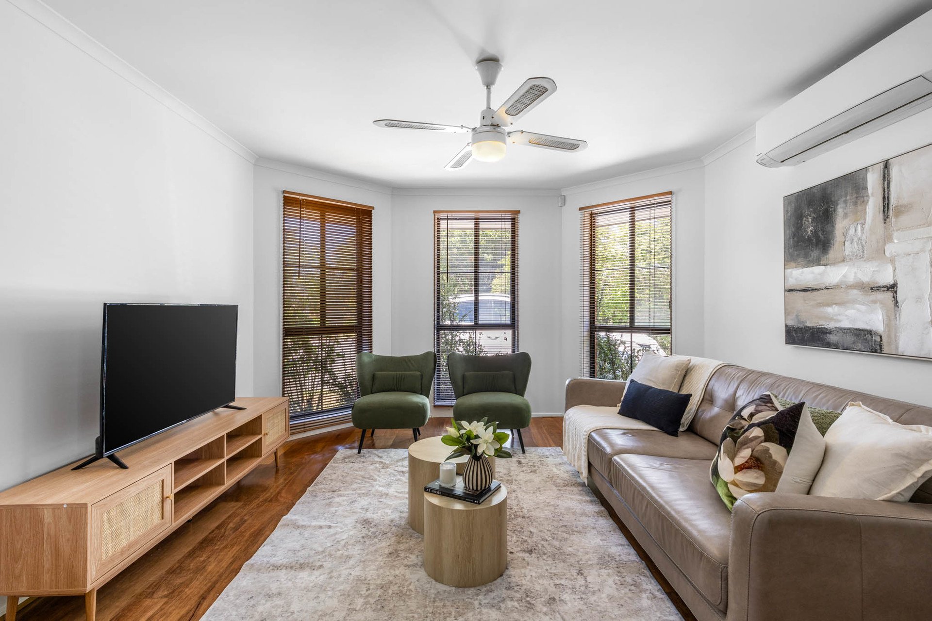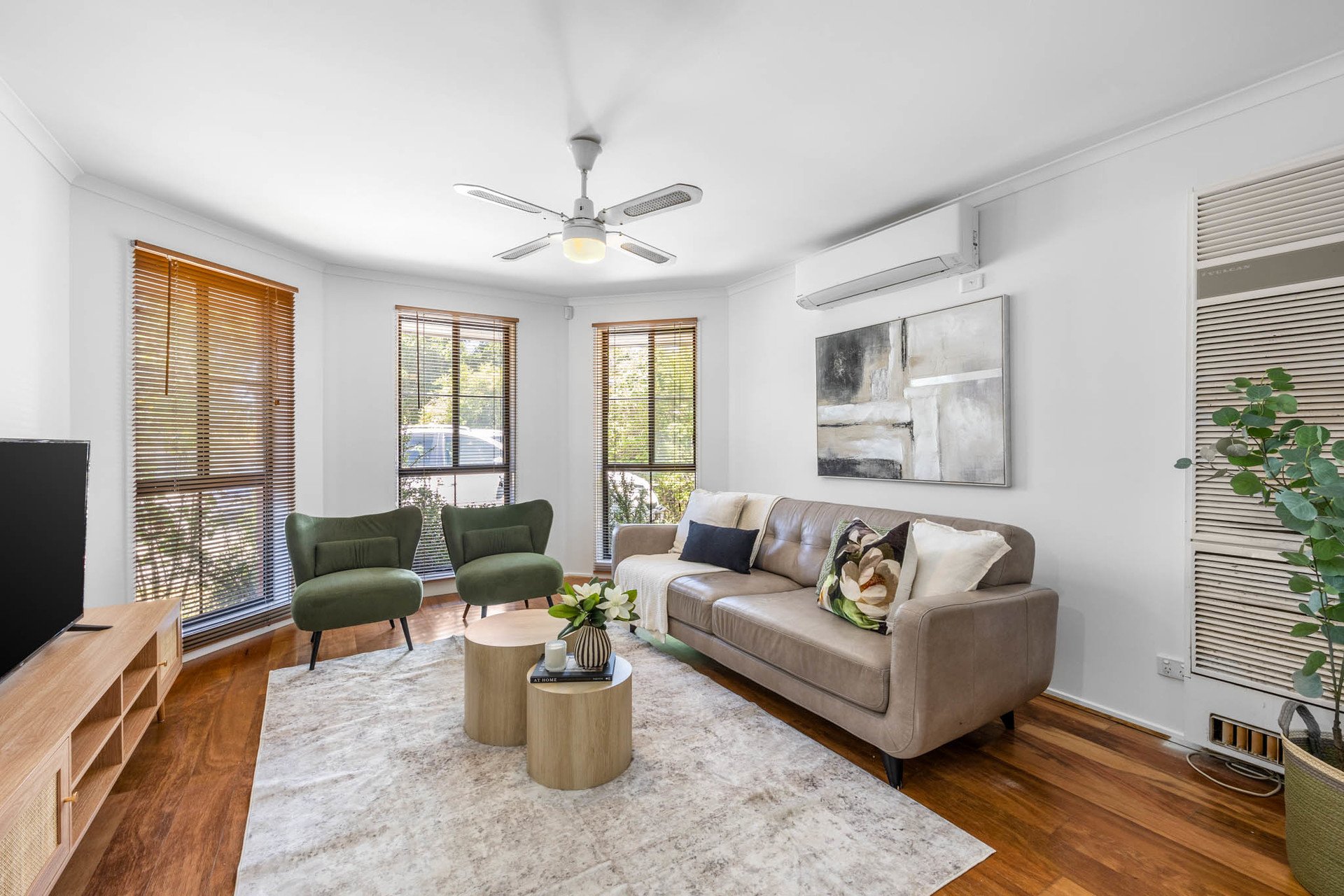 A spacious living room is graced by bay windows that draw in sunshine, flowing to a dedicated dining zone. The kitchen is thoughtfully scaled with excellent bench space, an upright oven, and a dishwasher. Extending versatility, a screened porch provides a breezy transition space to the lawned rear yard.