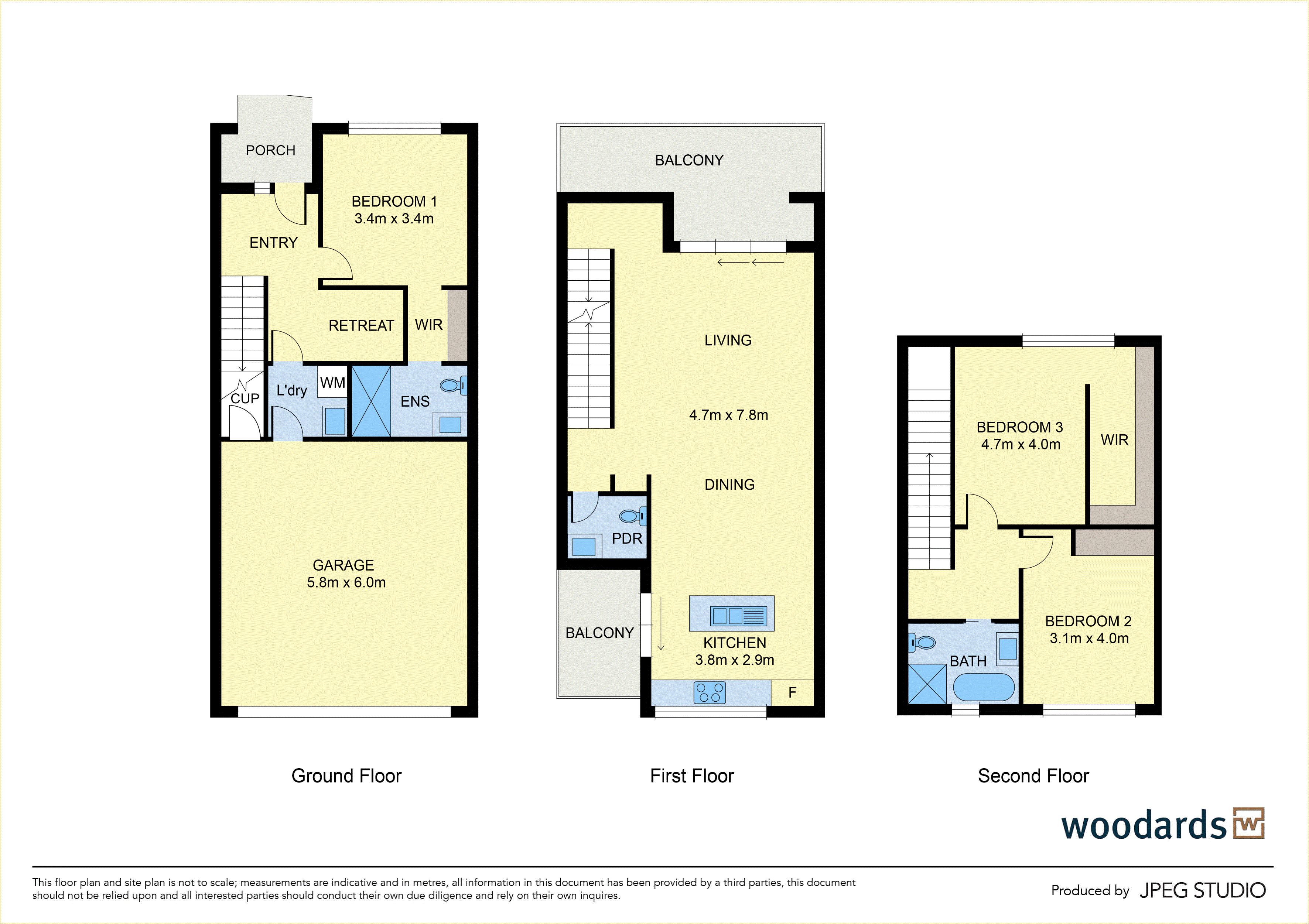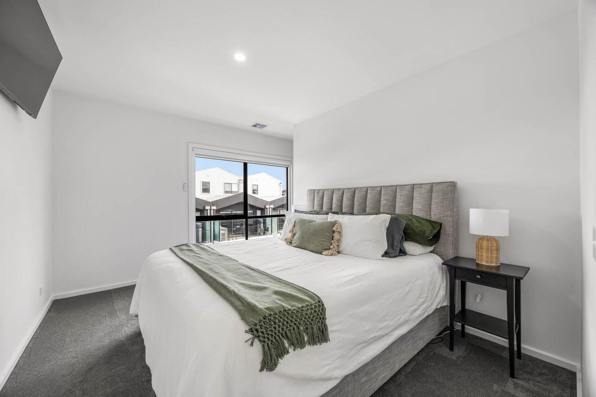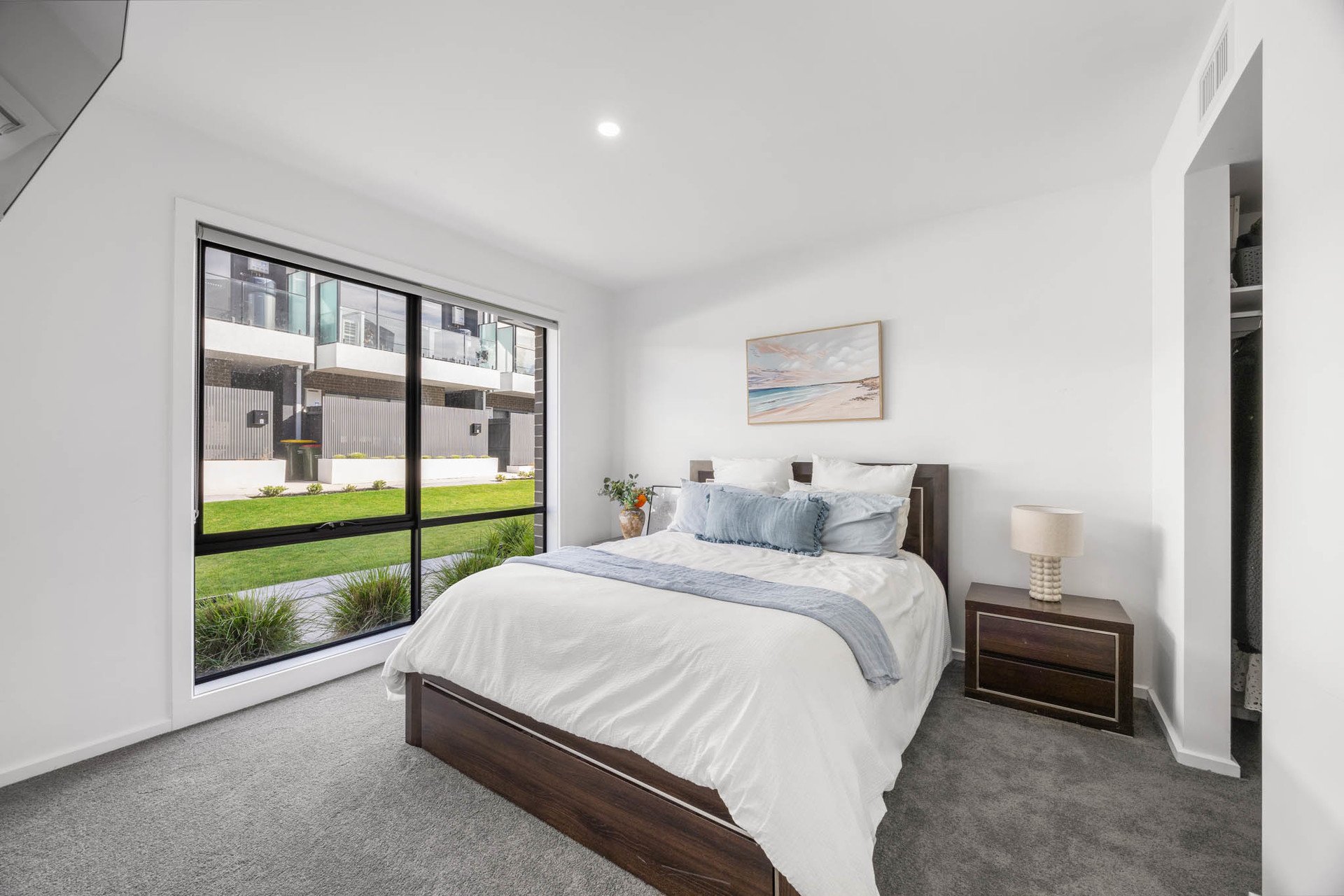 The top floor hosts two additional bedrooms: one with a built-in robe, and another with a huge walk-in robe. They are serviced by a beautifully appointed bathroom featuring marble-inspired tiling, freestanding bath, separate shower with waterfall head, vanity, and toilet. Comfort is assured with electric black out blinds, heating and cooling, NBN connectivity, and a full alarm system.