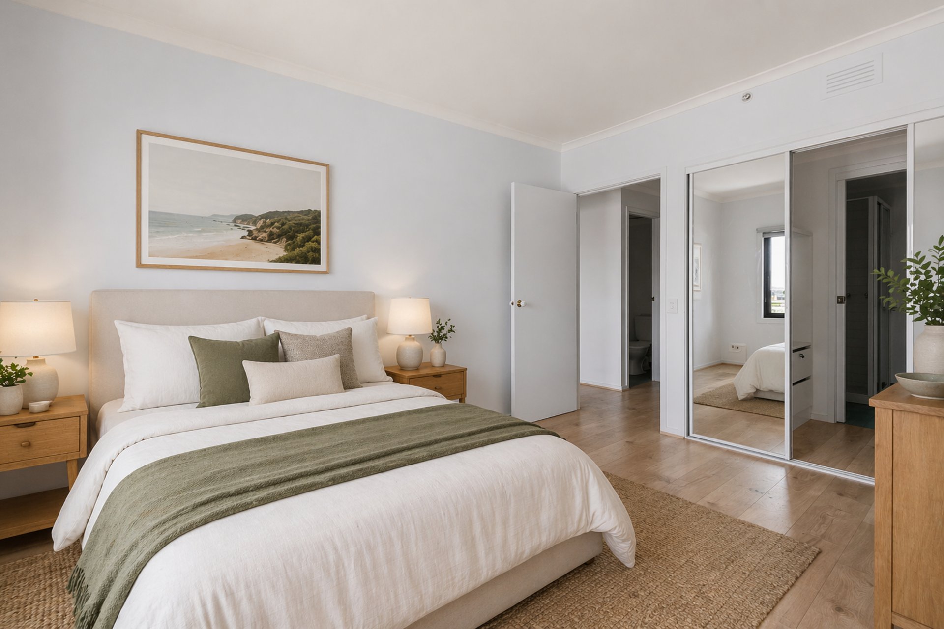 Accommodation is thoughtfully zoned, with two well-proportioned bedrooms including a main suite featuring walk-in robe and ensuite, while a central bathroom services the second bedroom with ease.