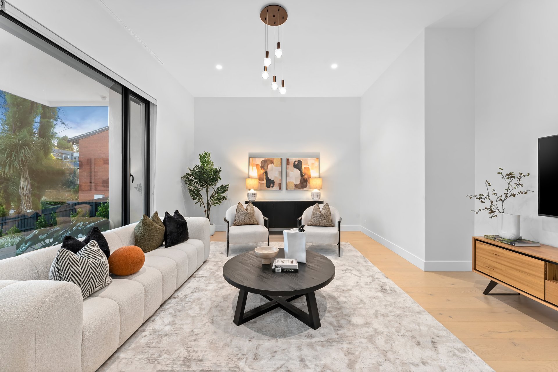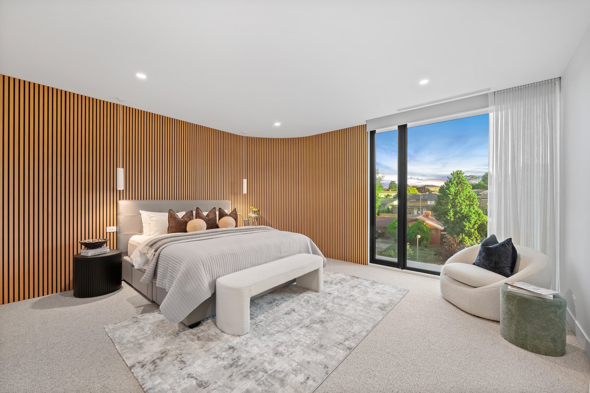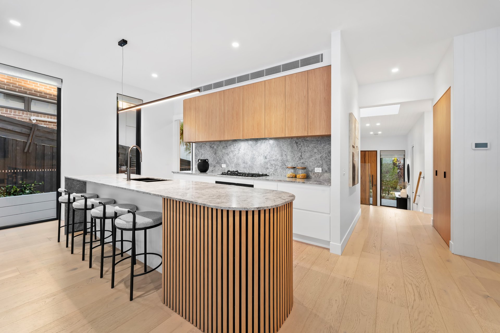 Full insulation and mechanical ventilation ensure comfort in every season, complemented by commercial-grade double glazed windows dressed with quality window furnishings, including sheers and remote-operated blinds.