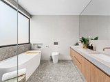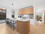 Tall ceilings enhance the sense of space throughout the home, starting on the ground floor, which hosts a formal lounge, a study, a laundry with clothesline access, a mudroom with a wine rack, coat and shoe storage and subfloor access, a powder room and a guest suite complete with a walk-in wardrobe and an ensuite.