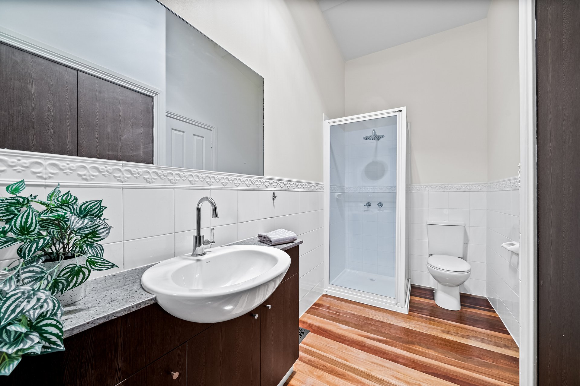 Step inside to discover hardwood timber flooring, ornate cornices, ceiling roses and a charming fireplace that nods to the home’s heritage. The open-plan living and dining area is enhanced by Quartzite kitchen and island bench and ample storage, including clever under-stair cabinet and wine storage. Large windows and a natural skylight ensure the home is filled with light, while split system heating and cooling throughout, along with gas ducted heating provides year-round comfort.