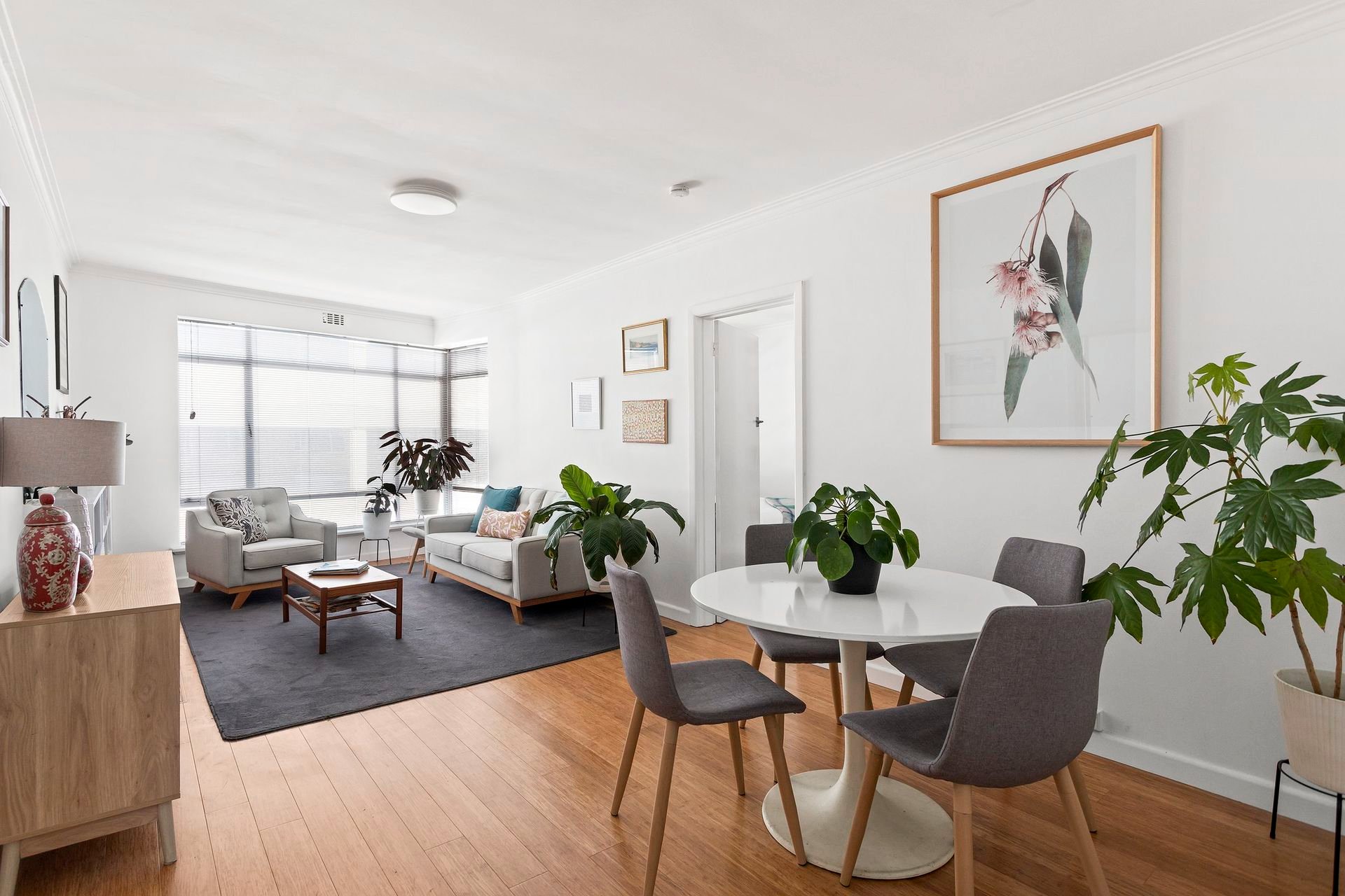 Upon entering, you'll be welcomed by high ceilings and elegant timber flooring, creating an immediate sense of space and sophistication. The living and dining area is flooded with natural light, enhancing the peaceful atmosphere and offering an ideal setting for relaxation and entertaining.