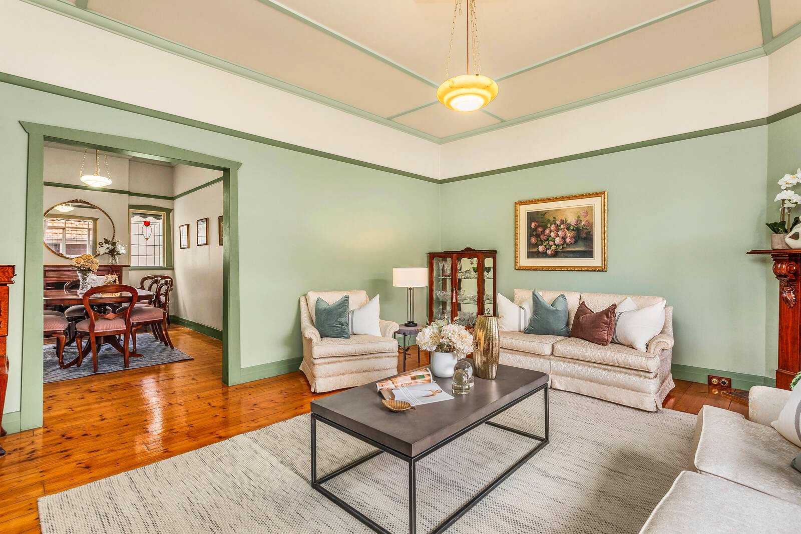 Character filled with decorative high ceilings, polished Baltic pine floorboards, leadlight aspects and ornate open fireplaces, a sensitively extended layout offers superb living and entertaining credentials.