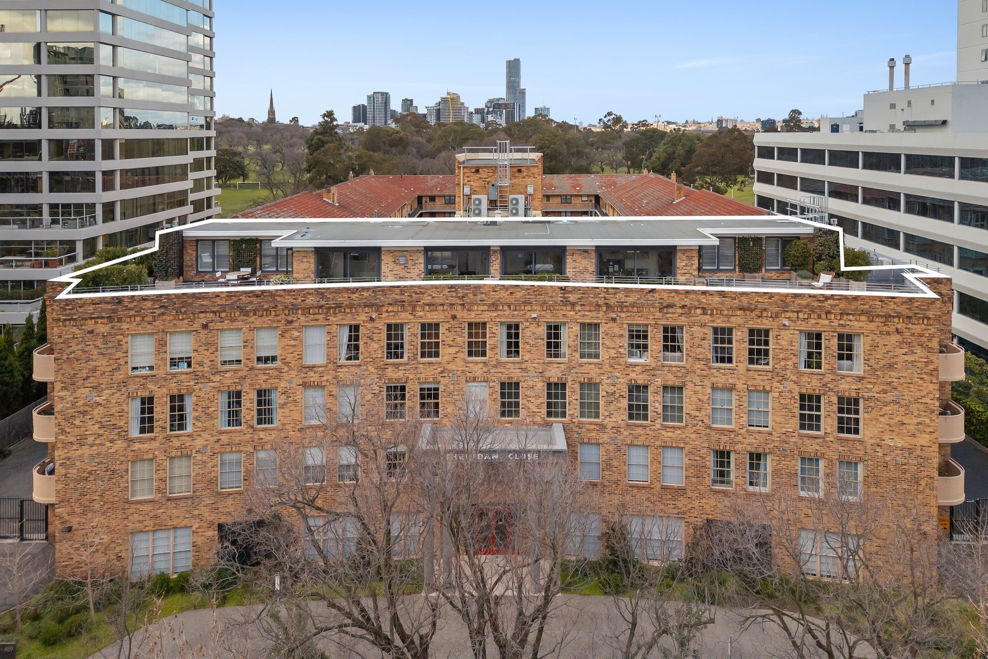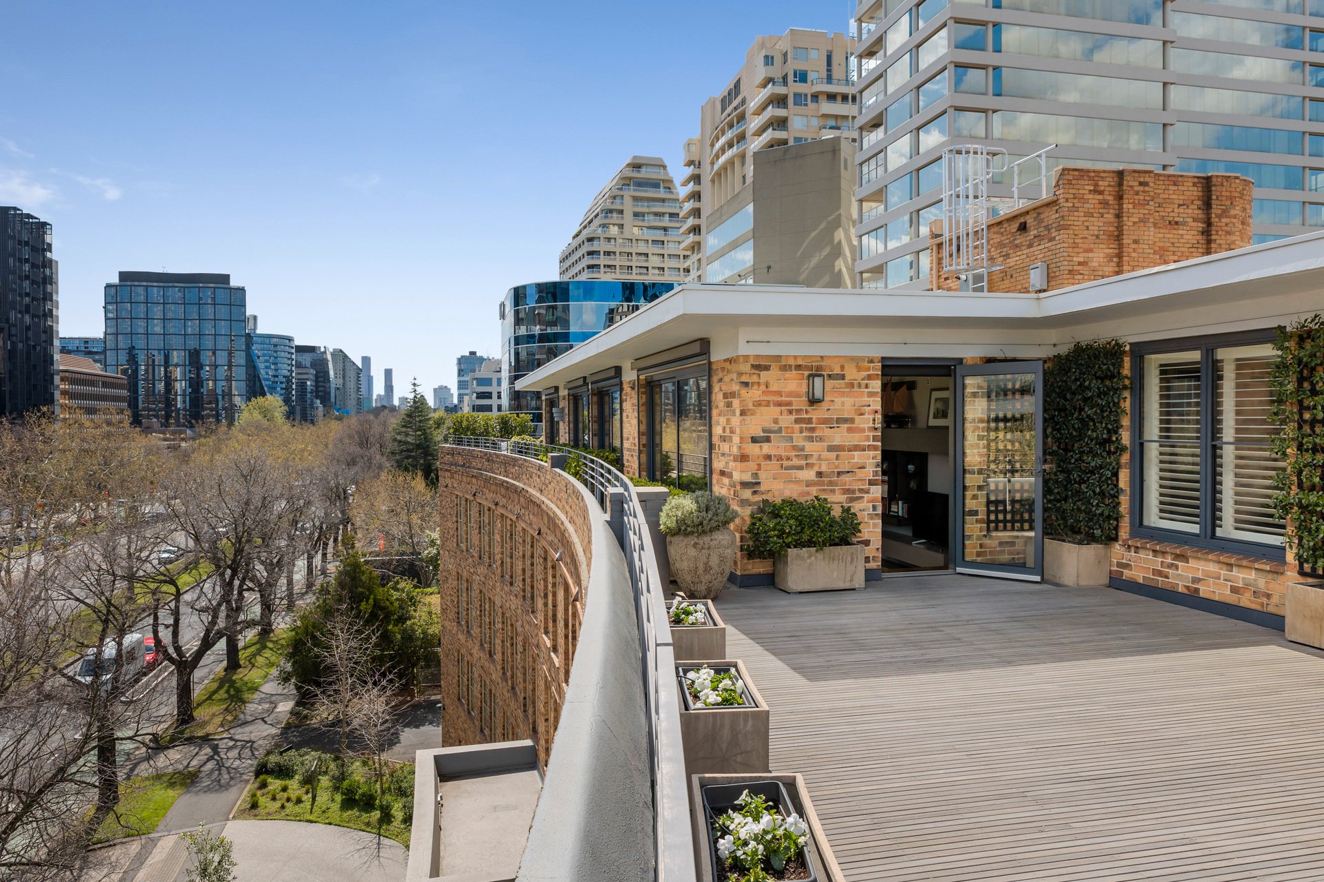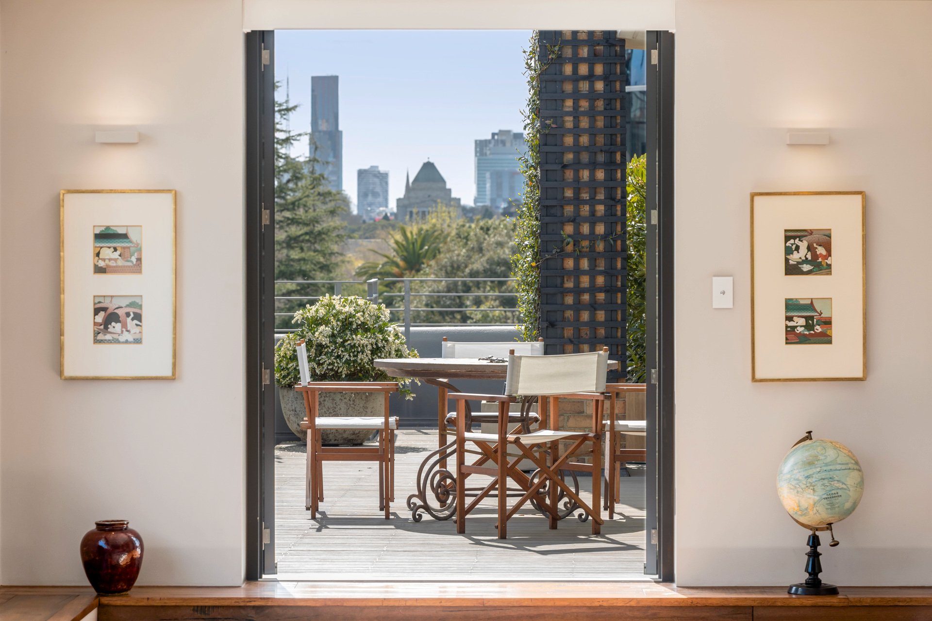 The penthouse offers a unique blend of classic elegance and modern convenience. Its location in a landmark building designed by Sir Bernard Evans in 1949 ensures not only a rich history but breathtaking views of St Kilda Rd, extending from The Shrine to the south.