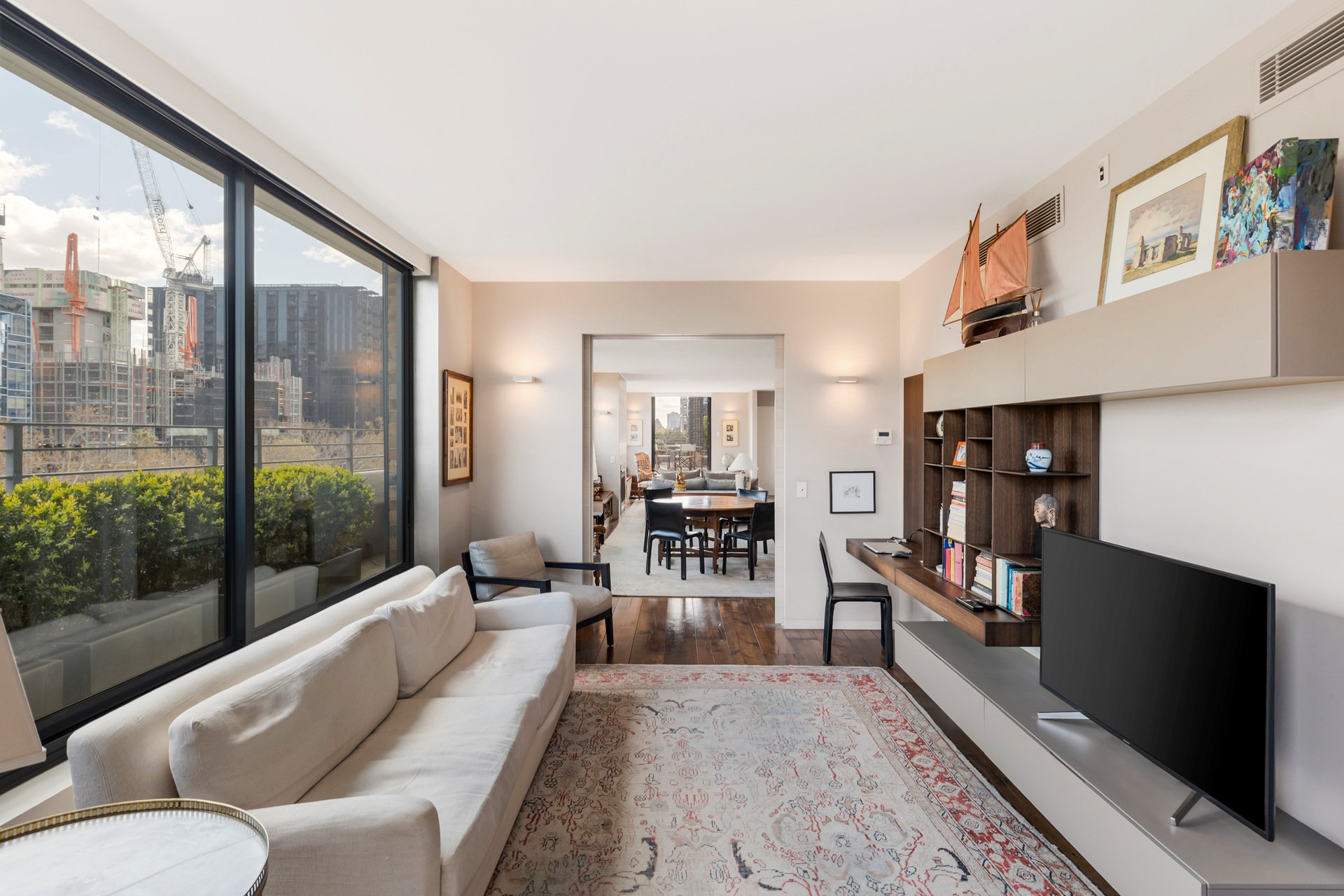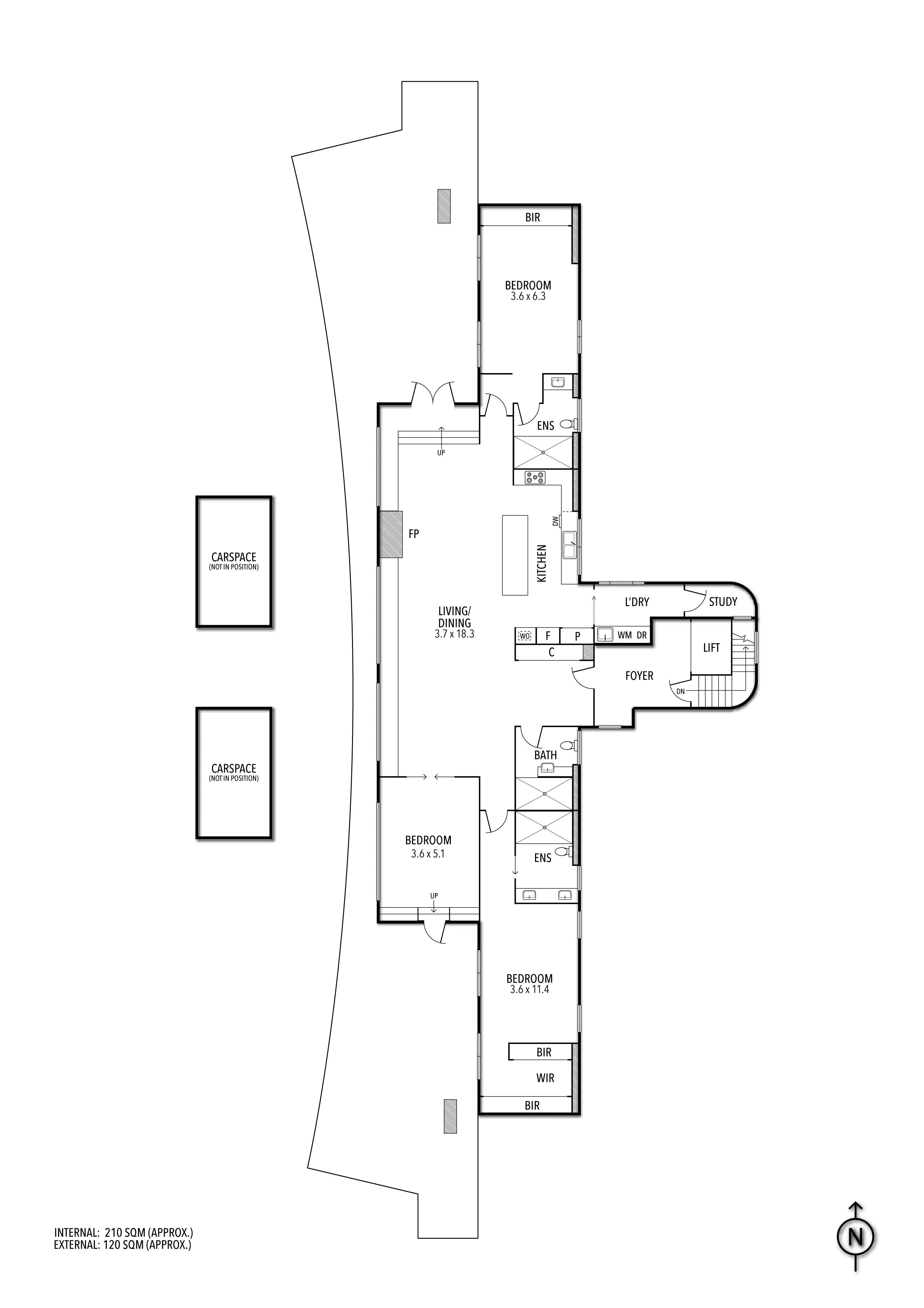 The interior comprises a private lift entrance, a magnificent sitting and dining area which encapsulate a contemporary lifestyle. Further amenities include a third bathroom, a laundry, and a compact office, two secure undercover carparks, and direct secure access from the building into Fawkner Park.