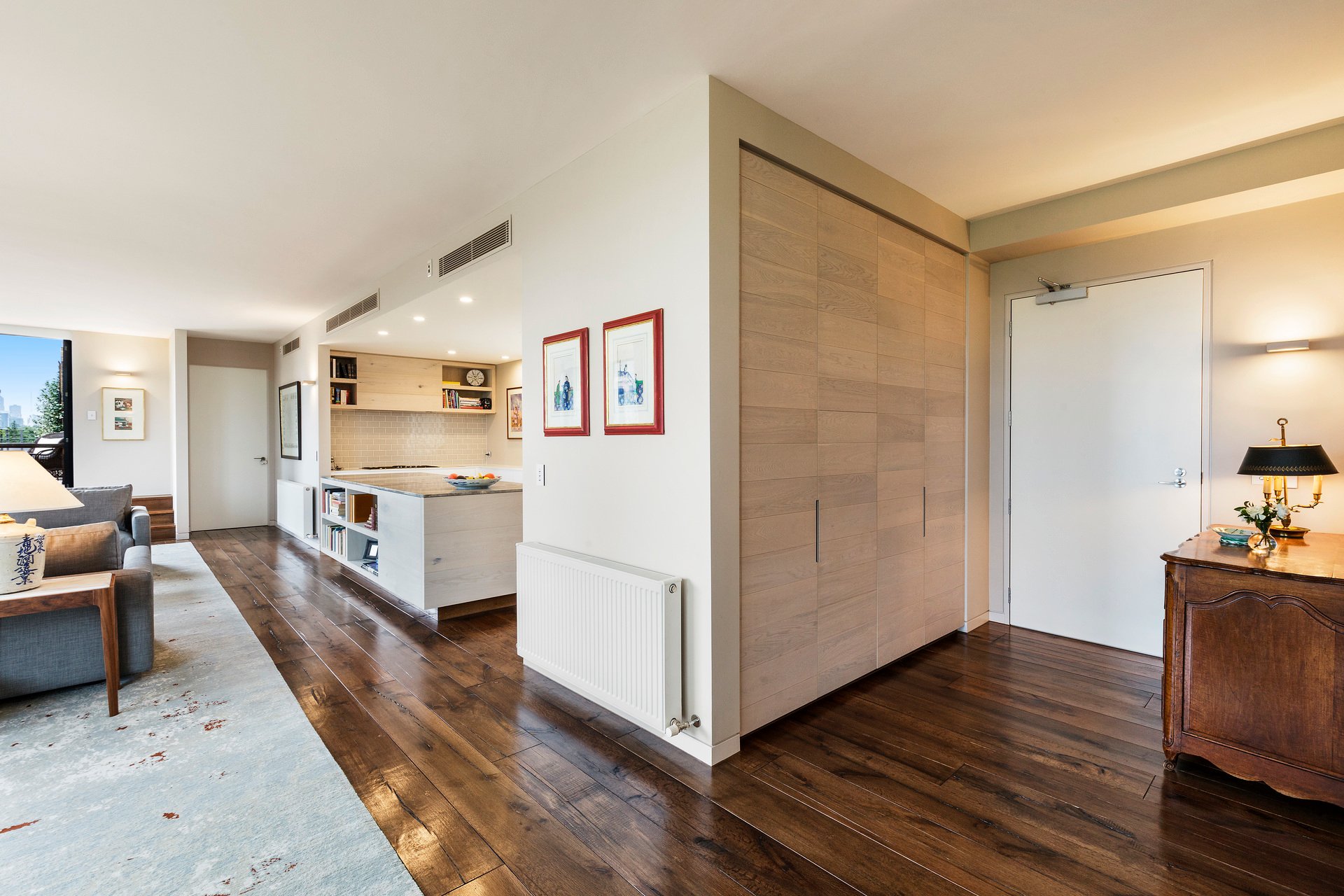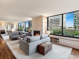 This exquisite and expansive full floor penthouse is nestled in an iconic St Kilda Rd building. The apartment was meticulously transformed, with every detail considered - from the complete stripping and rebuilding of internal walls to the installation of modern amenities. The renovation includes re-plumbing, re-wiring, and double-glazed windows enhancing energy efficiency. Enjoy warmth with hydronic heating, heat and glow gas fireplace and a 5-zone integrated reverse A/C throughout the entire space. Luxuriate in the bathrooms with underfloor heating and heated towel rails. The bathrooms and kitchen boast Italian marble and porcelain tile surfaces, complemented by Danish Vola tapware. Conveniently remote controlled electric internal and external blinds.