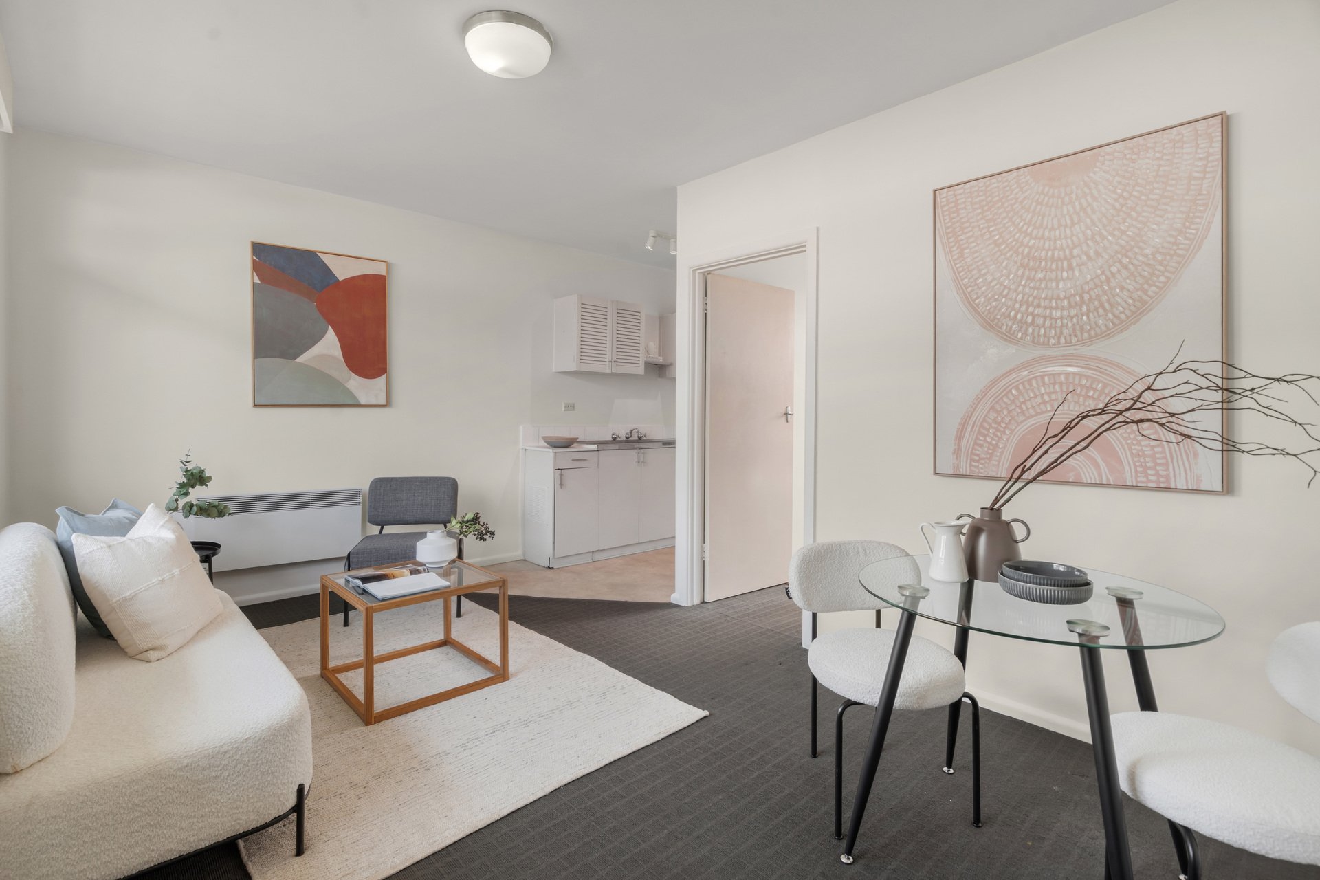 Nestled on the middle floor of a well-maintained allotment, the versatile property has been cleverly designed for low-maintenance upkeep. The open living/meals domain is bathed in abundant natural light, while the functional kitchen is equipped with electric cooking appliances and overhead cabinetry. The carpeted bedroom fitted with built-in robes also features a complementary ensuite. Further highlights include a panel heater, communal laundry and a secure car space accessed via a remote-controlled gate.