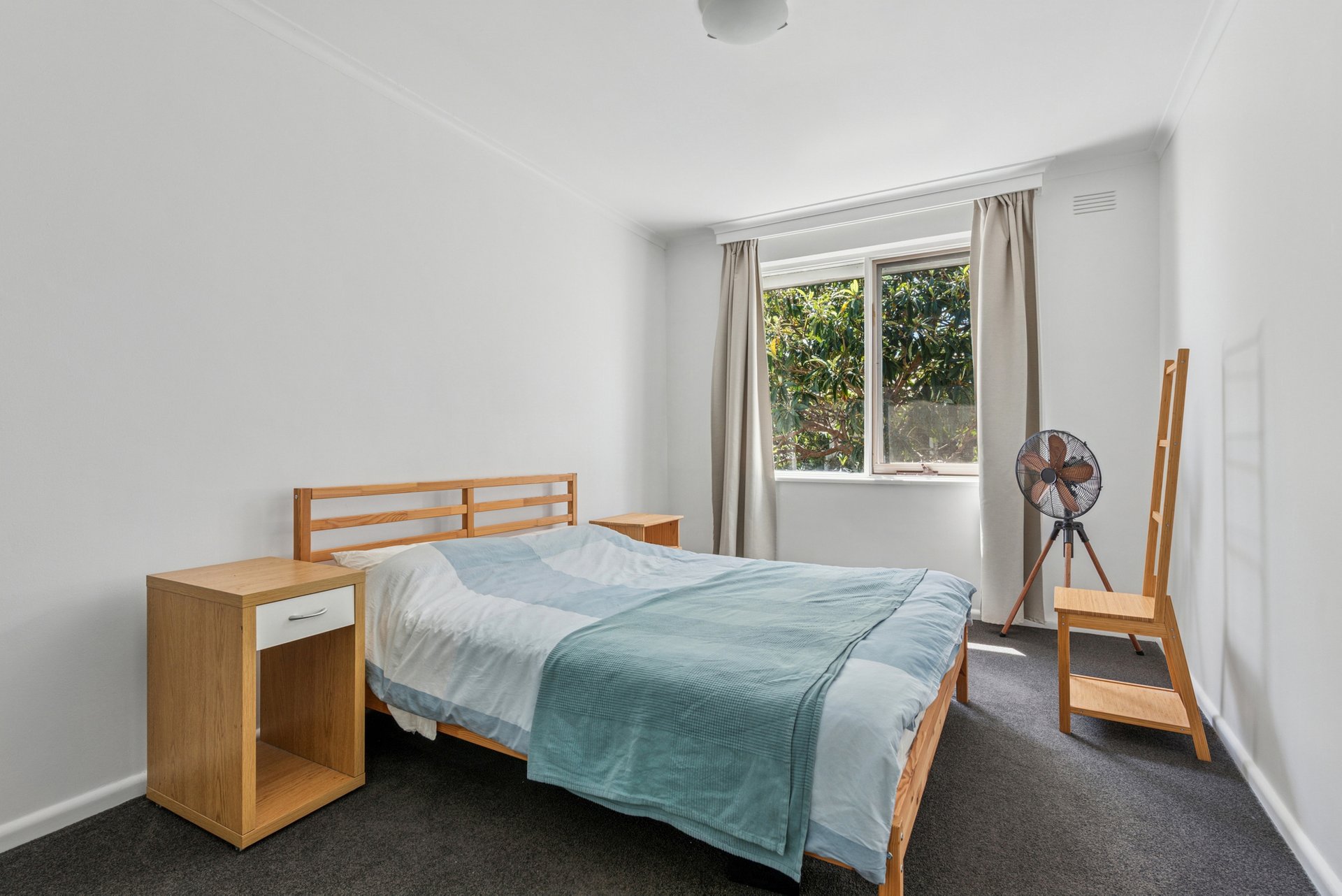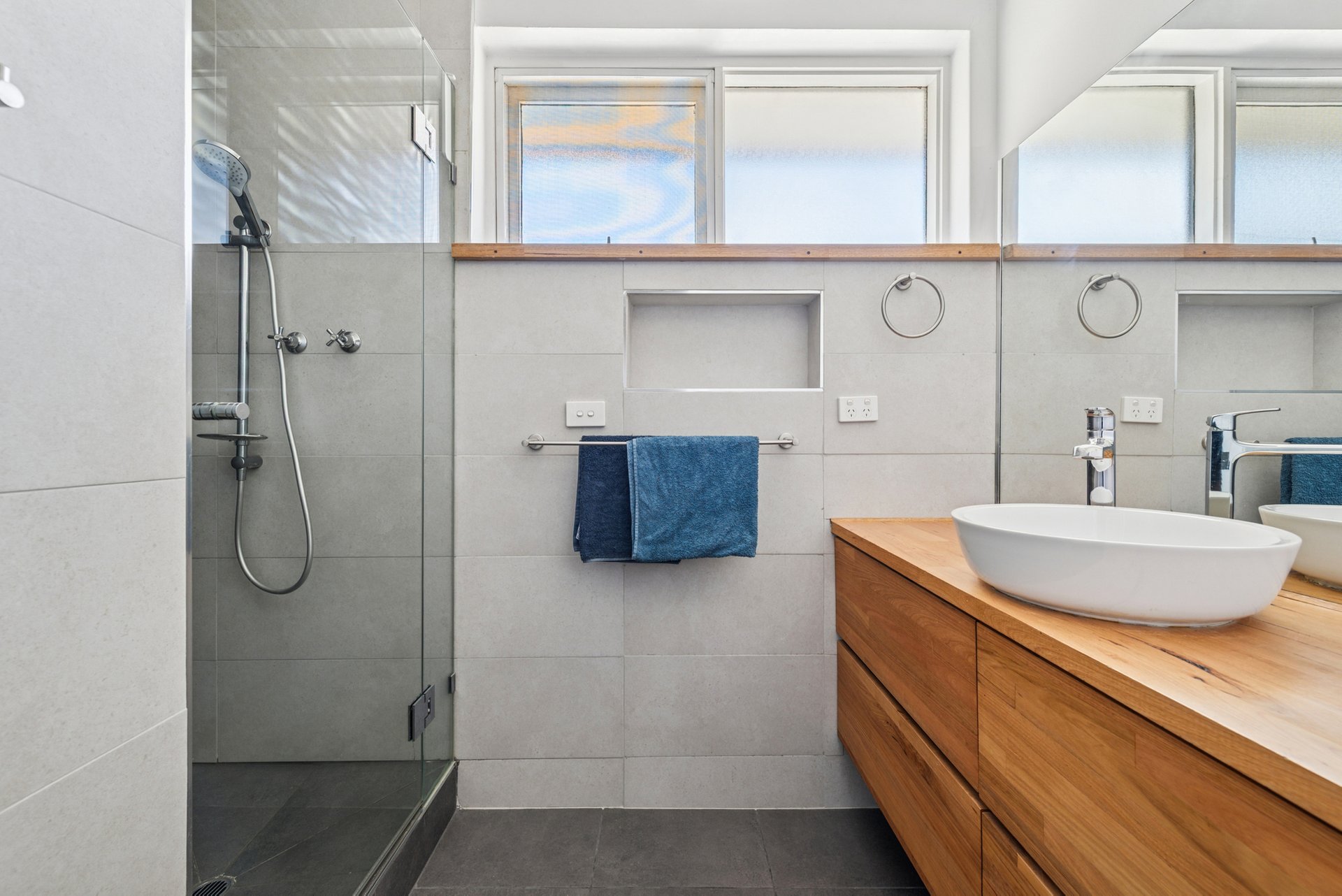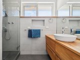 What really stands out, though, is the flexibility. Three bedrooms, including two with built-in robes and a third that’s ideal as a home office, make it a step above the usual. The bathroom pairs modern finishes with natural materials, including a timber vanity, vessel sink and walk-in shower, plus laundry facilities neatly built in. Everything’s been meticulously cared for and maintained with an eye for everyday functionality.
