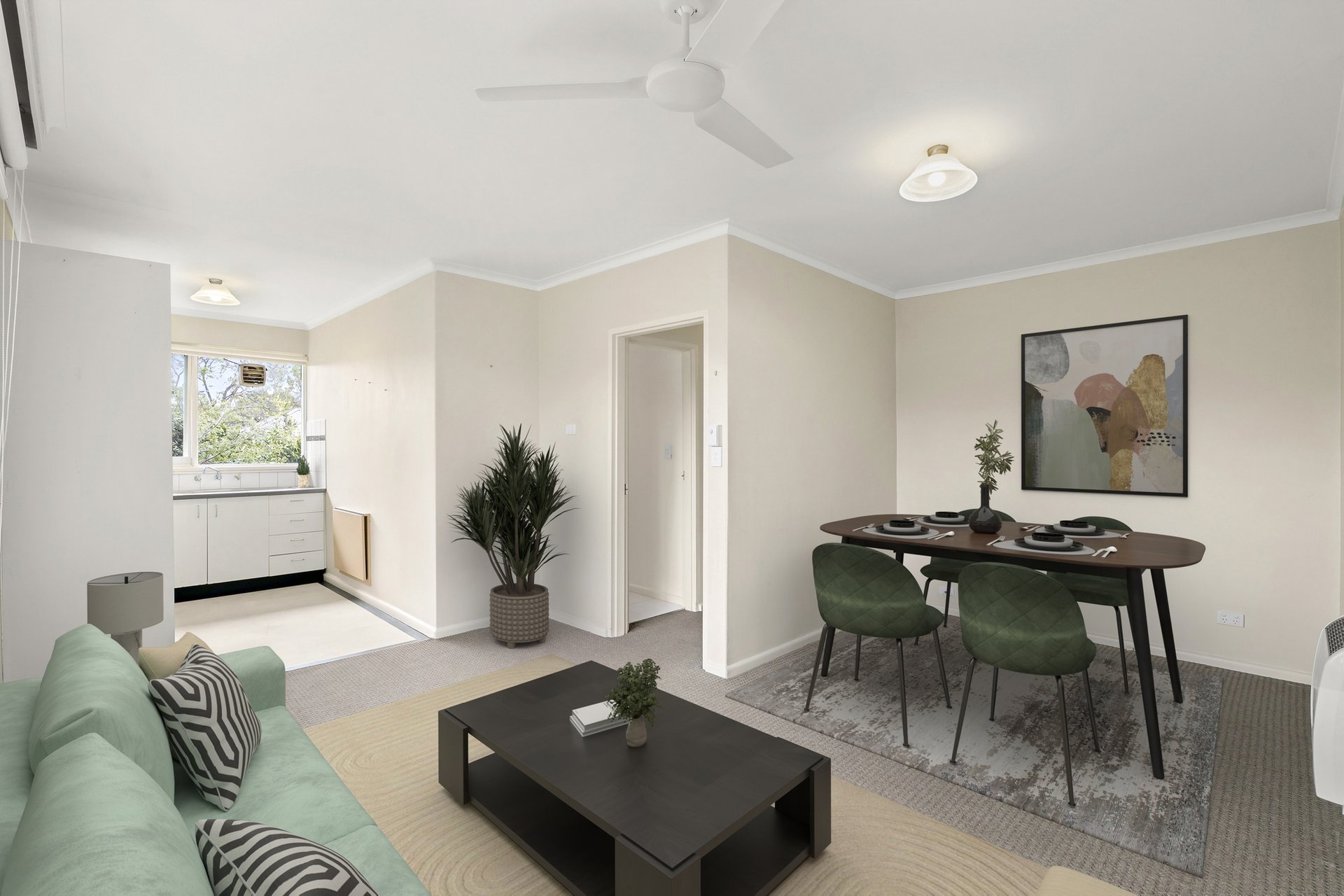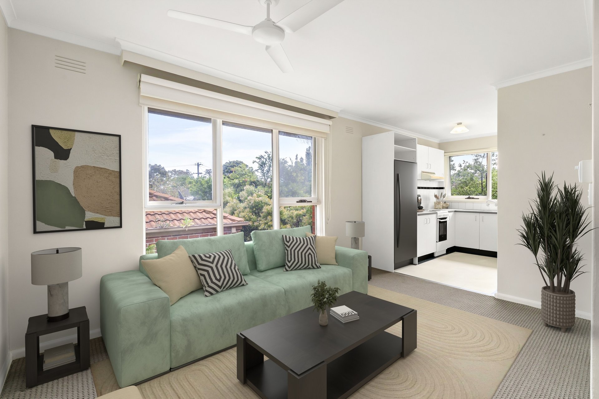 Bathed in natural light thanks to its desirable north-west aspect, the spacious living and dining area provides a warm and inviting space to relax and entertain. The bright modern kitchen features ample storage and bench space, ideal for easy everyday living.
