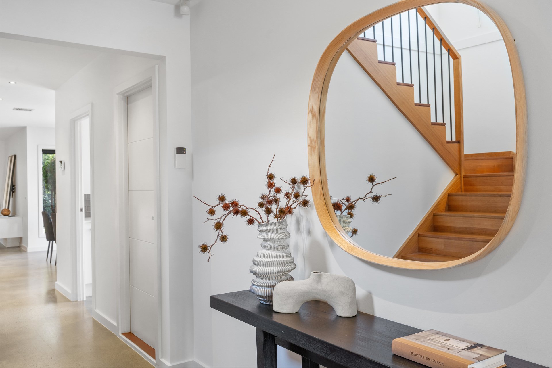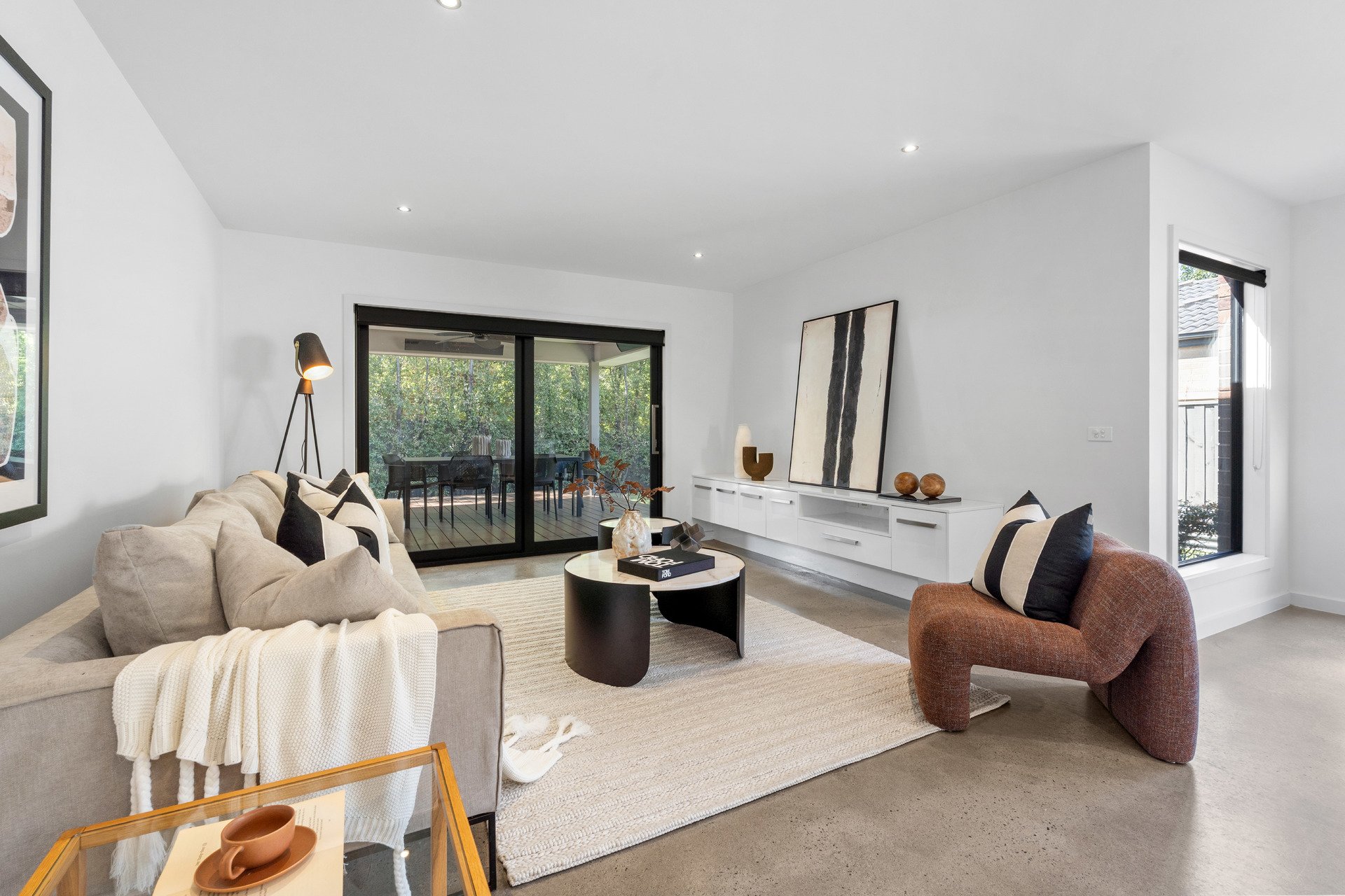 Additional highlights include polished concrete floors, a full-size laundry with external access, powder room, ducted heating and refrigerated cooling, double glazing throughout, ducted vacuum, security alarm and video intercom. Car accommodation is excellent with a double garage offering internal entry plus additional driveway parking for a third vehicle.