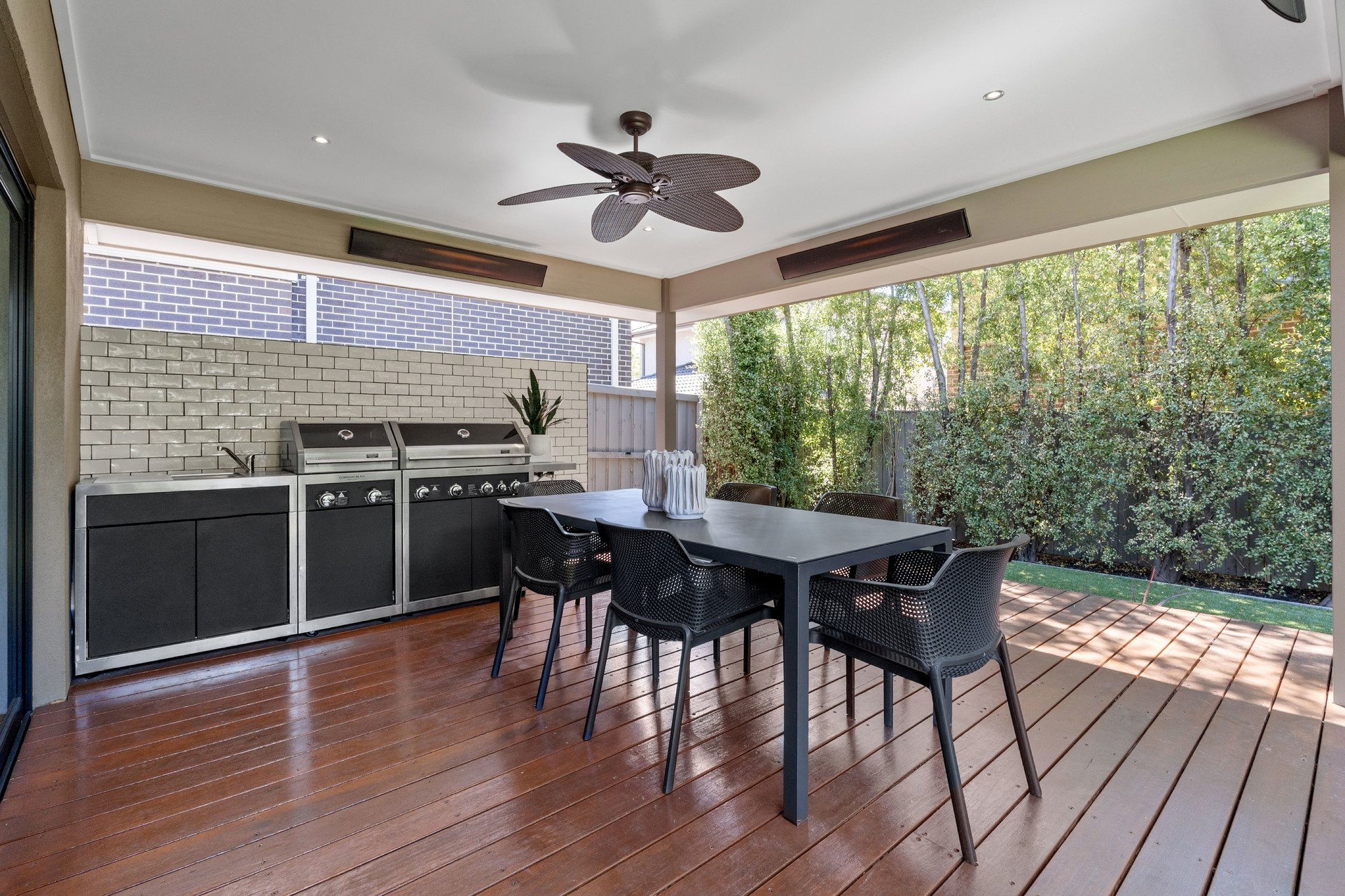 Entertaining is effortless with a fabulous undercover alfresco area featuring a built-in BBQ kitchen, outdoor heater and fan, all overlooking an established and private rear garden.
