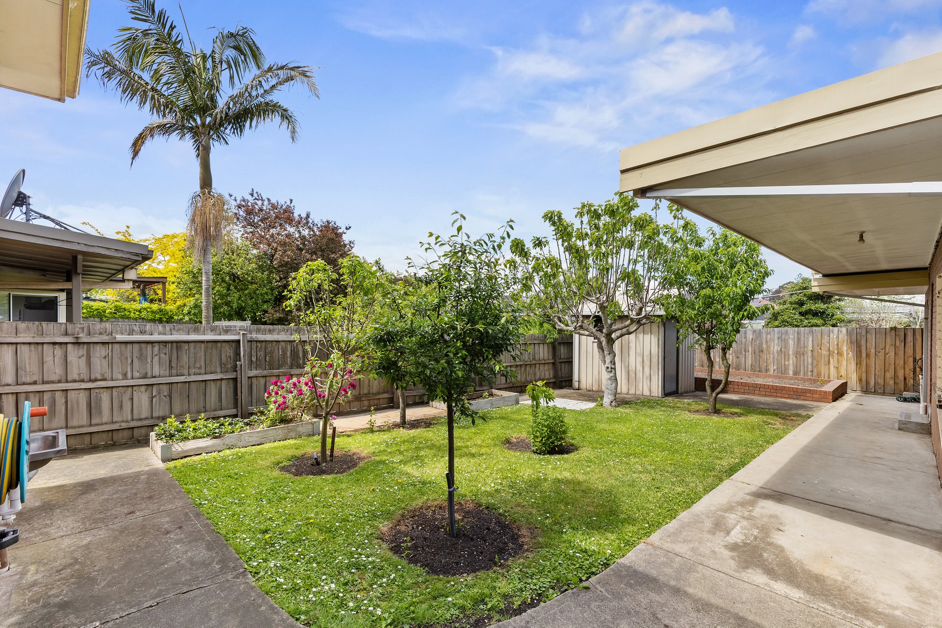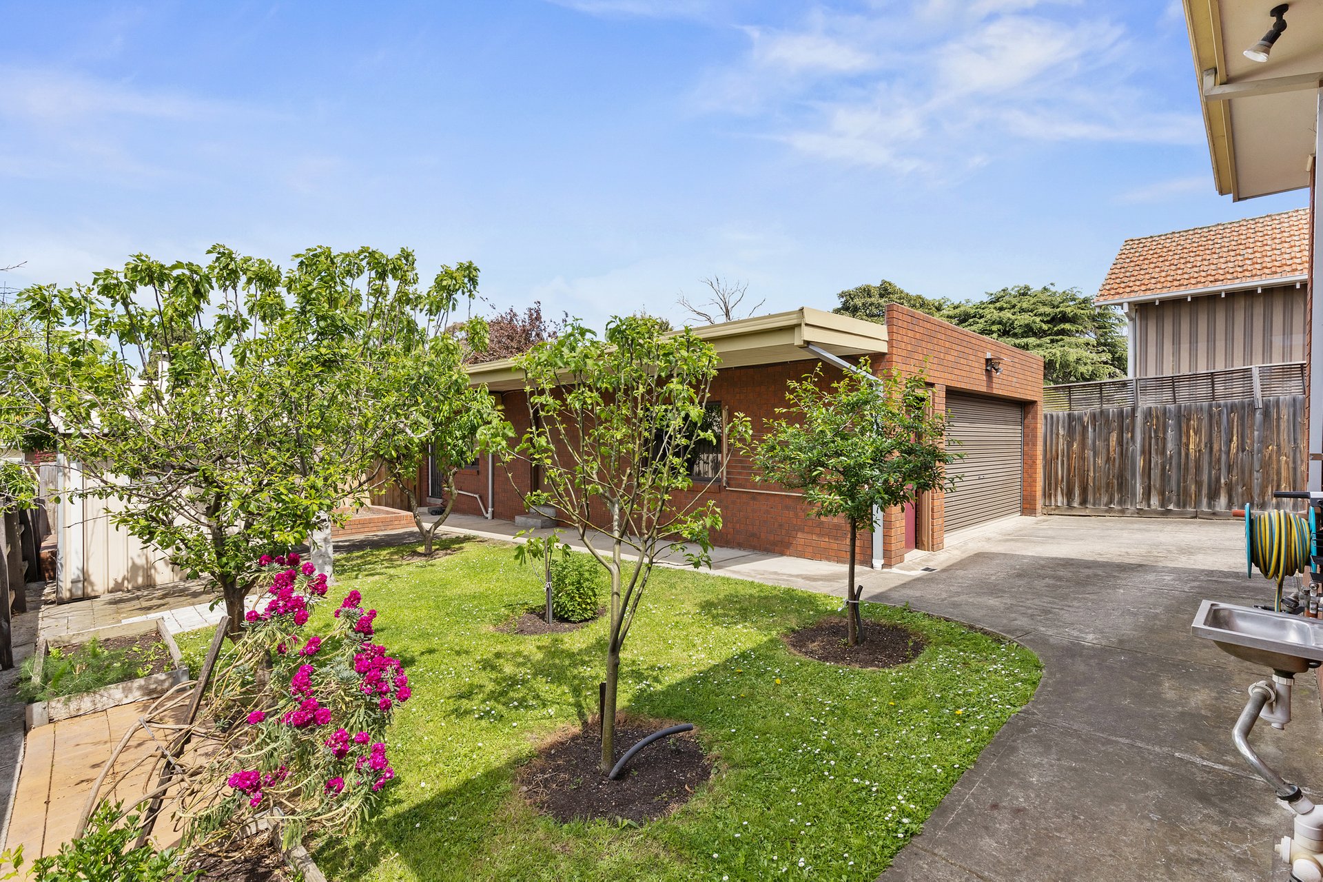 Outdoors, a large double garage and versatile rear room provide exceptional flexibility as a home office, studio, teen retreat or gym. The under-house area offers valuable storage or an ideal wine cellar. Surrounded by established gardens and mature fruit trees, the private backyard is peaceful and perfect for family gatherings.