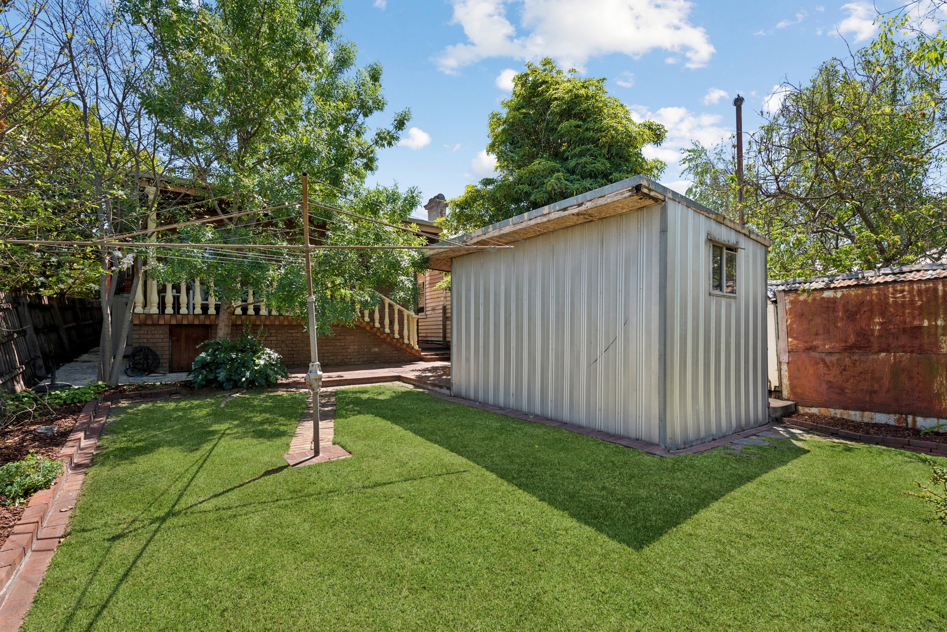 Outside, a covered verandah steps down to a brick-paved patio and garden, offering enough space to create an alfresco entertainer’s dream. There’s an external toilet and a powered workshop for storage or weekend projects.