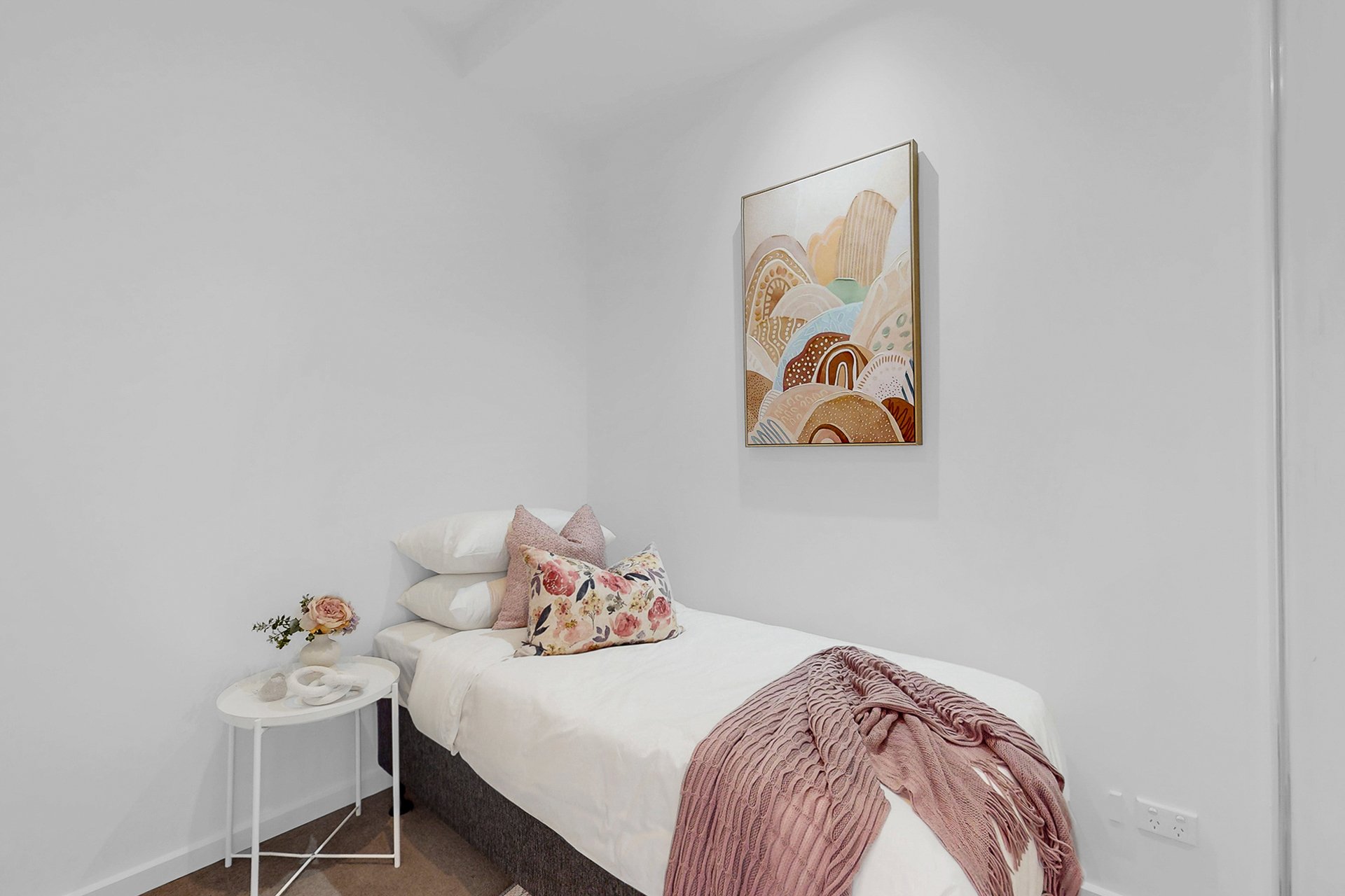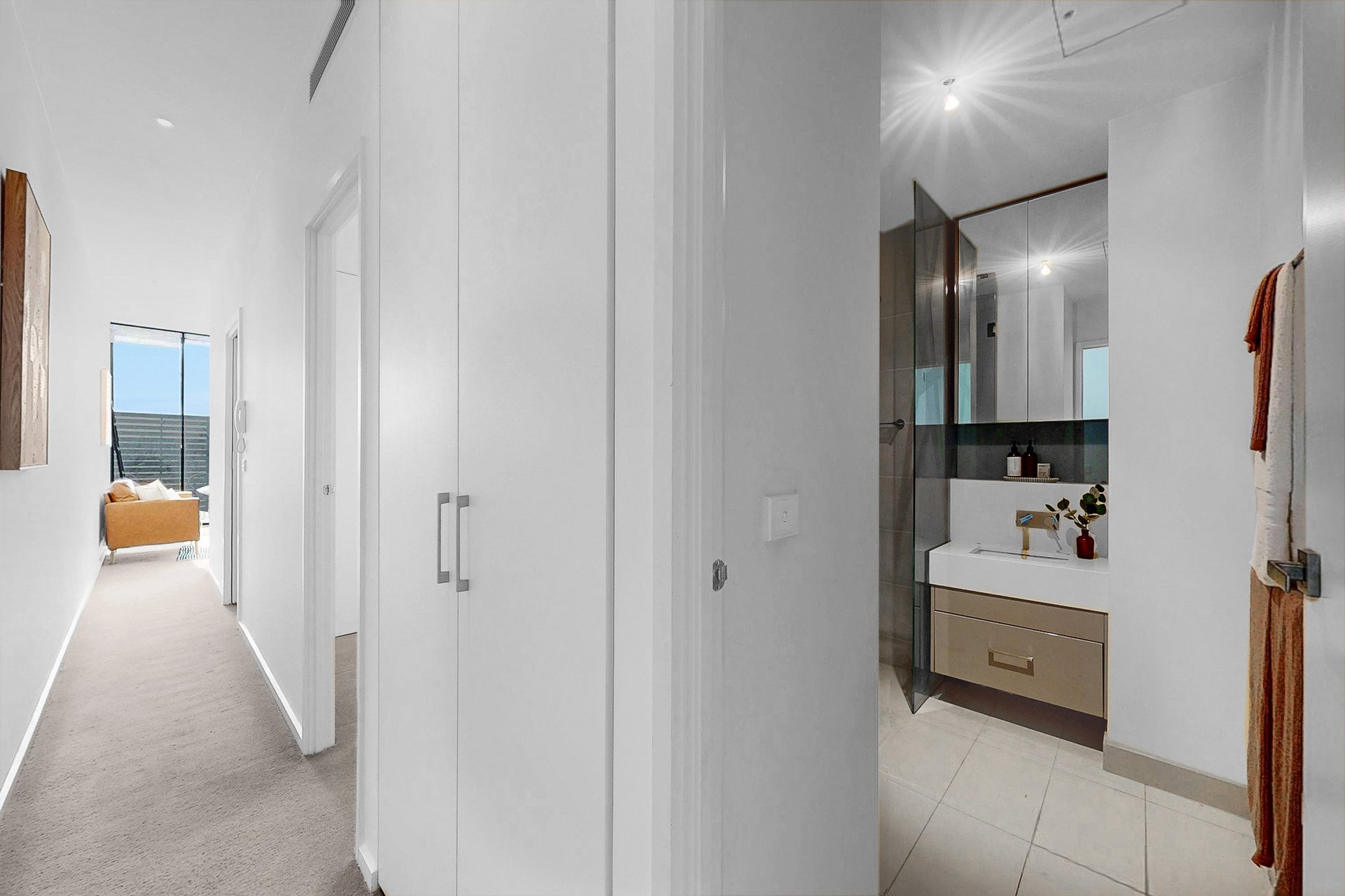 Nestled in the heart of the architecturally striking AMNE building, this beautifully appointed two-bedroom, one-bathroom apartment presents an exceptional opportunity for professionals or anyone seeking a peaceful and private lifestyle. Designed with modern living in mind, the apartment boasts a sleek, contemporary kitchen complete with stone benchtops, stainless steel appliances, a dishwasher, soft-close drawers, glass splashbacks and generous storage space. The spacious open-plan living and dining area is filled with natural light and flows seamlessly onto a large private balcony, perfect for unwinding or entertaining.