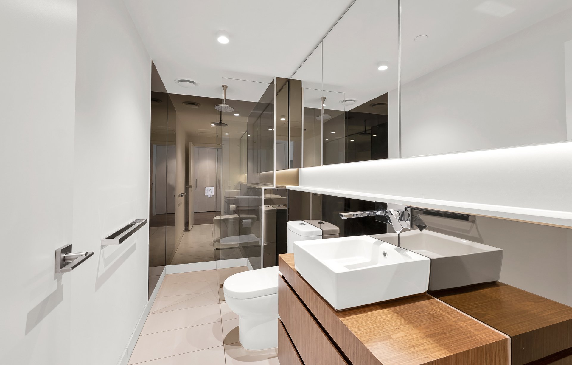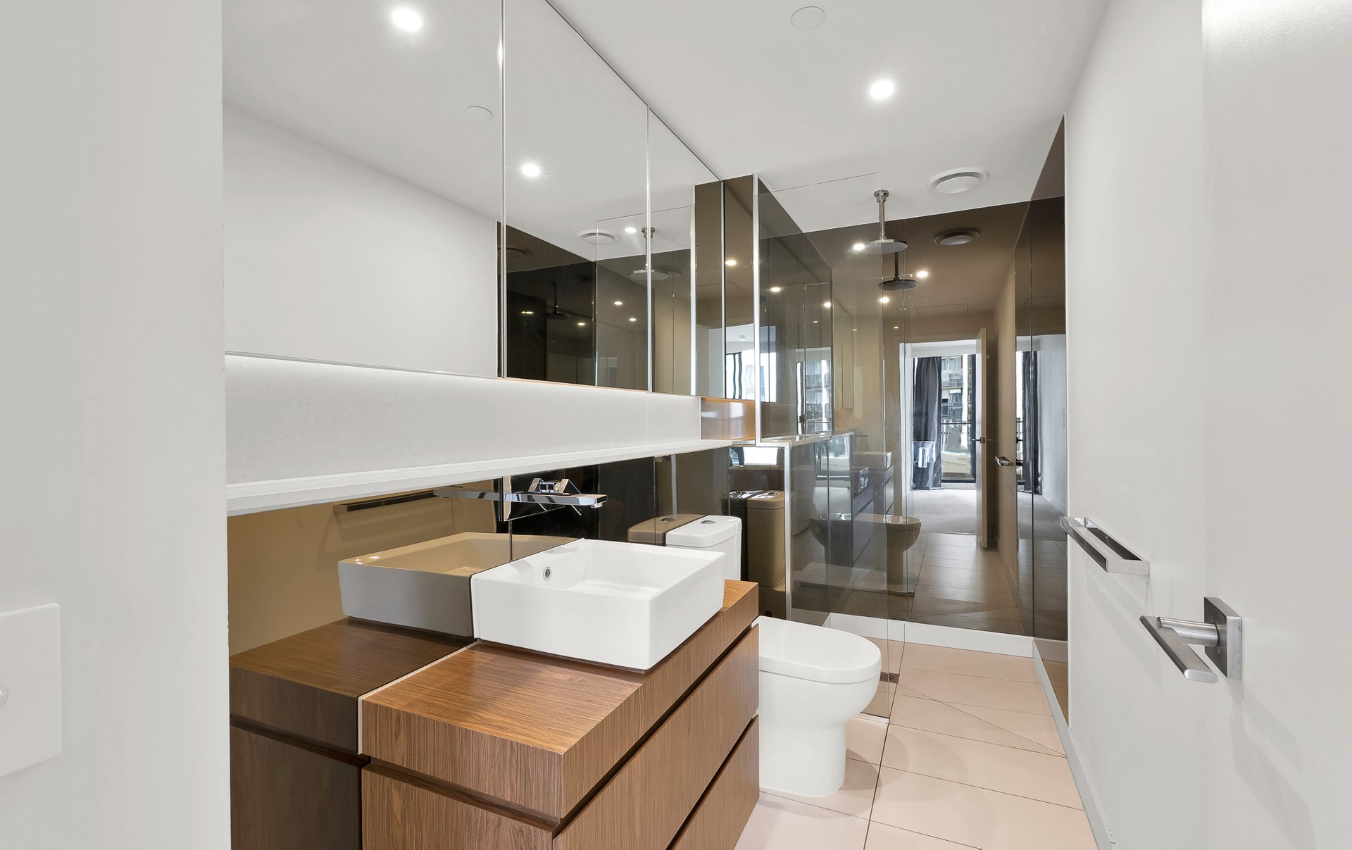 Both bedrooms are well sized and feature built-in robes and plush carpeting, offering comfortable and private retreats. The two bathrooms are modern, spacious, and thoughtfully designed, providing both style and convenience for occupants.
