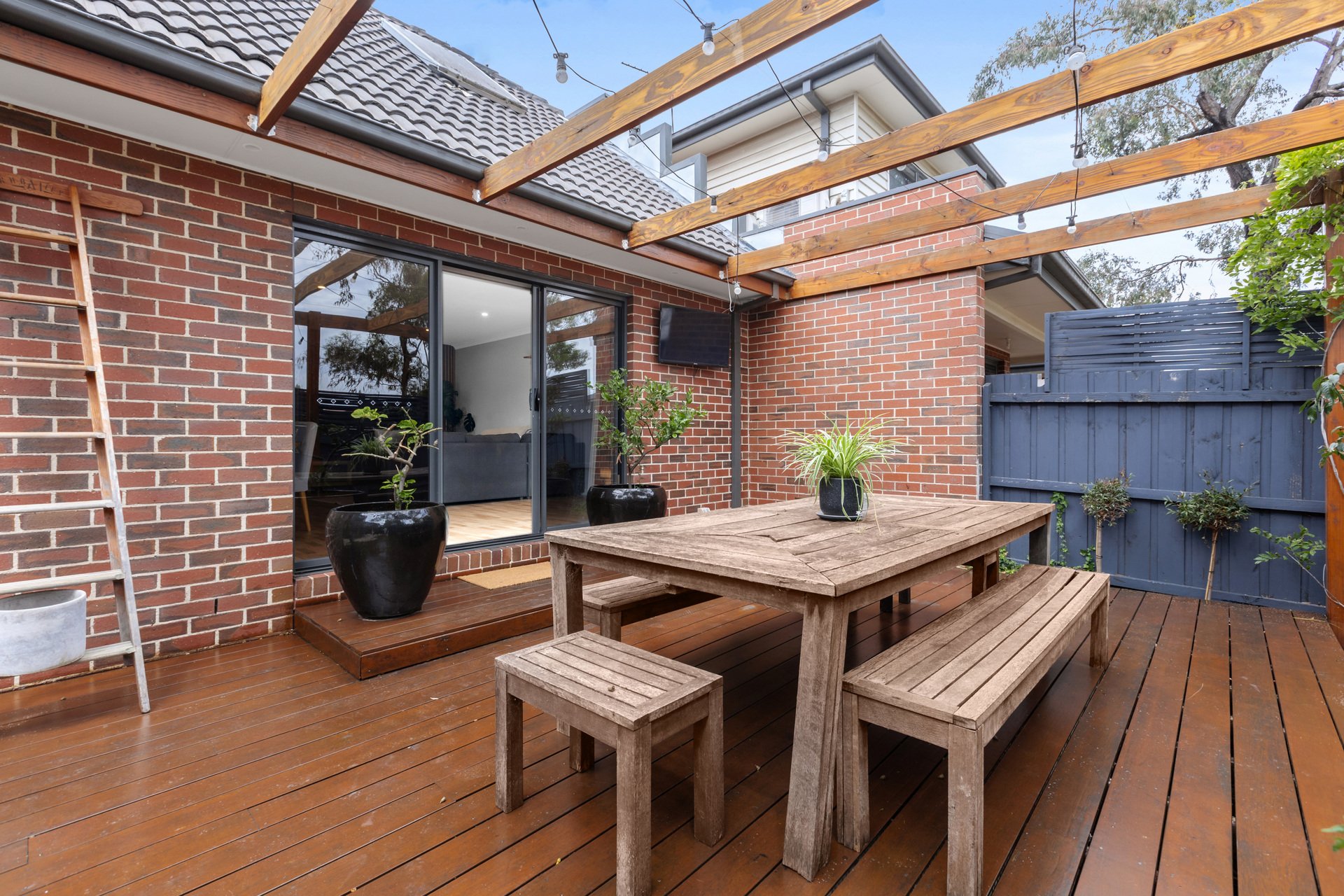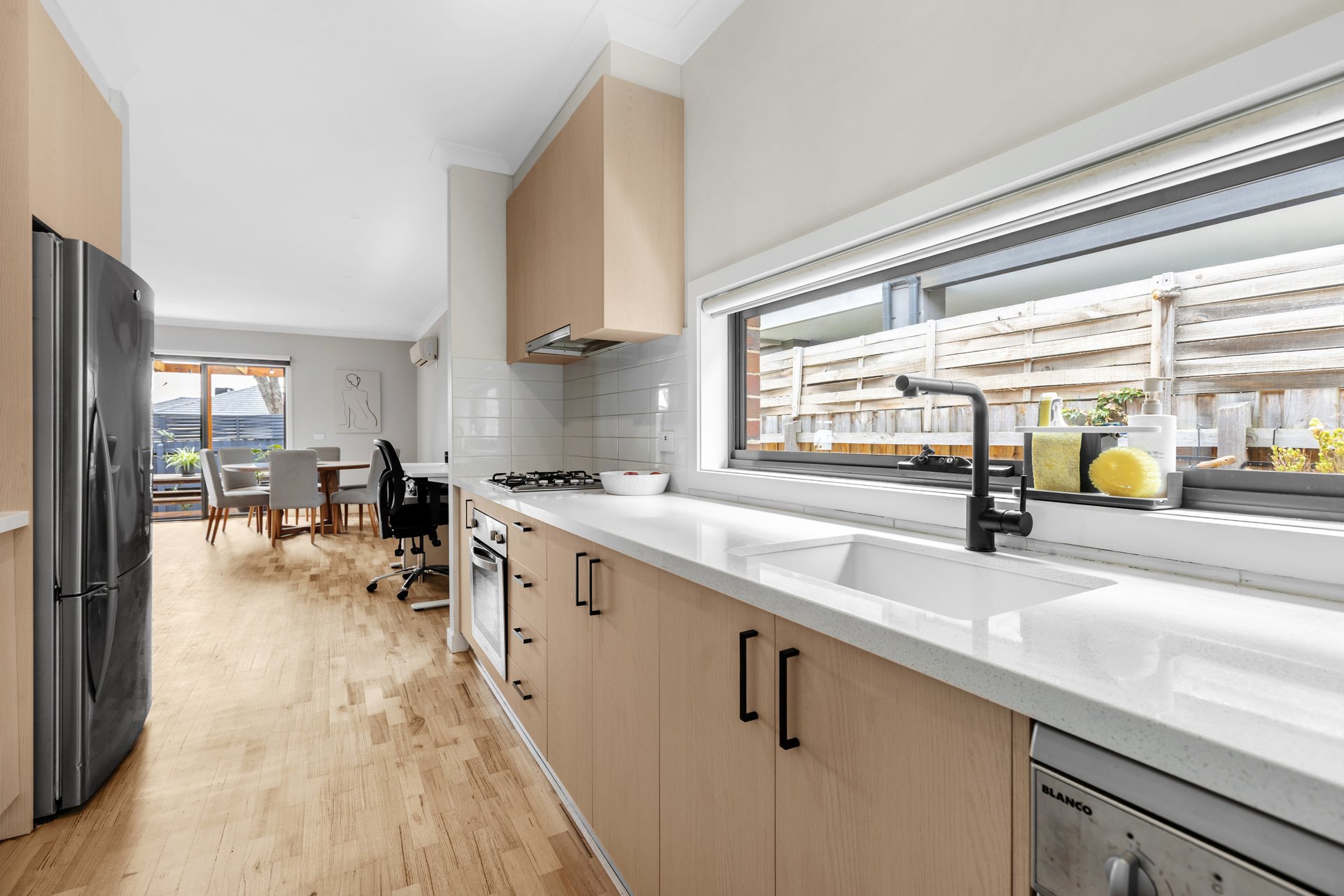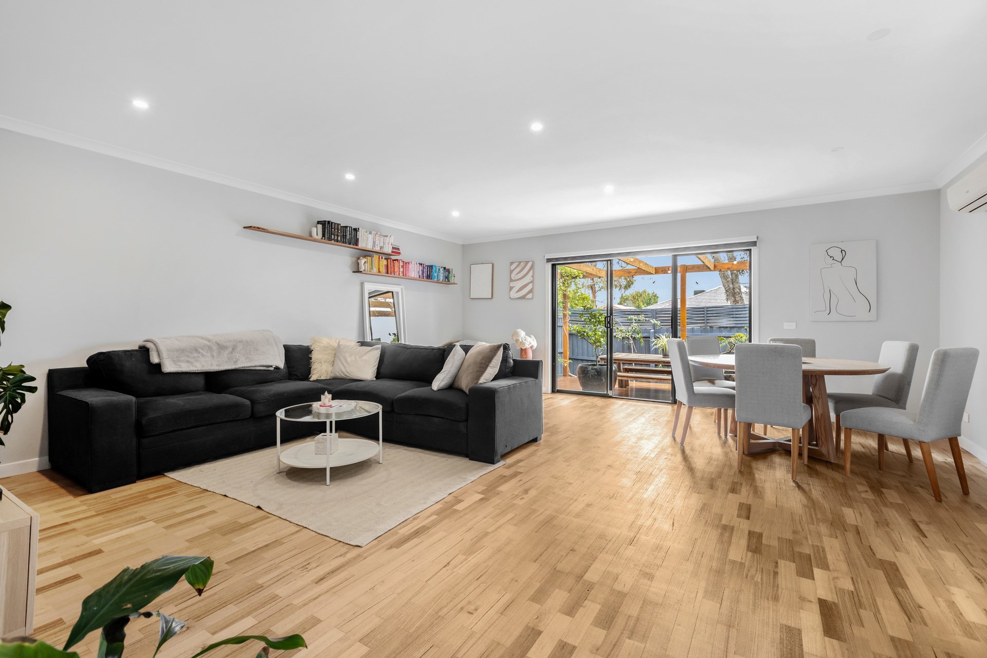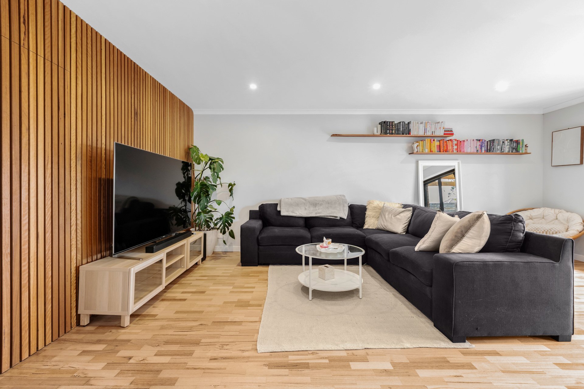 Supreme living space, a superb deck and serene backdrop make this chic two bedroom home an assured selection in a prized rear position. Gorgeously presented, the two storey abode is introduced by blonde floorboards. Stone counters and Blanco appliances grace a kitchen leading to a sublimely spacious social hub.