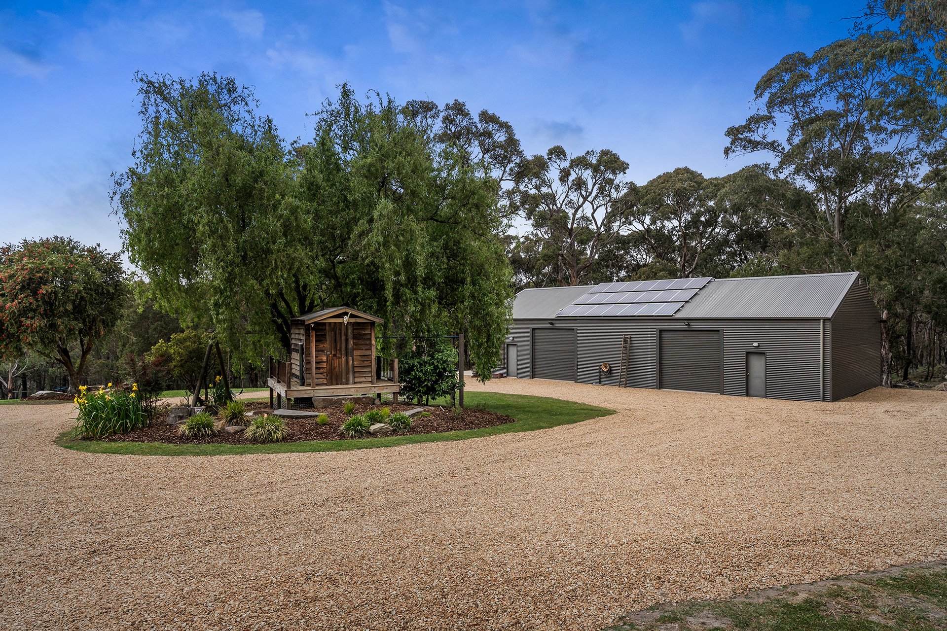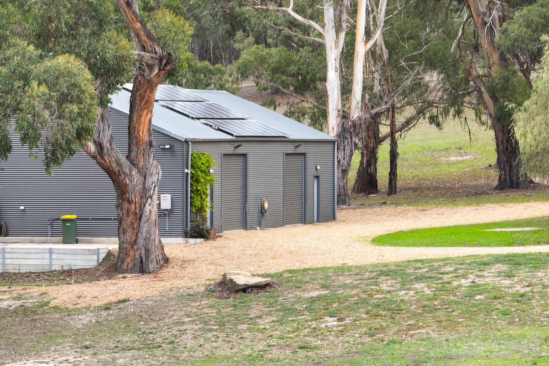 Beyond the residence, the estate reveals its true scale and versatility with exceptional infrastructure tailored for equine pursuits. Highlights include a 10m x 20m shed with wash bay, stables, a tack room, a shelter, two shipping containers, two dams, water tanks, mains power supplemented by solar, and a backup generator. Set amongst lush lawns and mature European trees, the grounds are as beautiful as they are practical.
