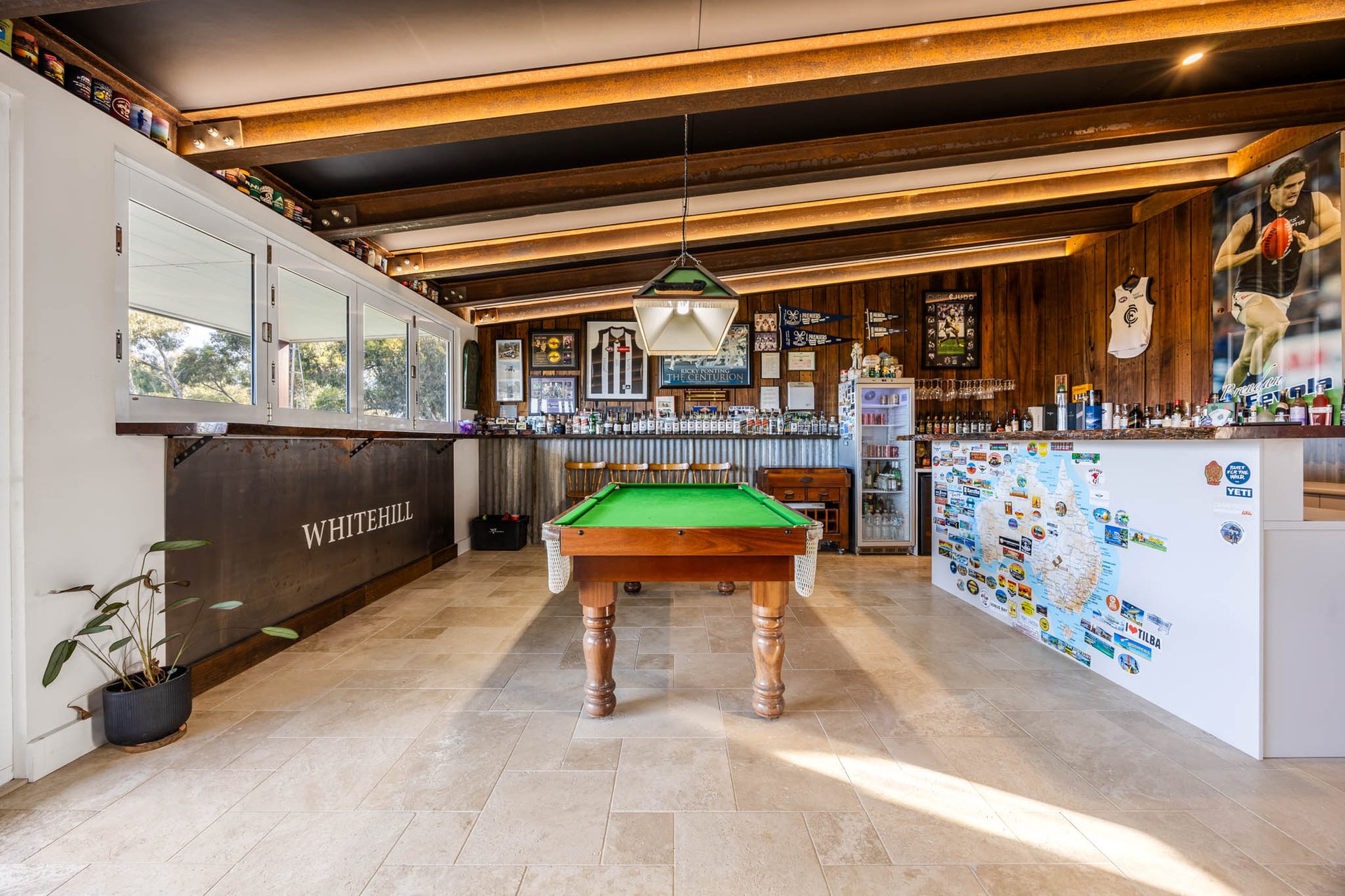 Multiple living zones include a lounge, living area, and character-rich rumpus room complete with bar, pool table, TV, and powder room. The dining area flows naturally from the Hamptons kitchen - decadently appointed with swathes of marble and fitted with premium appliances.
