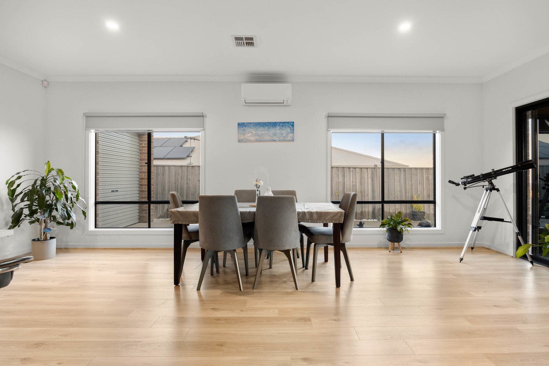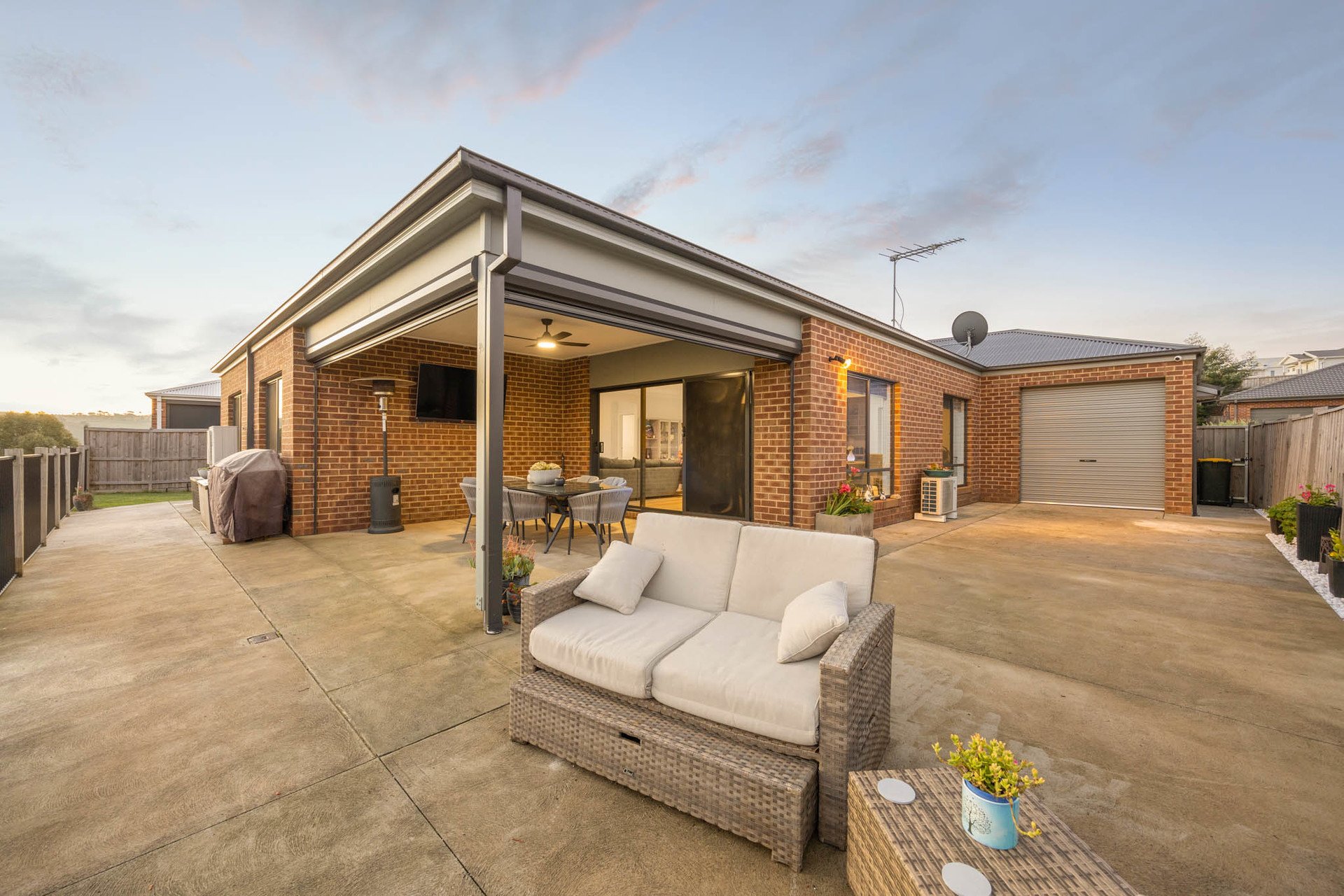 Further inclusions comprise an integrated remote-controlled double garage with a rear roller door opening to a concreted driveway for additional secure parking, Daikin inverter ducted heating and cooling, a split system, CCTV, a well-appointed laundry, and excellent storage throughout.