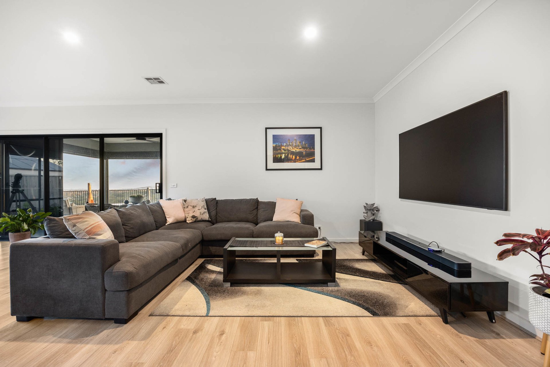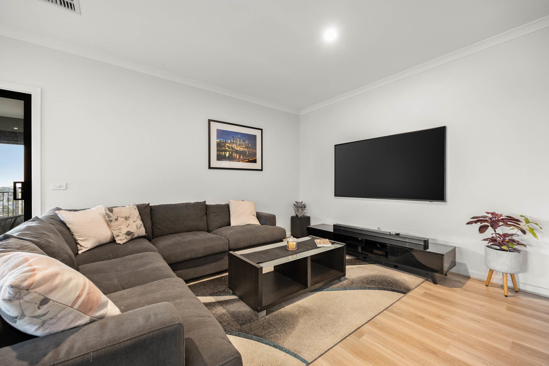 A wall of glass sliding doors extends the living space to the alfresco, where entertaining is elevated by uninterrupted panoramic views stretching to the Melbourne city skyline. Fitted with an exterior fan and bistro blinds, this expansive setting is equally suited to hosting legendary parties or simply enjoying quiet evenings taking in the brilliant outlook.