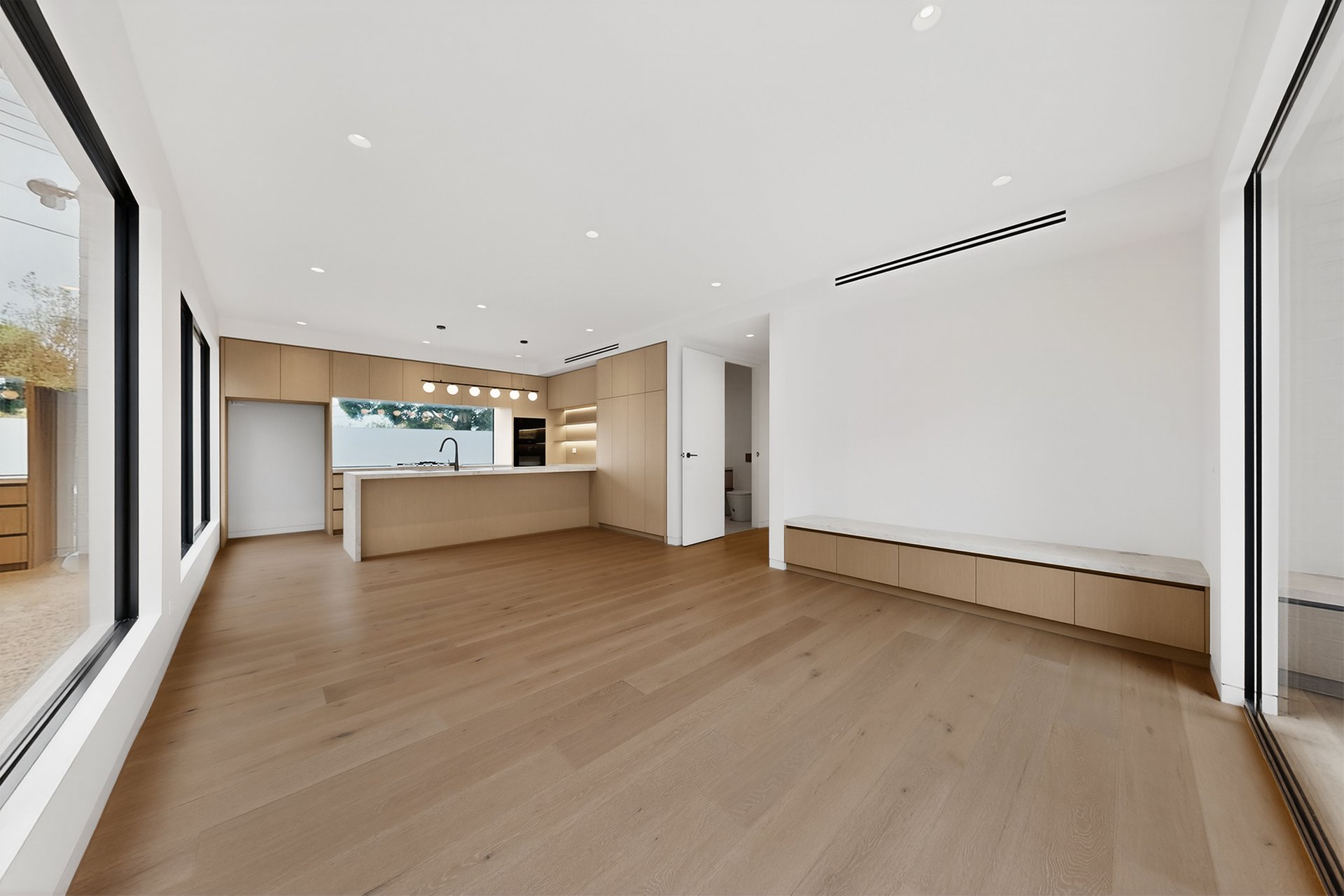 From the moment you enter, the scale is obvious. Soaring ceilings, expansive glazing and clean, modern lines create a sense of space and light that carries throughout the home.