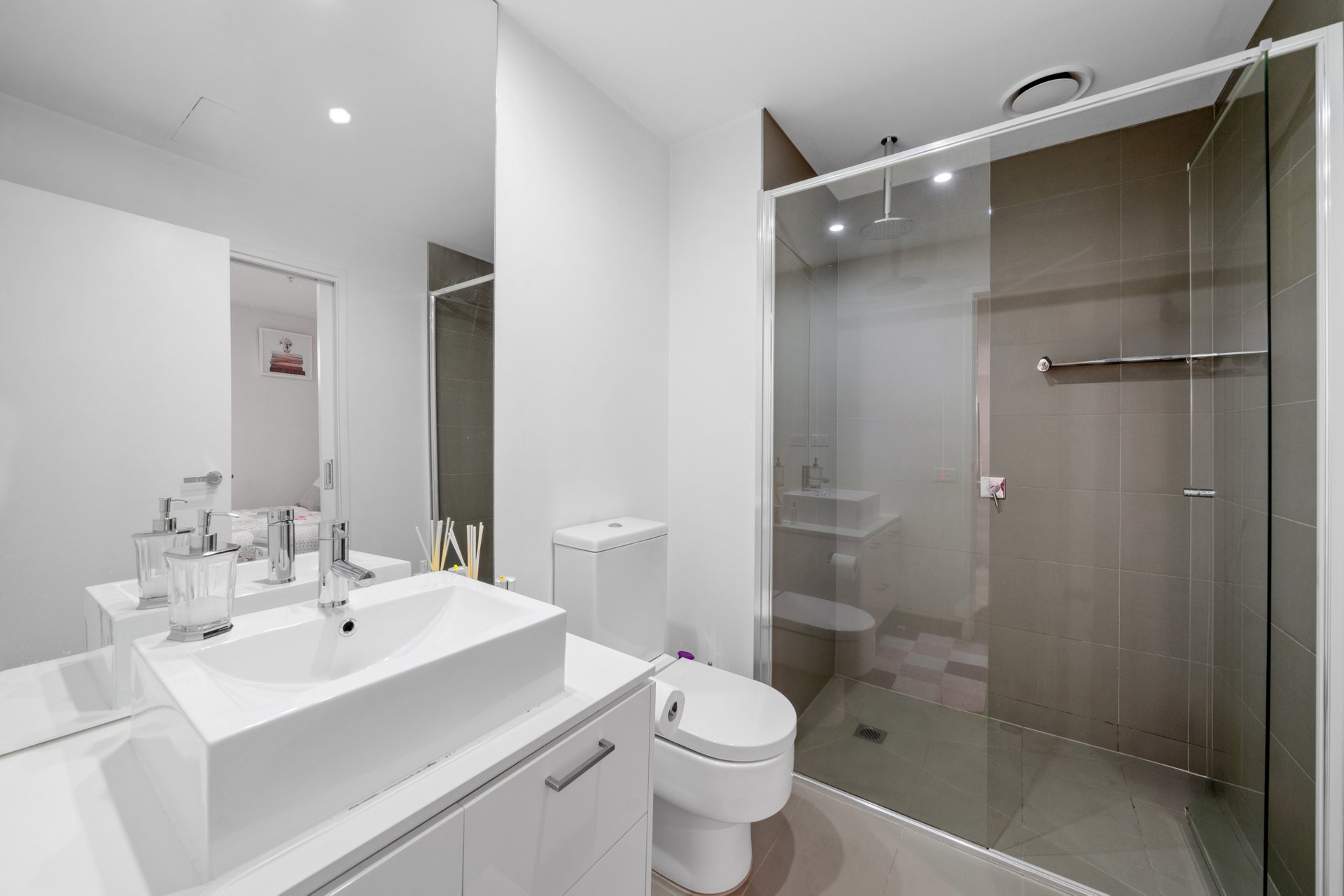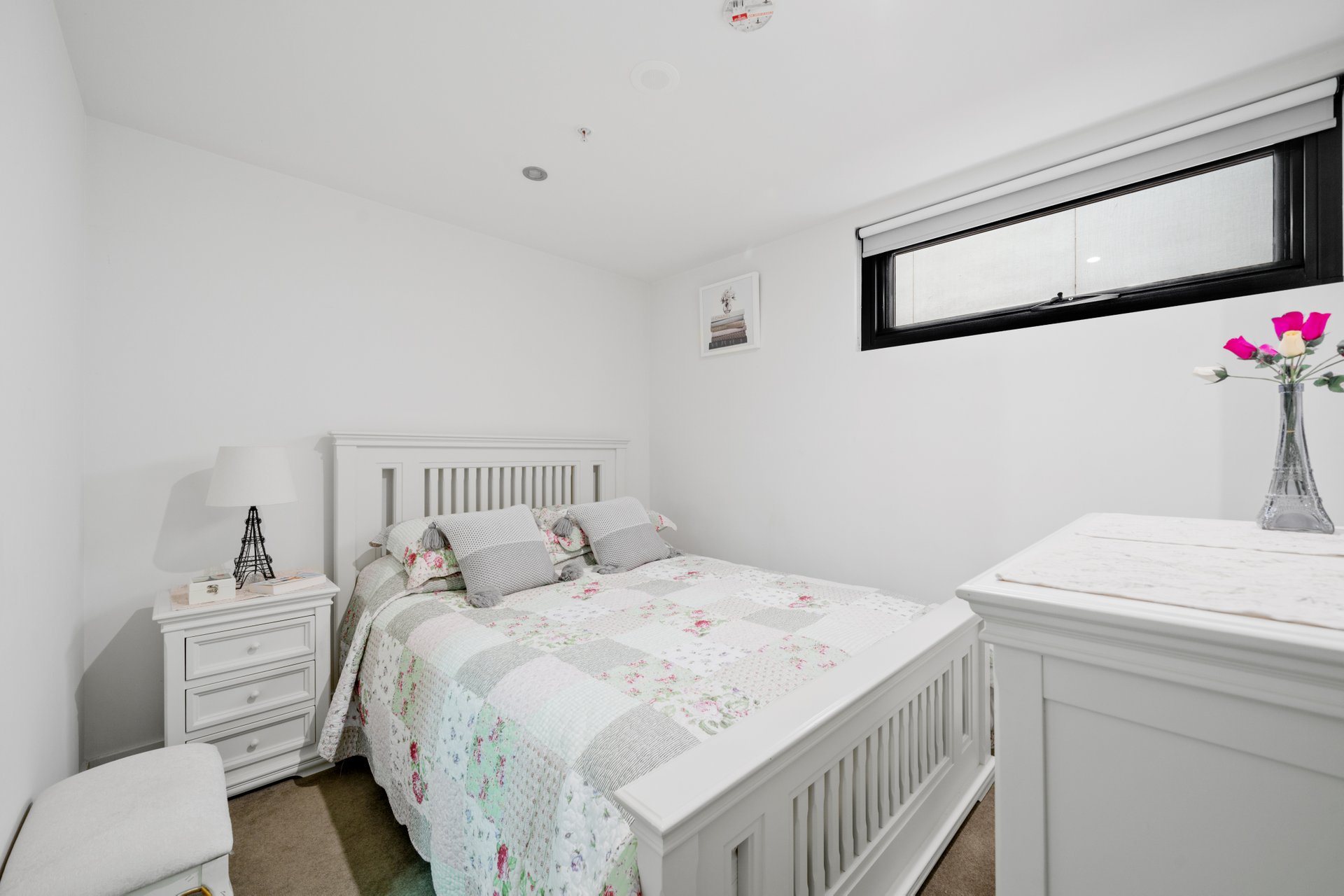 The generously sized bedrooms include built-in robes, ensuring plenty of storage space, while the pristine bathroom showcases chic fixtures and fittings. Additional features include a private balcony offering a pleasant outdoor retreat, secure parking, and intercom entry for peace of mind.