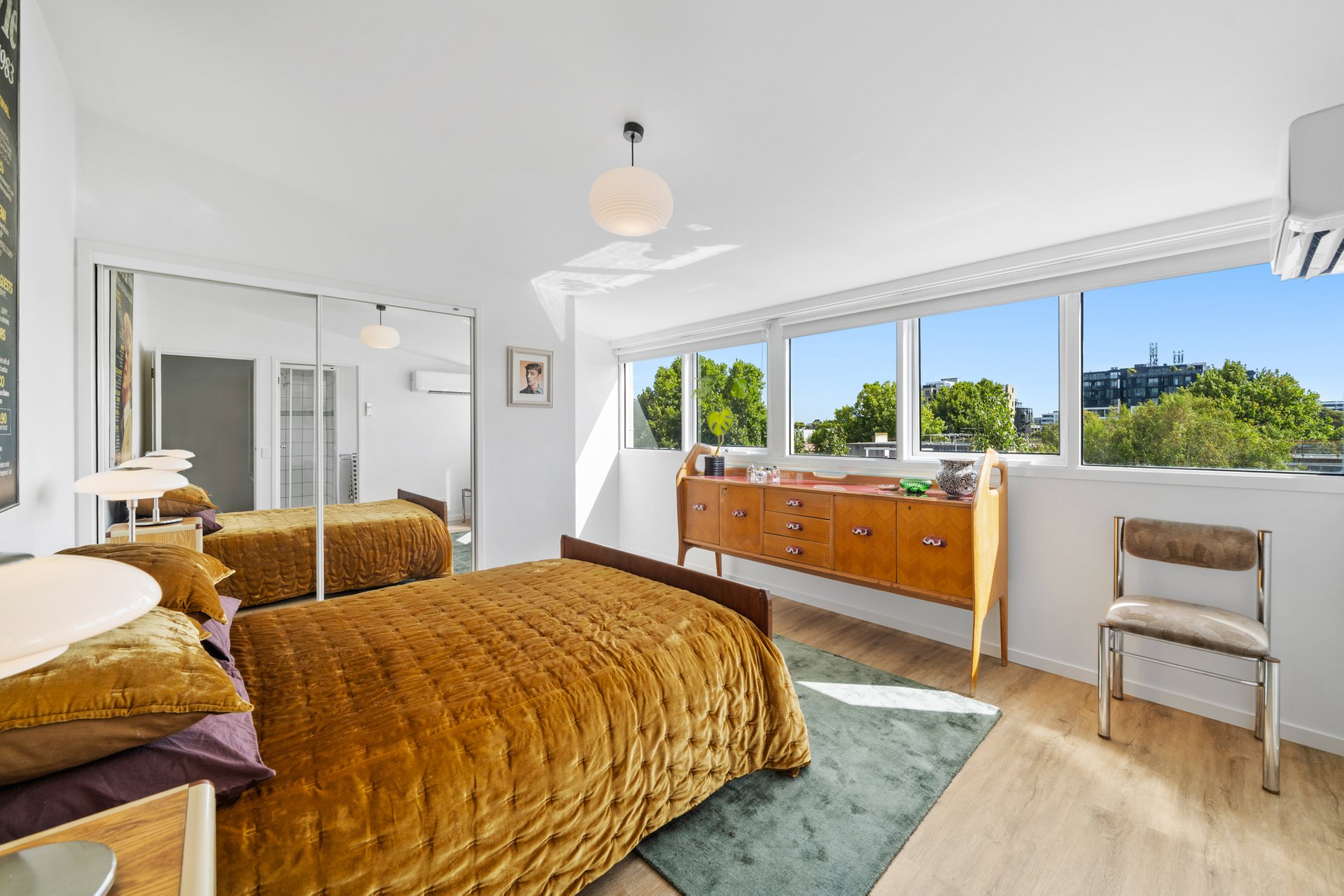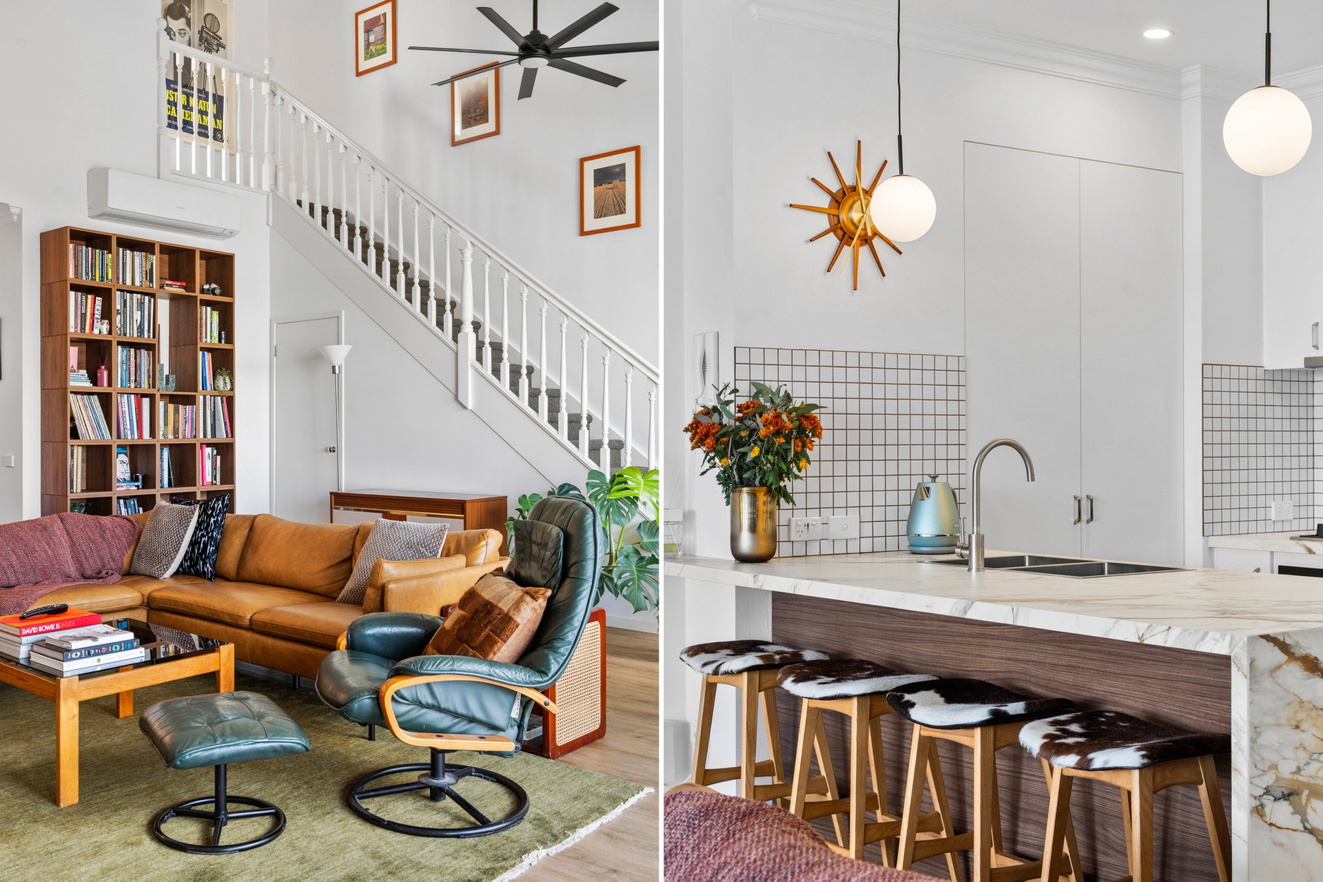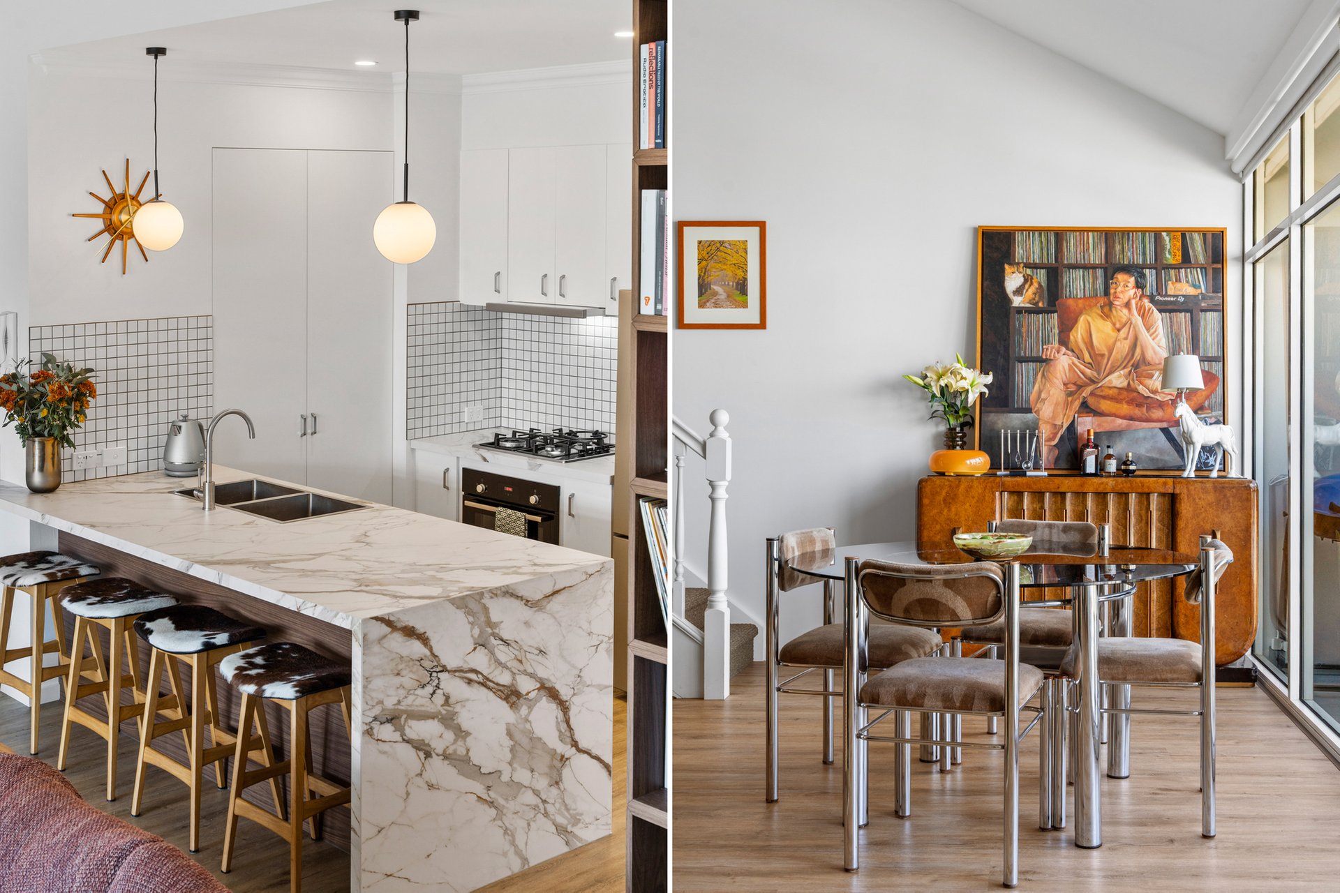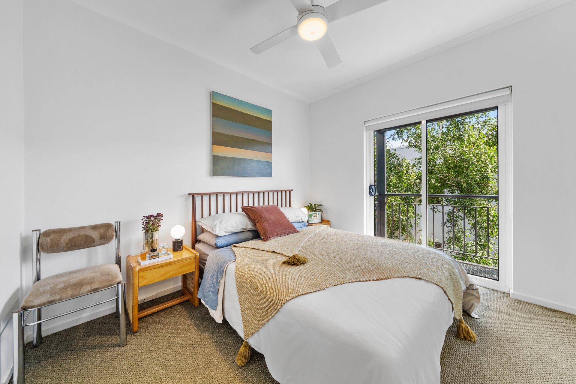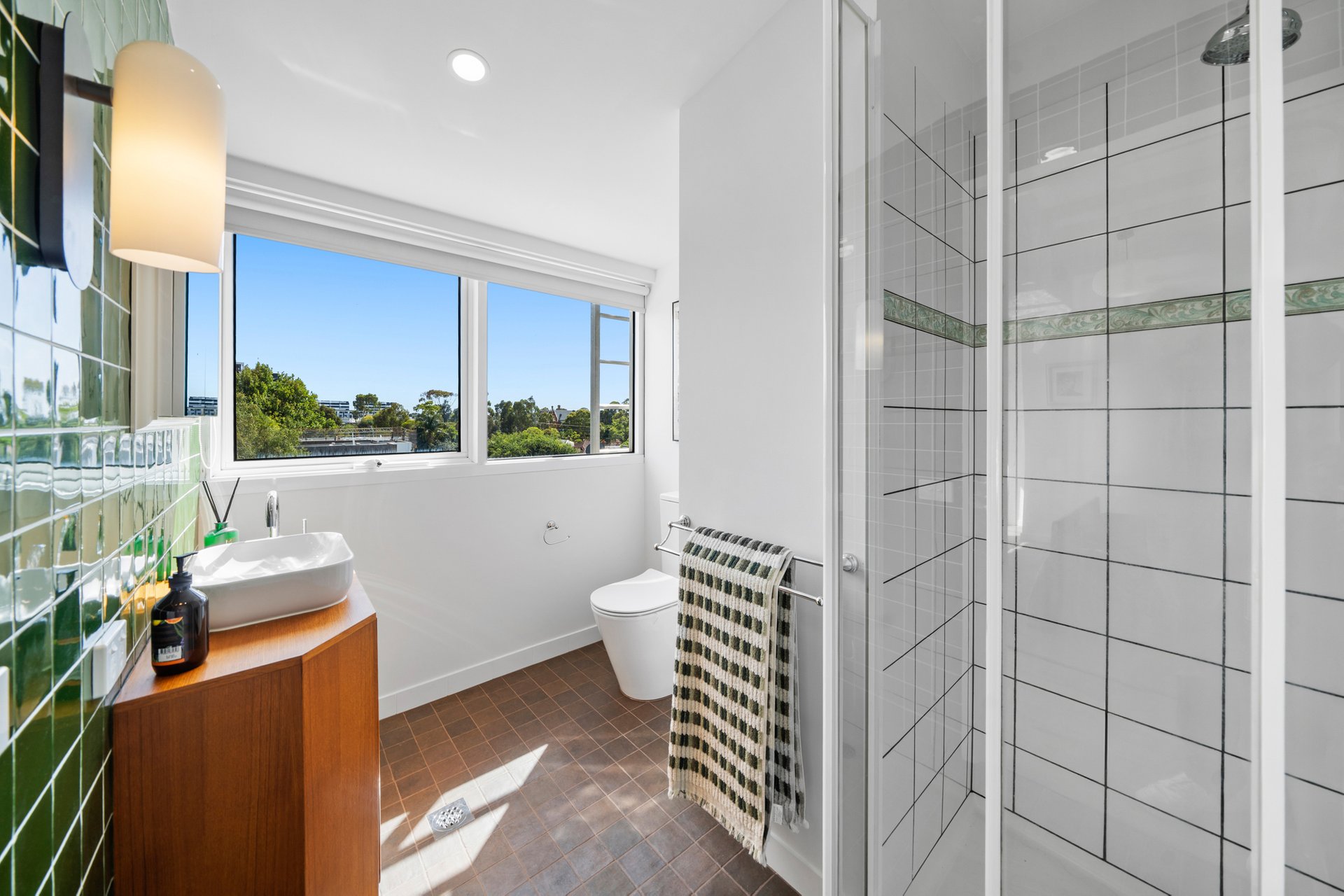 Accommodation is thoughtfully arranged across two levels. Three well proportioned bedrooms all include built in wardrobes. The upstairs master retreat enjoys excellent natural light, elevated outlooks and a private ensuite with distinctive retro green tiling. One of the downstairs bedrooms benefits from access to its own balcony, while the flexible third bedroom is ideal as a guest room or home office.