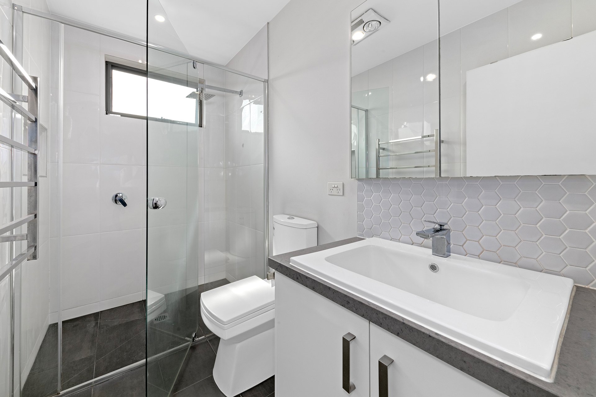 • Ensuite with heated towel rail and heat lamps
