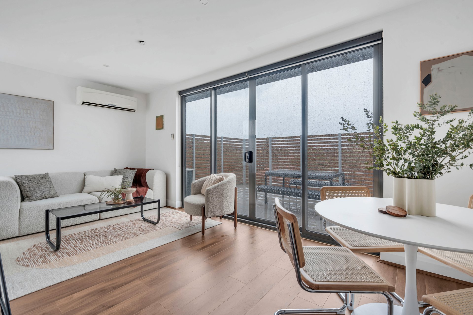 Experience the essence of modern living in this stylish unit effortlessly combining comfort and sophistication, catering to those seeking an invigorating urban lifestyle. The open-plan living and dining area, bathed in natural light from expansive sliding doors, offers a seamless flow to a spacious balcony, ideal for entertaining or quiet moments. Inside, sleek flooring and a split system air conditioning unit ensure year-round comfort. The kitchen is a culinary enthusiast's delight, boasting premium fixtures, a chic island bench, and modern appliances, including a dishwasher. Generously sized bedrooms, each with built-in robes, provide ample space for all. The sleek, centrally located bathroom enhances functionality and convenience. Perfectly situated in a sought-after location, this property presents a remarkable opportunity for a contemporary lifestyle.