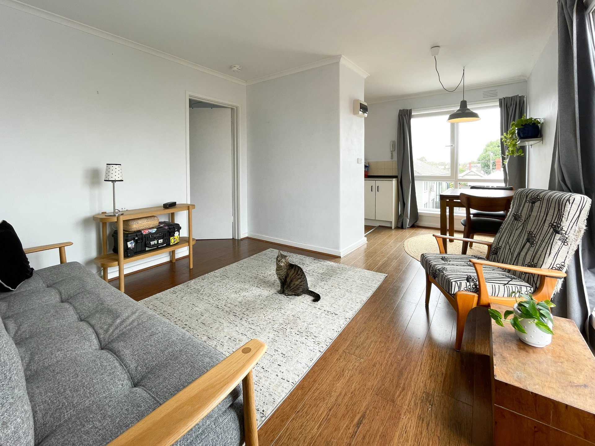 Poised on the coveted top level of a boutique block, this light-filled one bedroom apartment delivers comfort, privacy, and effortless city-fringe living. Behind a secure intercom the home opens into a generous living and lounge zone, bathed in natural sunlight and framed by elevated leafy outlooks, a tranquil escape above the vibrant heart of the inner north.