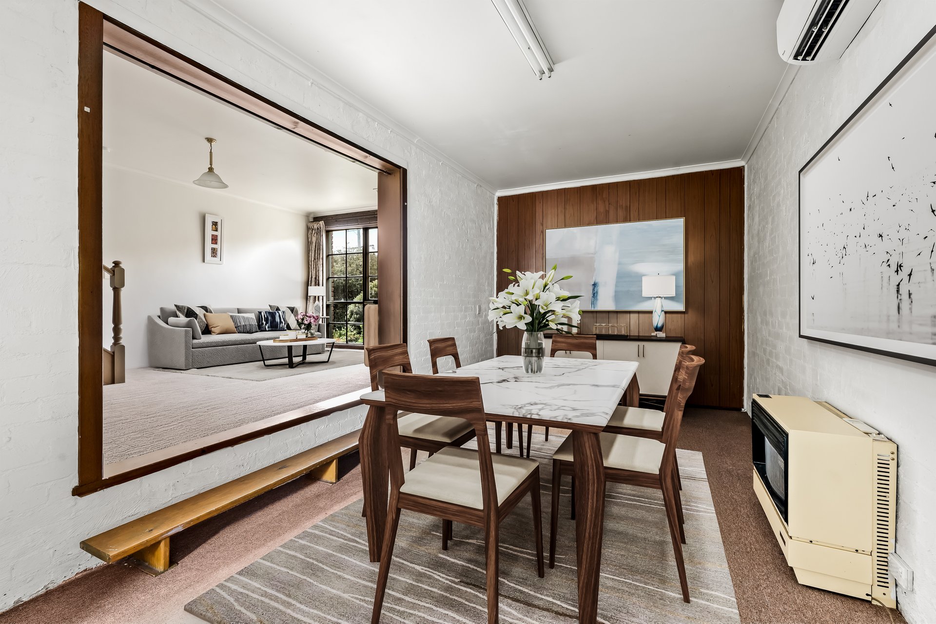 Glamorous in its heyday yet still comfortable today, this deceptively large townhouse set within a peaceful community creates several exciting possibilities for the astute buyer. You may fall in love with its vintage originality, choose to renovate or keep as an investment, nevertheless it’s not often you find a home of this size and calibre right in the heart of Box Hill. The comfortable accommodation incorporates a spacious entrance/home office that connects to a sunken lounge before stepping into a casual kitchen and meals area with a connecting courtyard. The retro kitchen comes equipped with robust appliances and plenty of storage options. Upstairs houses a two bedroom sleeping wing, plus a fantastic family bathroom. Added highlights also include a separate laundry, down stairs powder room, brick feature walls, split system heating/cooling, under stair storage and a single garage. Positioned within close proximity to public transport, Box Hill Institute, Box Hill Central, Box Hill hospital, local schools, parklands and amenities.