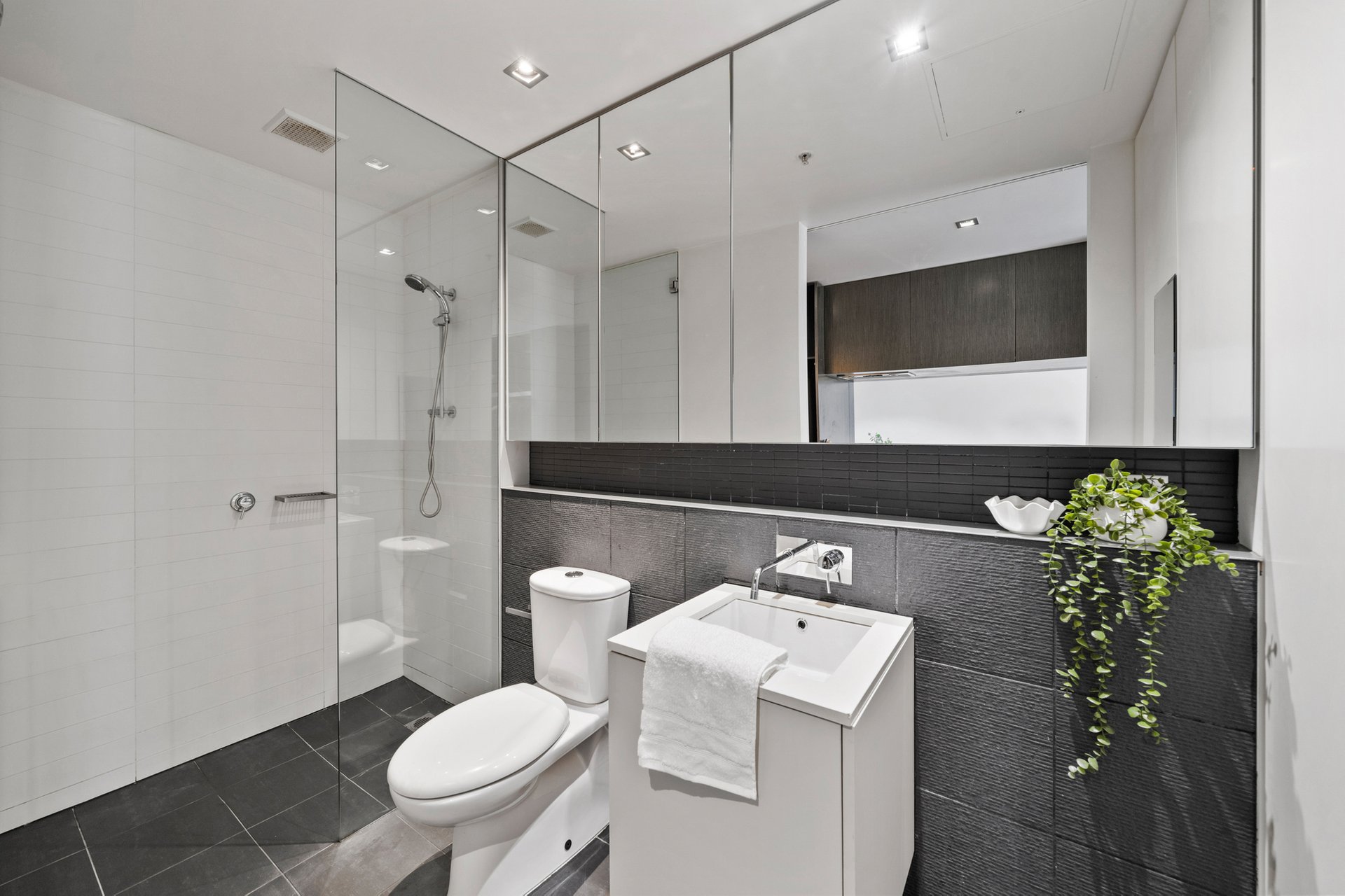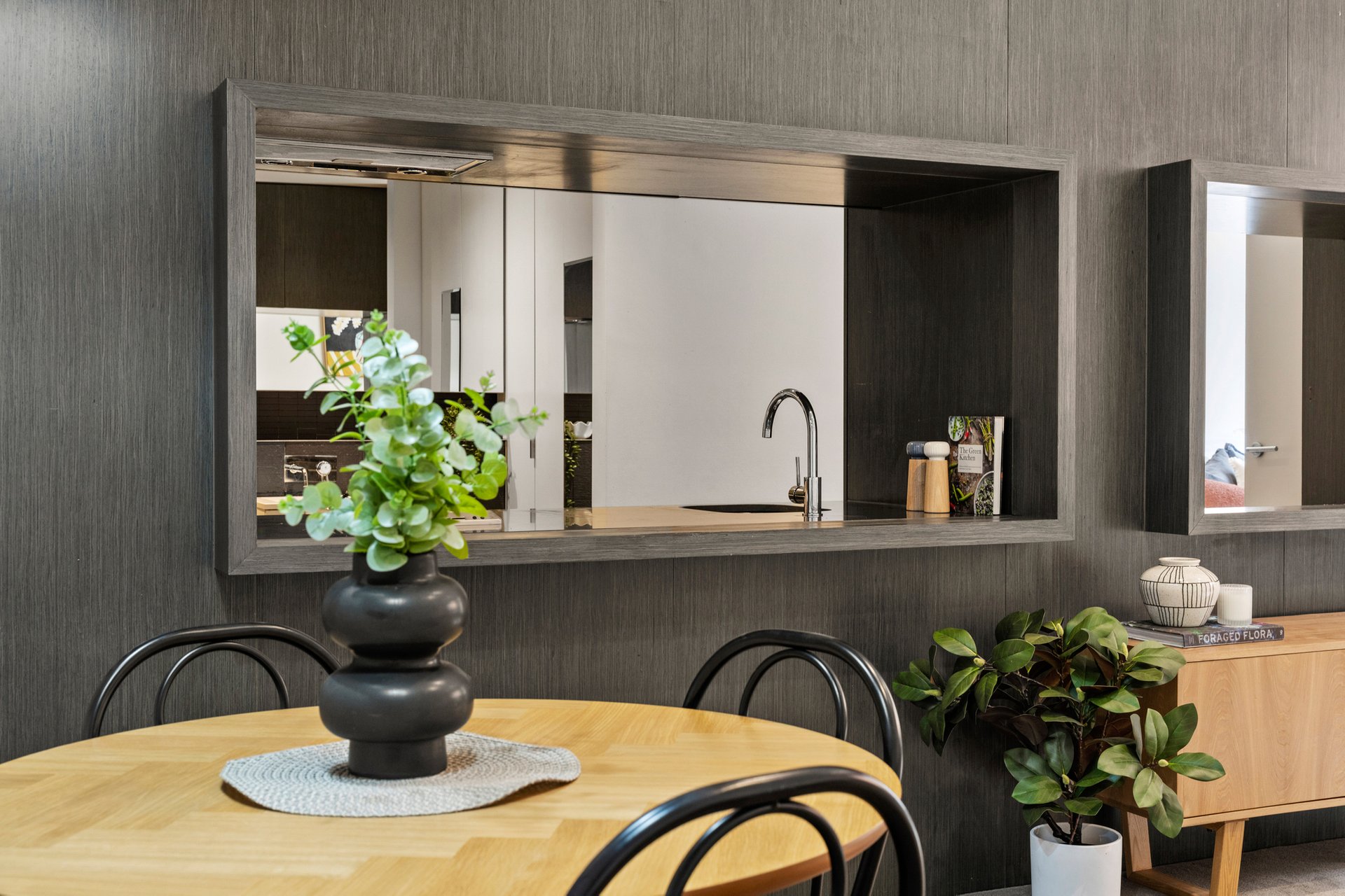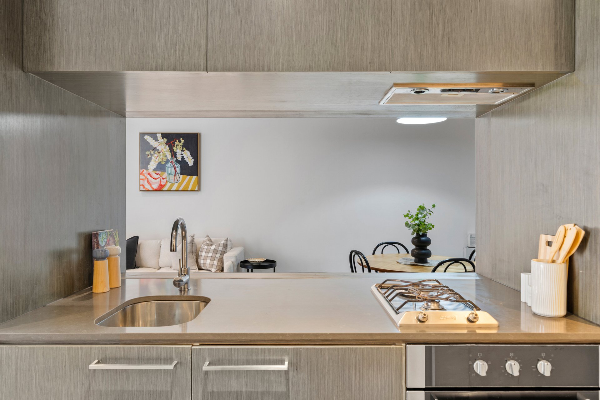 The sleek kitchen is thoughtfully designed for everyday convenience and entertaining, complemented by clean cabinetry and streamlined benchtops. Storage and functionality are both well considered.