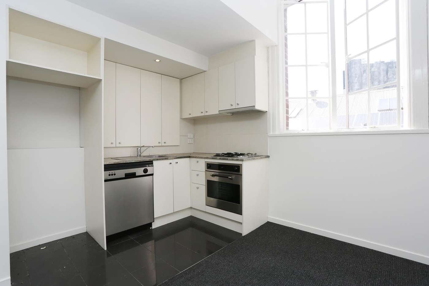 Step into this beautiful historical building, on the corner of Russell & Victoria Streets, to find this stylish one bedroom apartment. Open plan kitchen and living area downstairs, including gas stovetop and dishwasher! Upstairs to the mezzanine bedroom with built in robes, and study nook, and the bathroom with shower over bath. European laundry included.