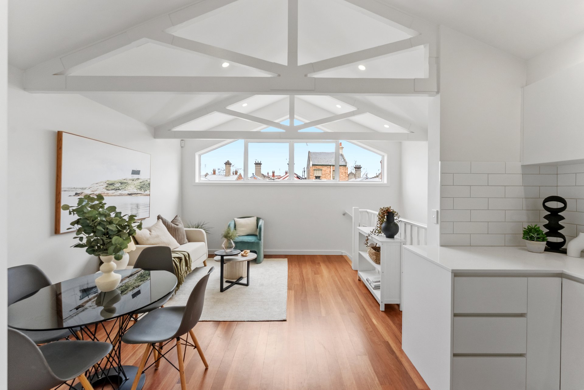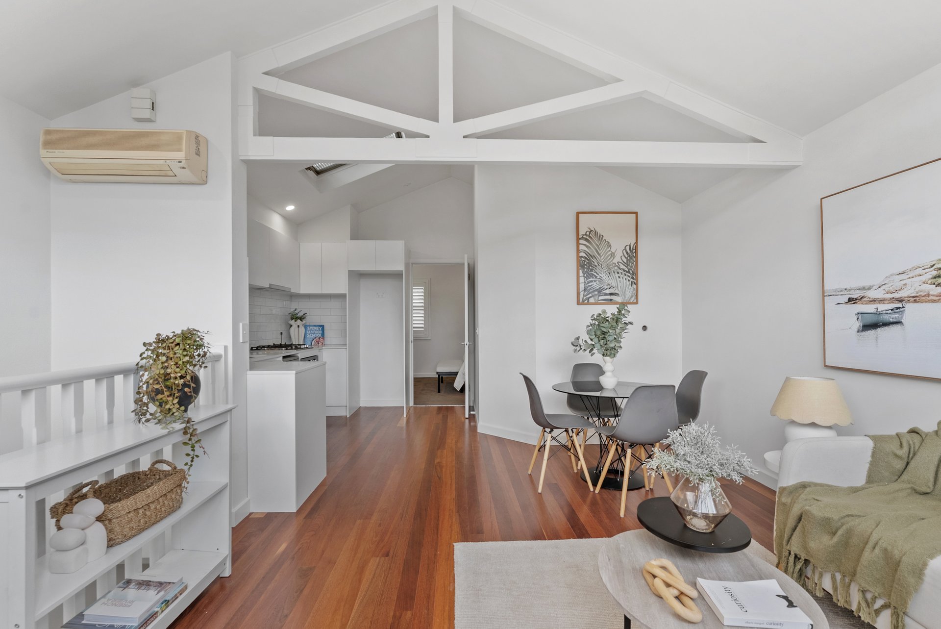 Accommodation is equally appealing, with a spacious double bedroom that captures morning light and streetscape views. Built-in robes and an ensuite ensure comfort, while reverse-cycle heating and cooling provide year-round climate control.