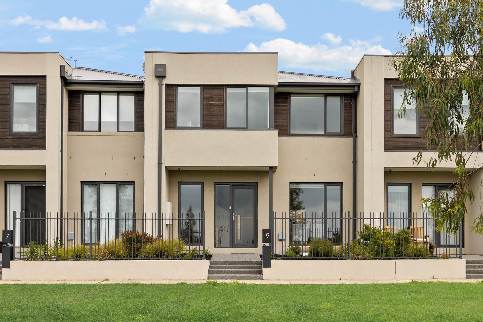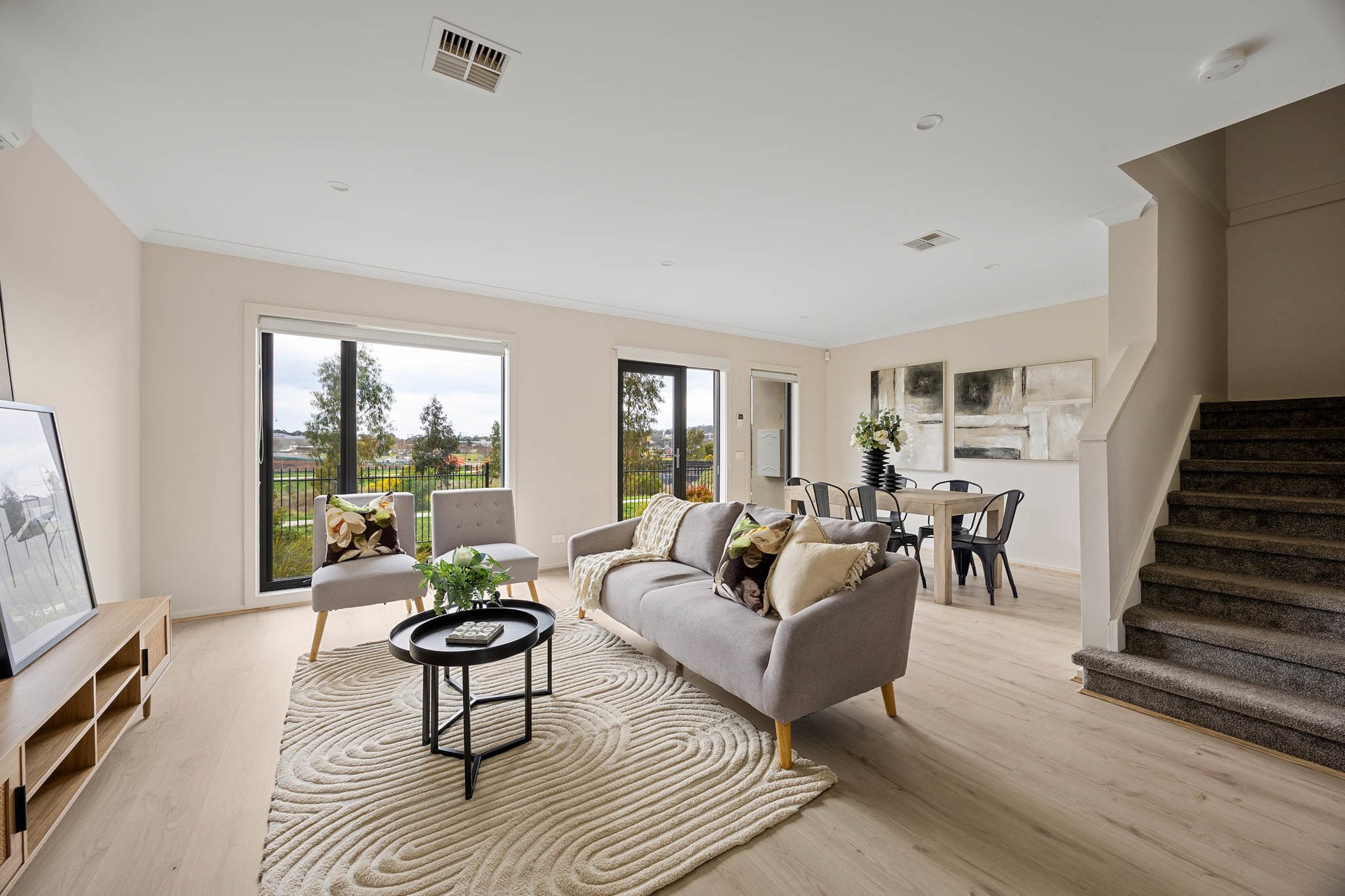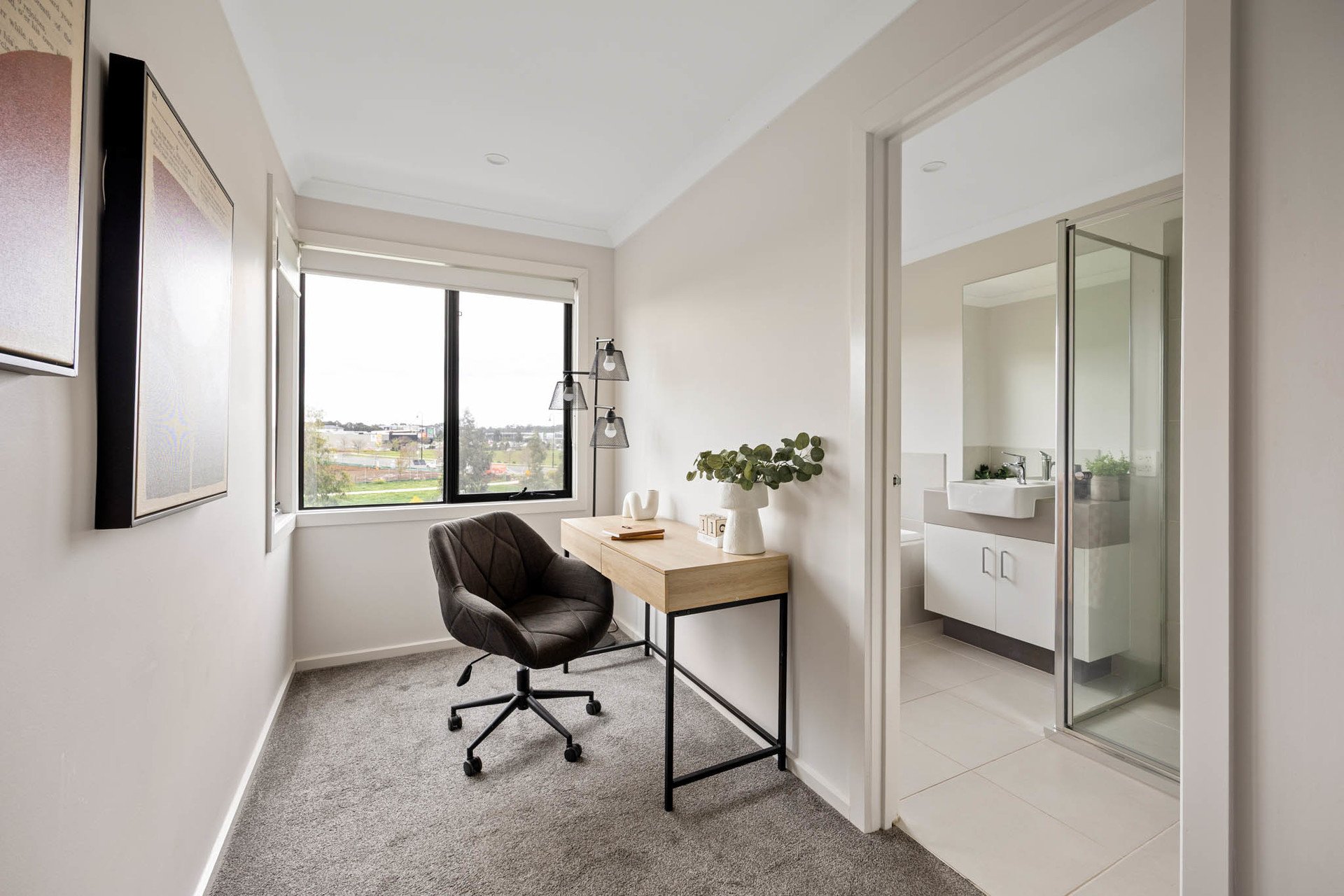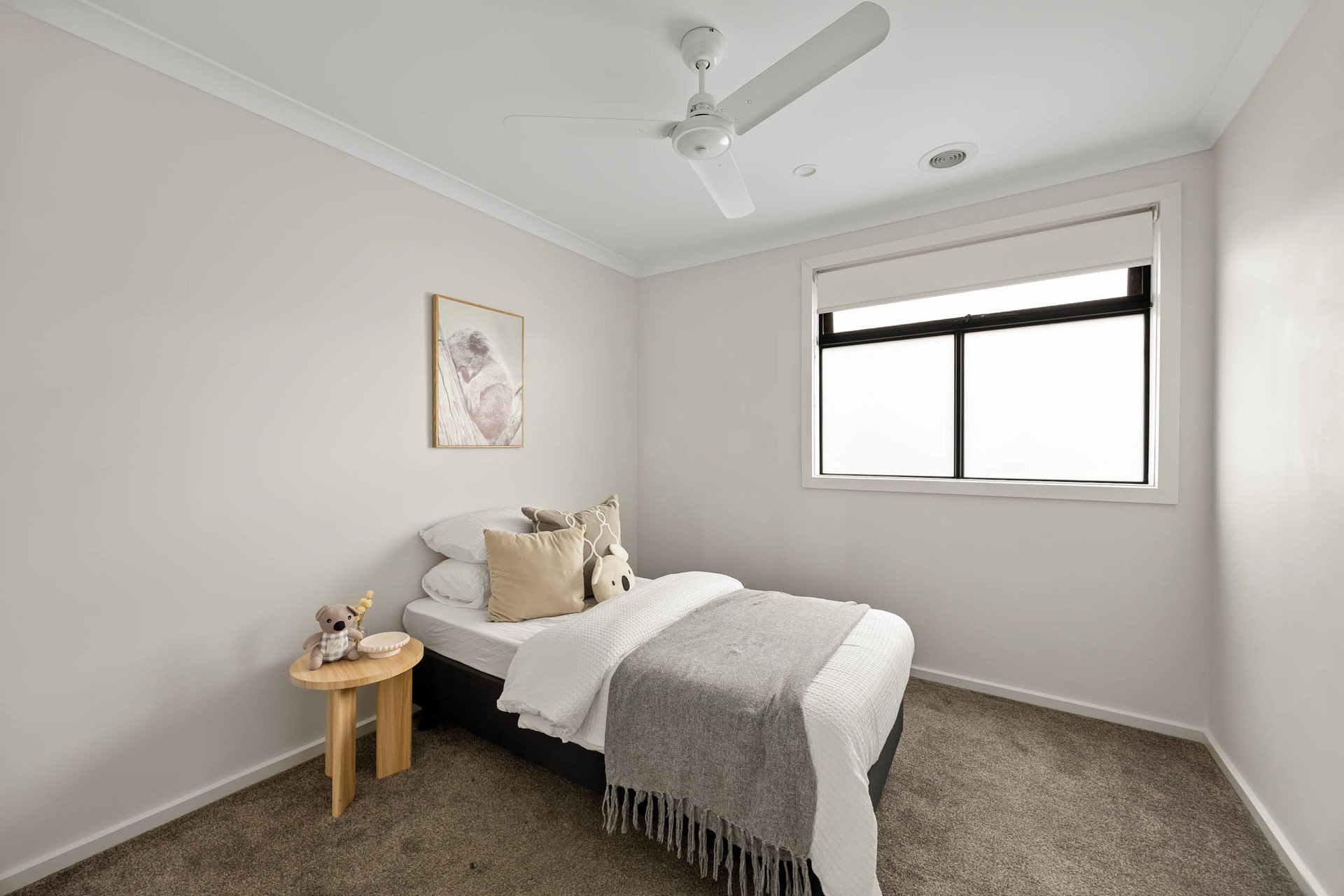 Outdoors, alfresco entertaining flows to a private courtyard garden with astro-turf and large-format paver pathways. Clever planning places one bedroom plus a dual-access bathroom to this level-ideal for guests or intergenerational living.
