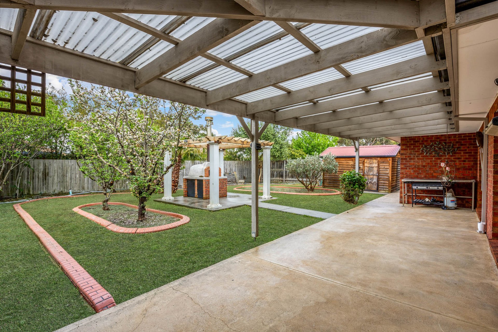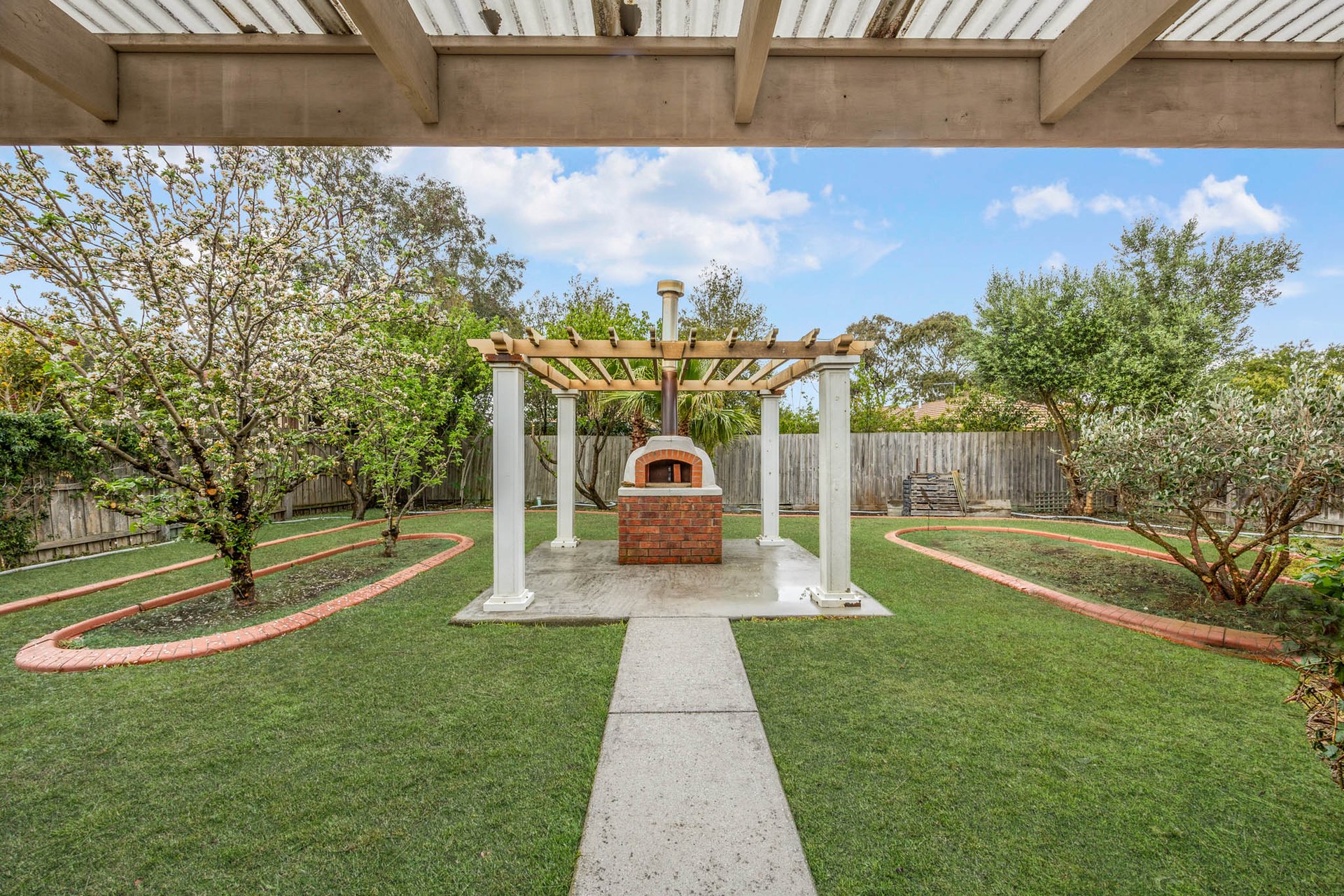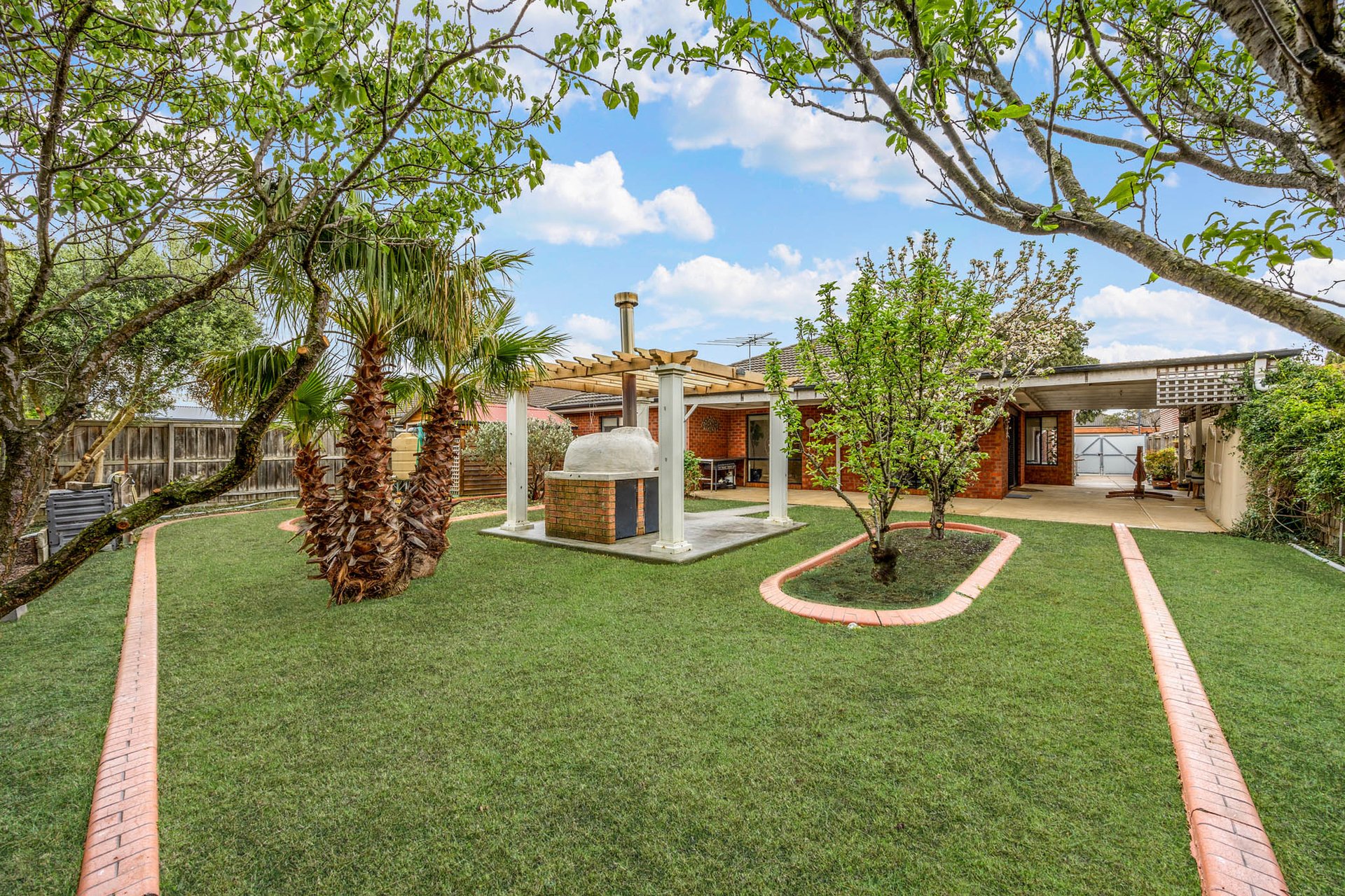 Entertaining is elevated by a wraparound pergola that overlooks superb landscaped gardens with mature fruit trees and a duet of palms-the star attraction a custom wood-fired pizza oven beneath an open arbour.