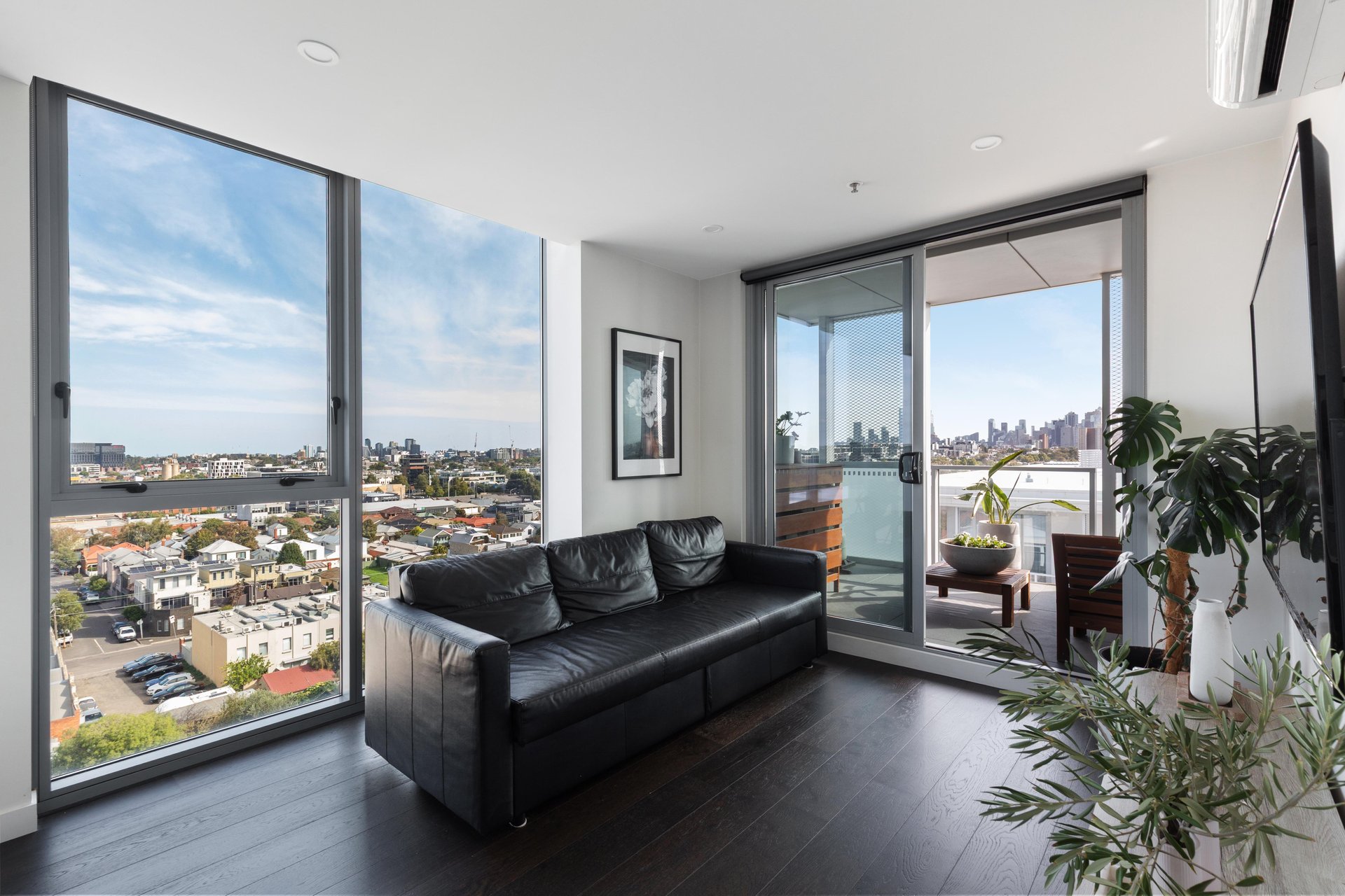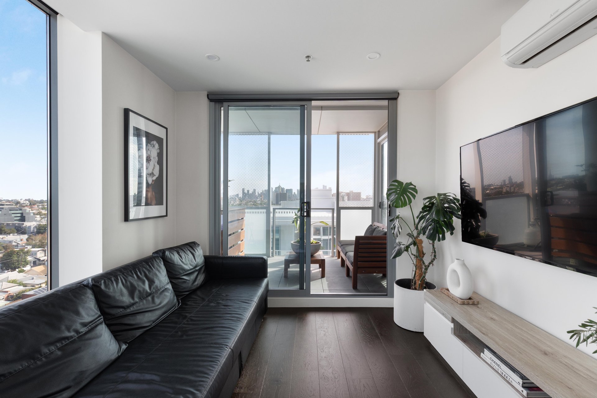Framed by expansive skyline views and full-height glazing, this two-bedroom, two-bathroom apartment with a dedicated study offers an elevated inner-city experience designed for modern living.