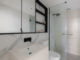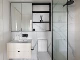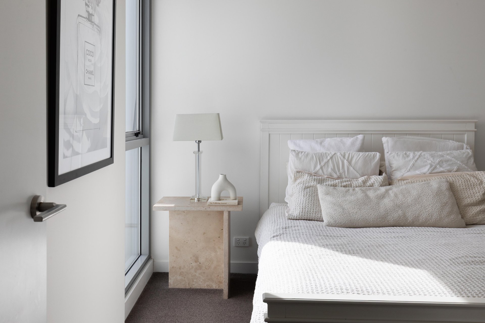 Accommodation is well considered, with two spacious bedrooms featuring built-in robes. The master suite is complemented by a private ensuite with refined finishes, while the central bathroom mirrors the same contemporary design and quality.