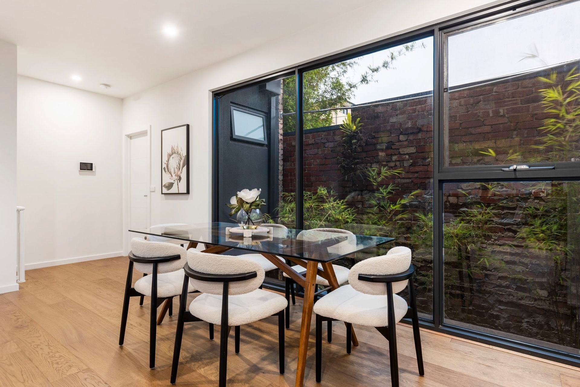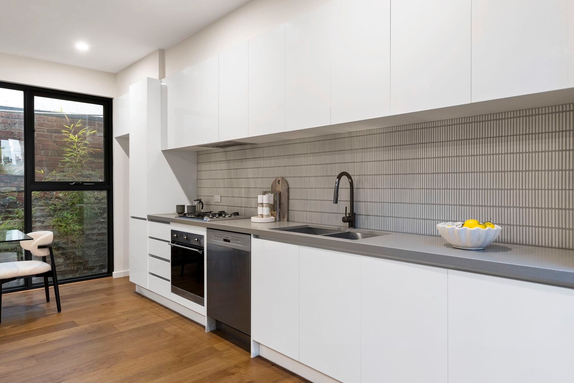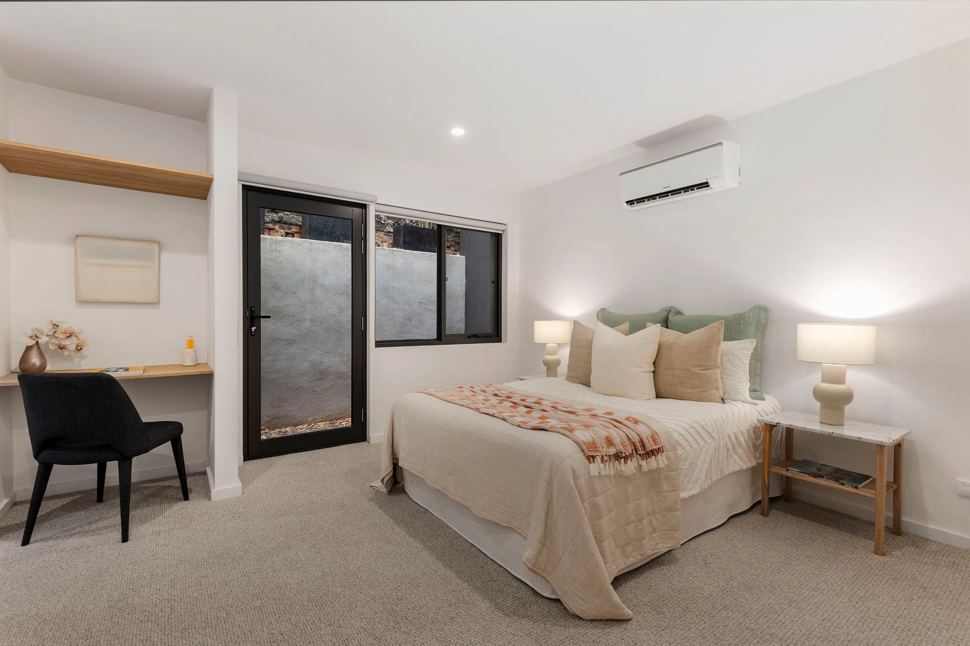 Designed with an exceptional sense of space and flow, the ground floor offers a generous main bedroom with extensive robes, a sumptuous ensuite and private internal courtyard, plus a second robed bedroom with its own ensuite – ideal for guests or shared living.