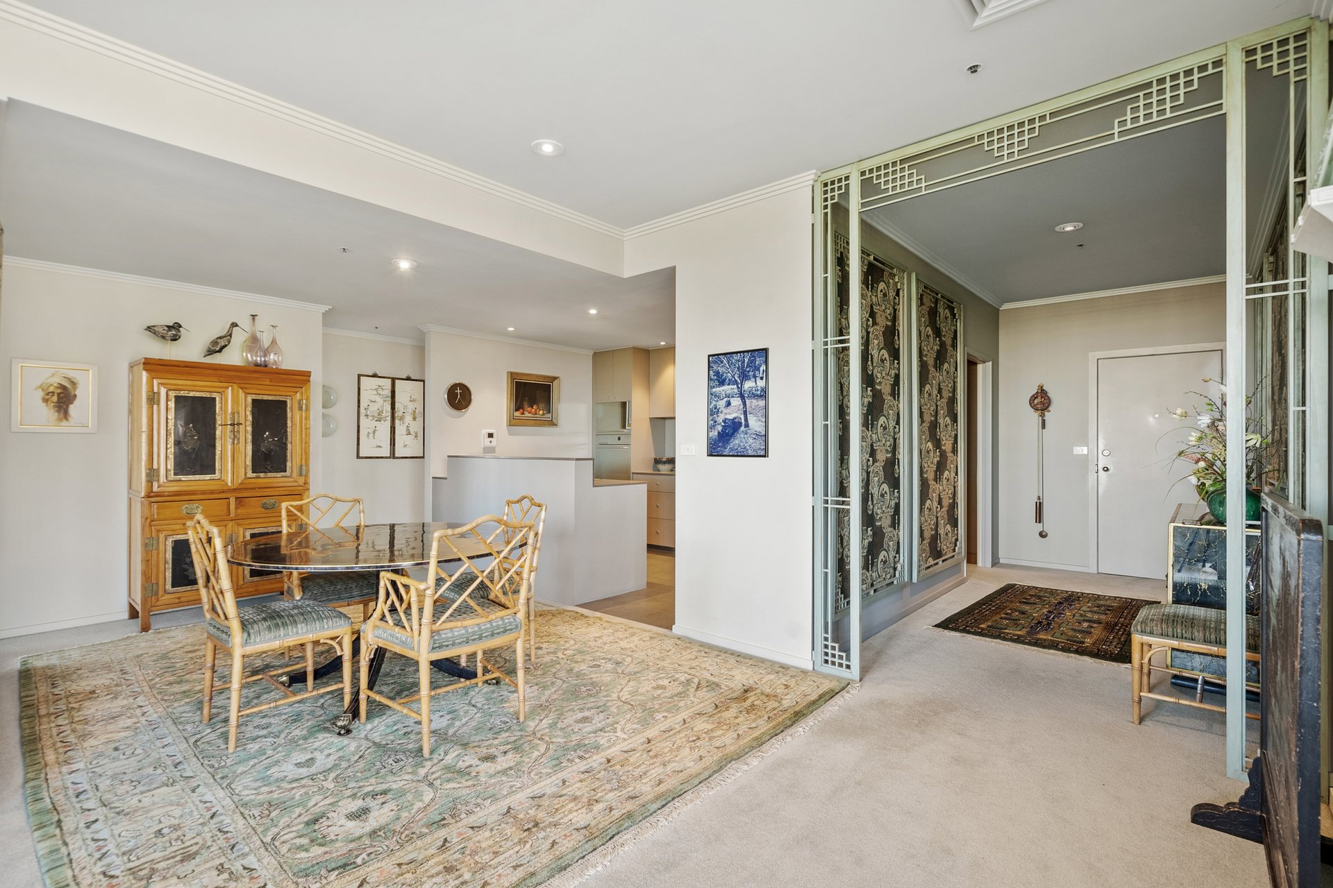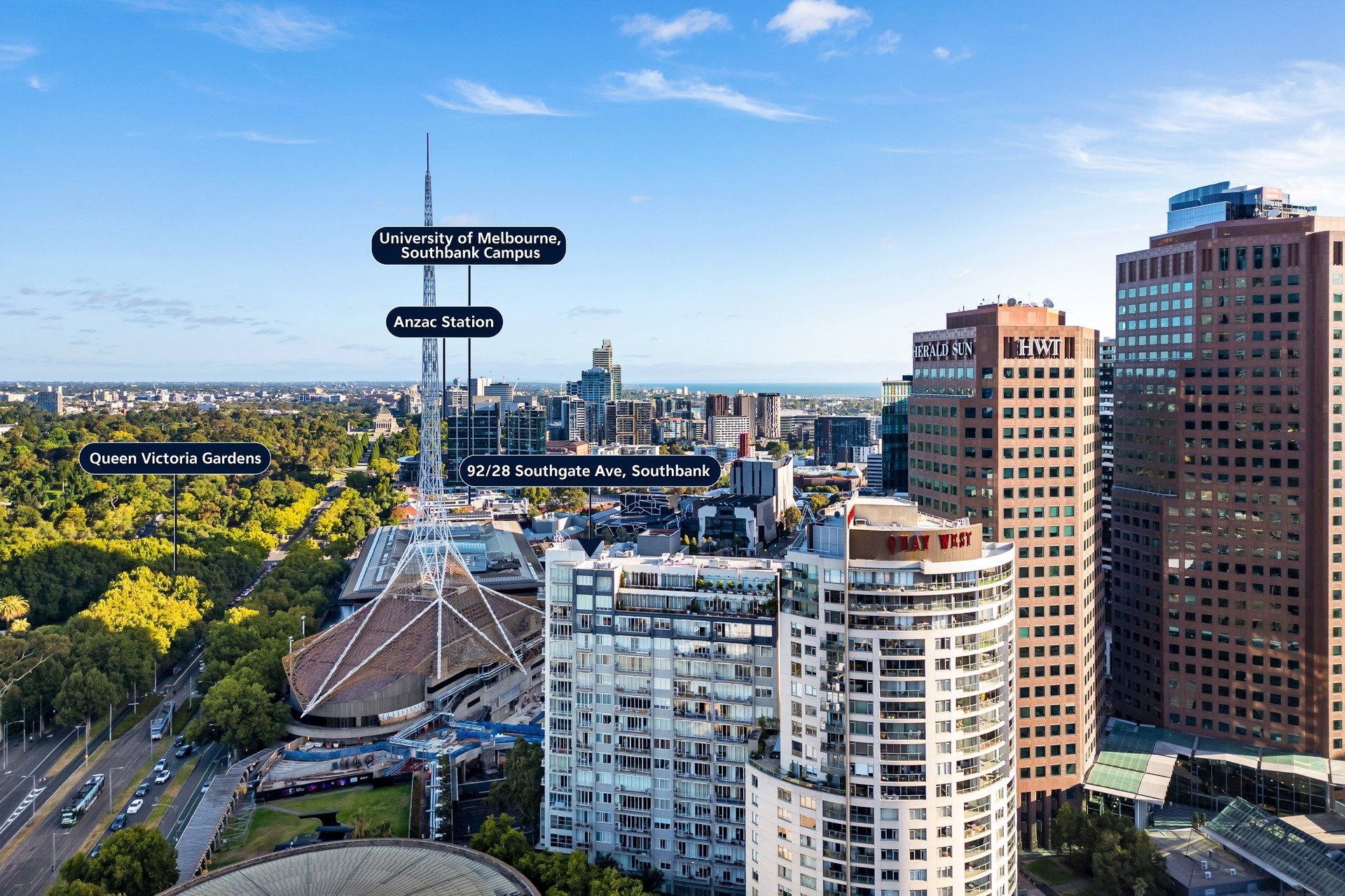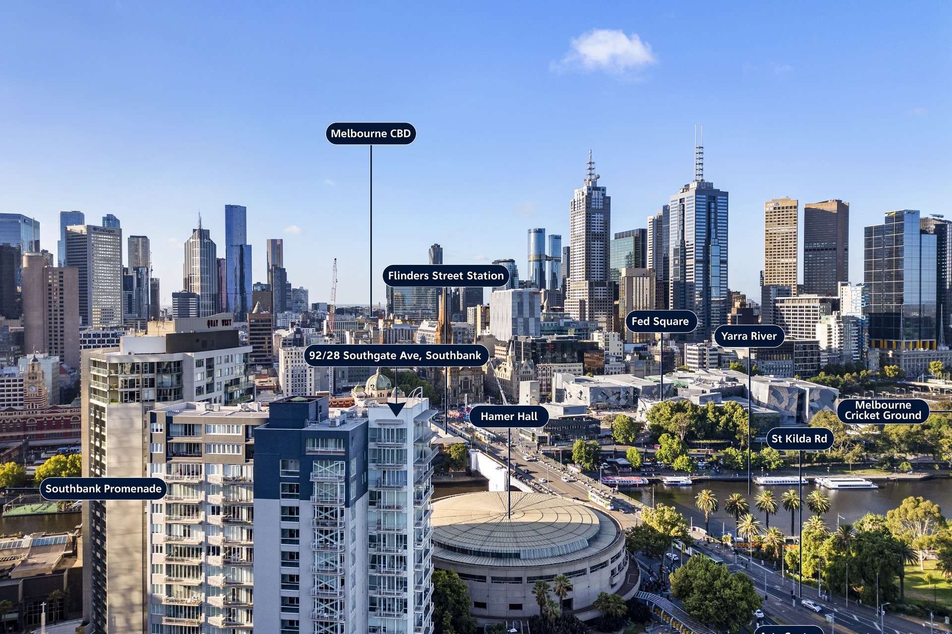 Generously scaled to offer house-like proportions, this beautifully presented three bedroom, two bathroom apartment rests within a tightly held lifestyle pocket, where panoramic views from every window sweep from the luminous city skyline to the tranquil ribbon of the Yarra River. Coming to market for the first time in near three decades, the home reveals an intelligently designed layout framed by multiple balconies, with natural light streaming throughout. A luxurious entrance opens to the spacious living domain, while the dedicated meals area adjoins an immaculate kitchen enriched with sleek stone surfaces. It also showcases quality stainless steel appliances including a dishwasher, a double sink, elevated breakfast bar and glass splashback. Added appeal comes in the form of a communal gym, indoor spa and garden sanctuary, delivering residents a place to connect and unwind in resort-style surrounds. Robed bedrooms are serviced by a neat central bathroom, the master complemented by a private ensuite with a double vanity, and the third bedroom providing the flexibility of an office/study suited to practical needs. Further highlights comprise ducted heat/cooling, a full-size laundry, intercom, lift access and two secure car spaces, plus storage. Enviably positioned with Southbank Promenade hotspots just below, it's moments to Flinders Street Station, CityLink, the Arts Precinct, Crown Casino, Federation Square and the MCG/Marvel Stadium.