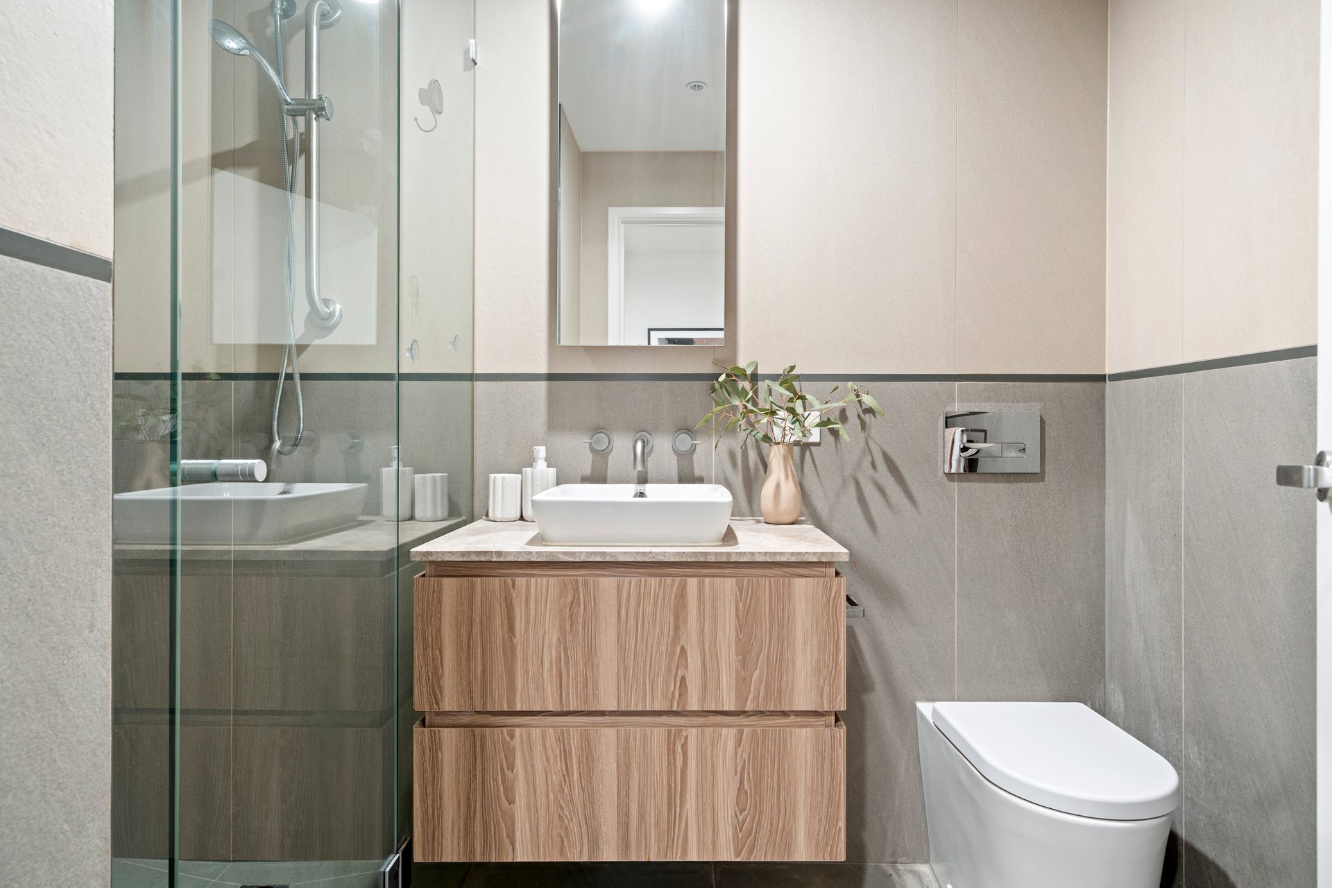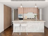 Welcome to a spectacular blend of sophistication and comfort, boasting a footprint of two generously-proportioned bedrooms and two separate bathrooms which brings together function and style. From the moment you step on this property, you're met with a secure entrance, leading to a sleek open-plan arrangement. The elegantly tiled kitchen, complete with stainless steel appliances and ample space, caters to all your culinary needs. This effortlessly flows into an expansive living area, adorned with vast windows that bathe the home in natural light, creating a truly inviting atmosphere. Delivering a distinctive blend of timeless charm and modernised comfort, the property features decadently high ceilings with crisp neutral tones, handsomely complementing the timber flooring that runs throughout. The balcony, accessible from the living area, offers a serene private retreat and serves as an additional space for relaxation or entertaining guests. Plus, internal laundry facilities ensure maximum convenience. Positioned within a stone's throw from Ivanhoe shopping centre, you're never far from dining hotspots, fashionable boutiques, and recreational amenities. And with just a short stroll to the local train station, public transport to other parts of the city is a breeze.