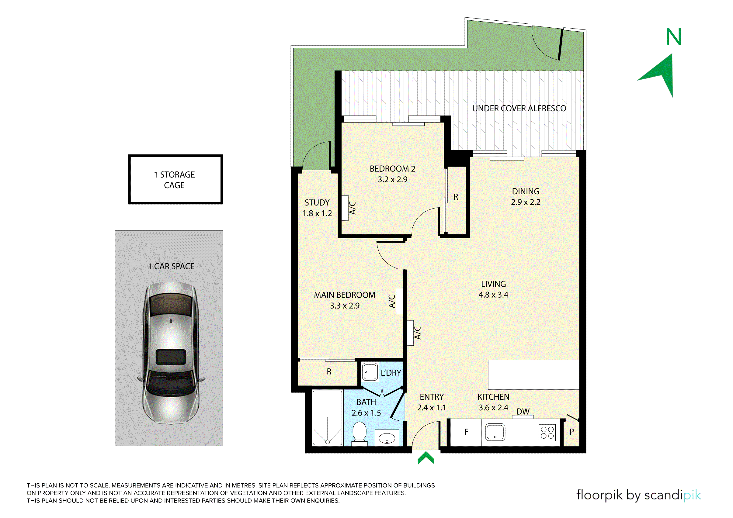 Comfort is assured with three split system air conditioners, including one in each bedroom, while a camera intercom makes communicating with visitors easy. Secure parking and additional storage are provided by a dedicated car space and cage within the complex.